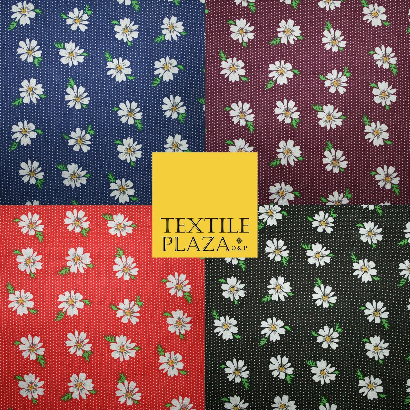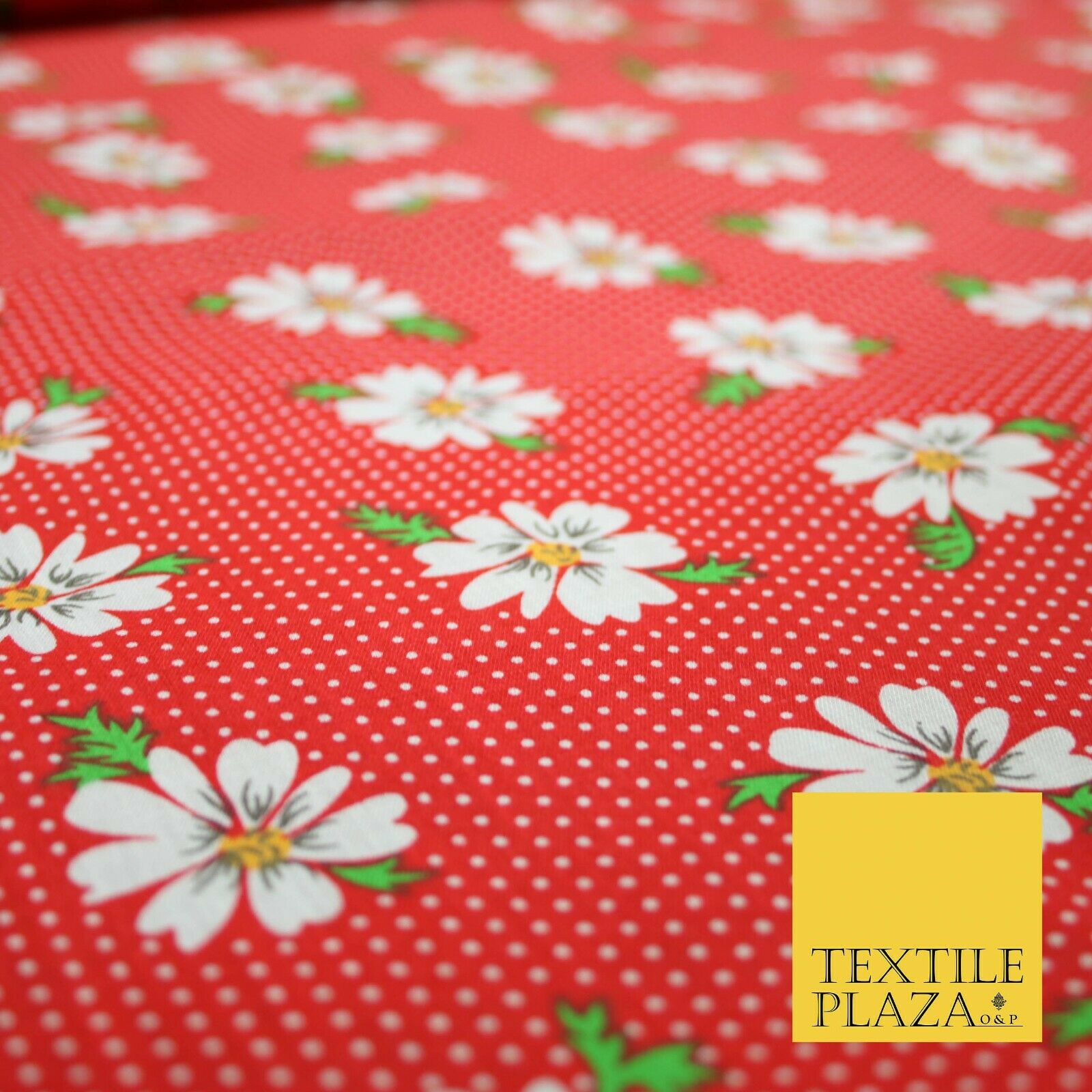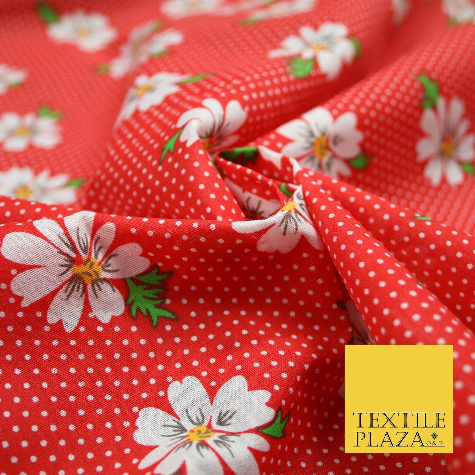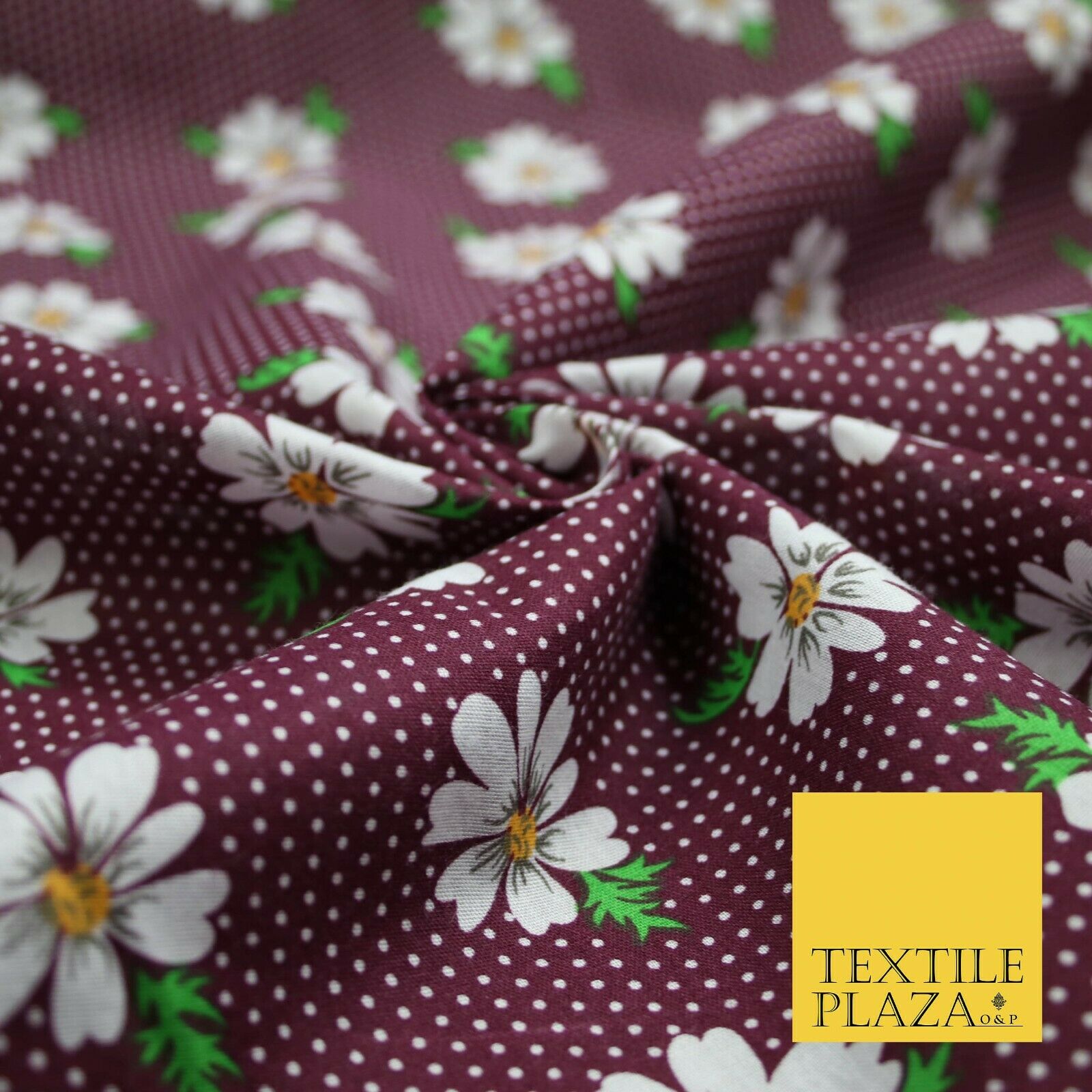 Premium Falling Daisy Flowers Pin Dot Print Poly Cotton Fabric