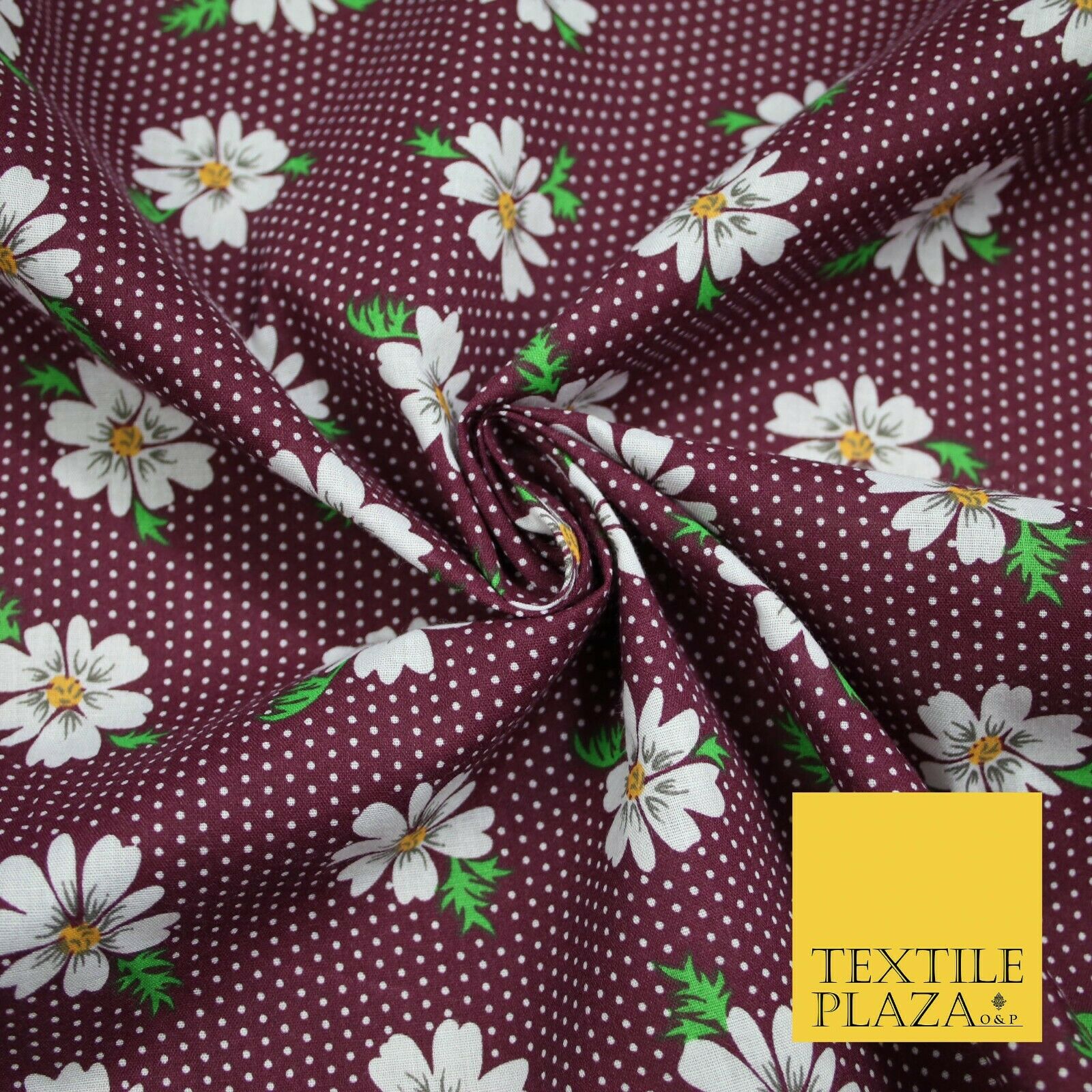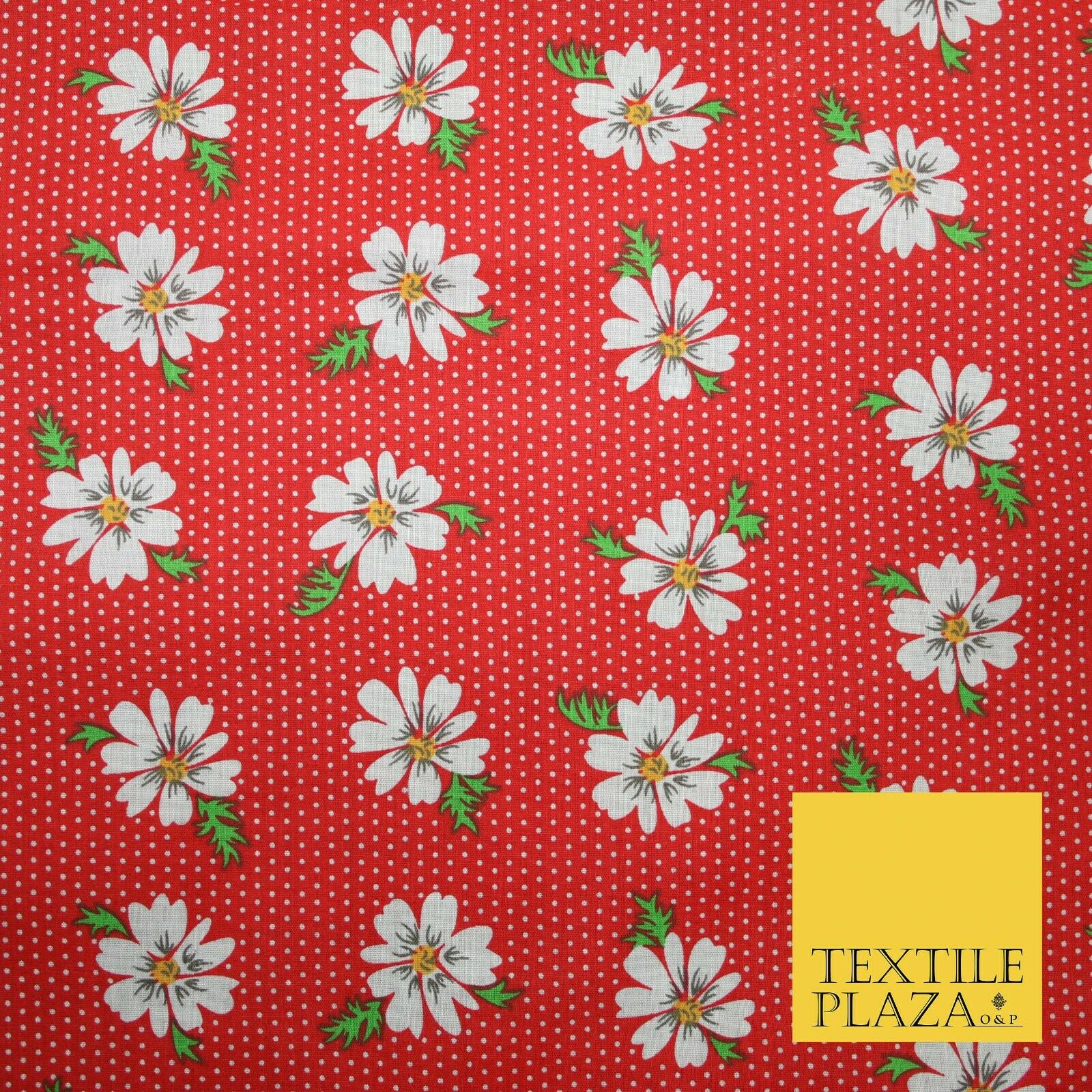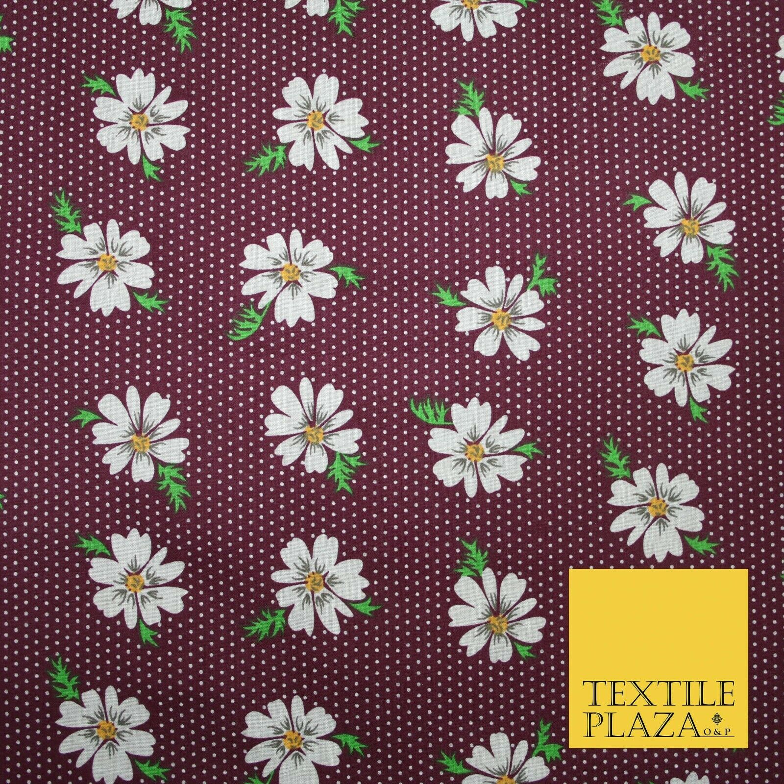 Falling Floral Daisy Flower Stripe Pin Dot Printed Poly Cotton Fabric Polycotton