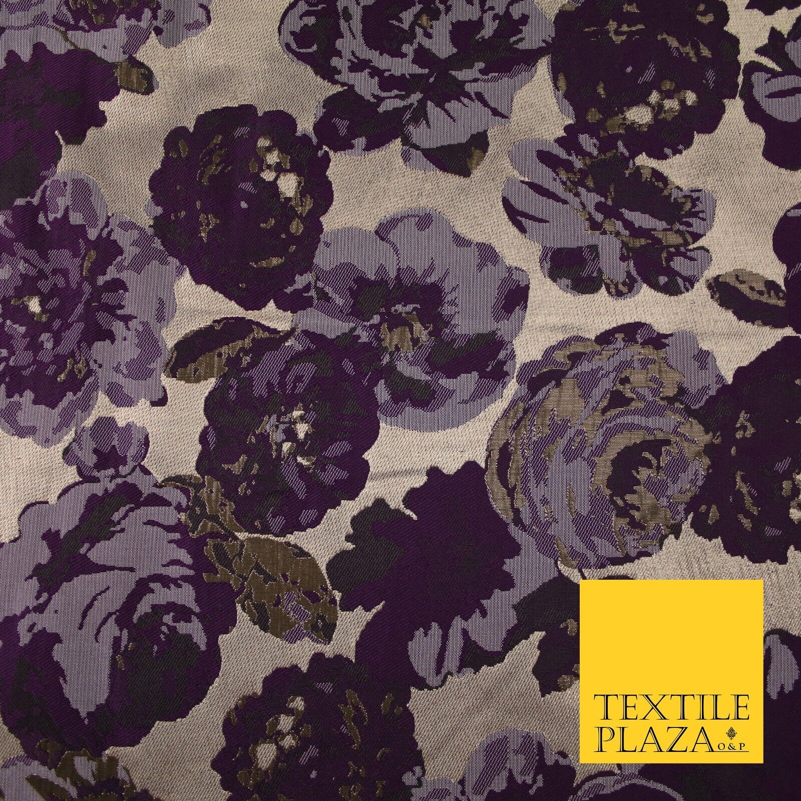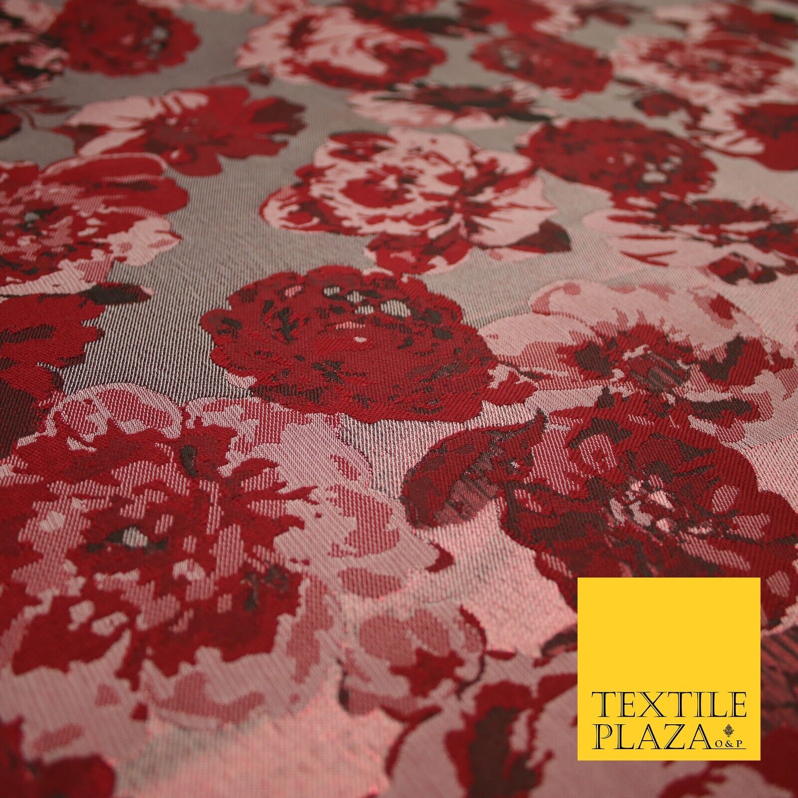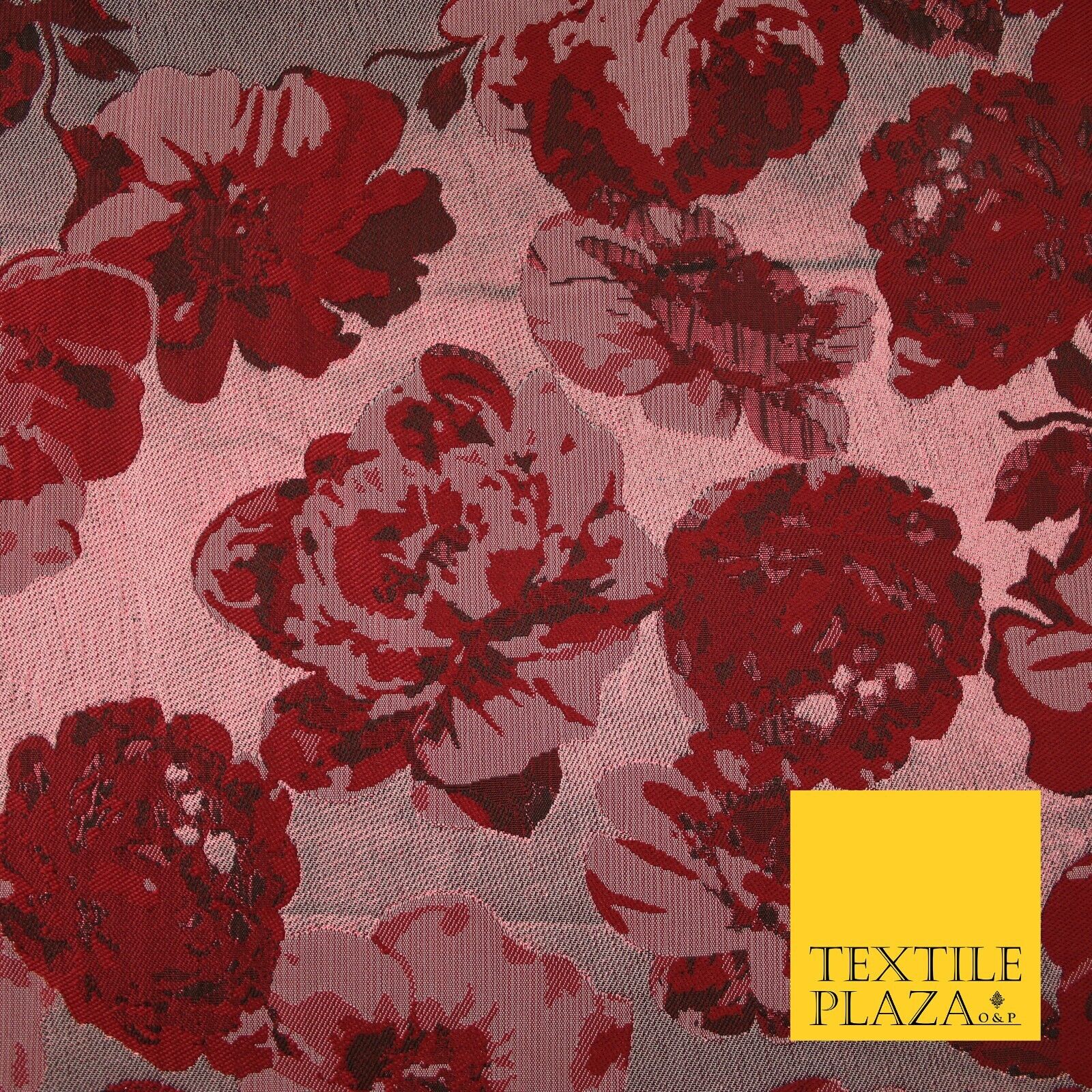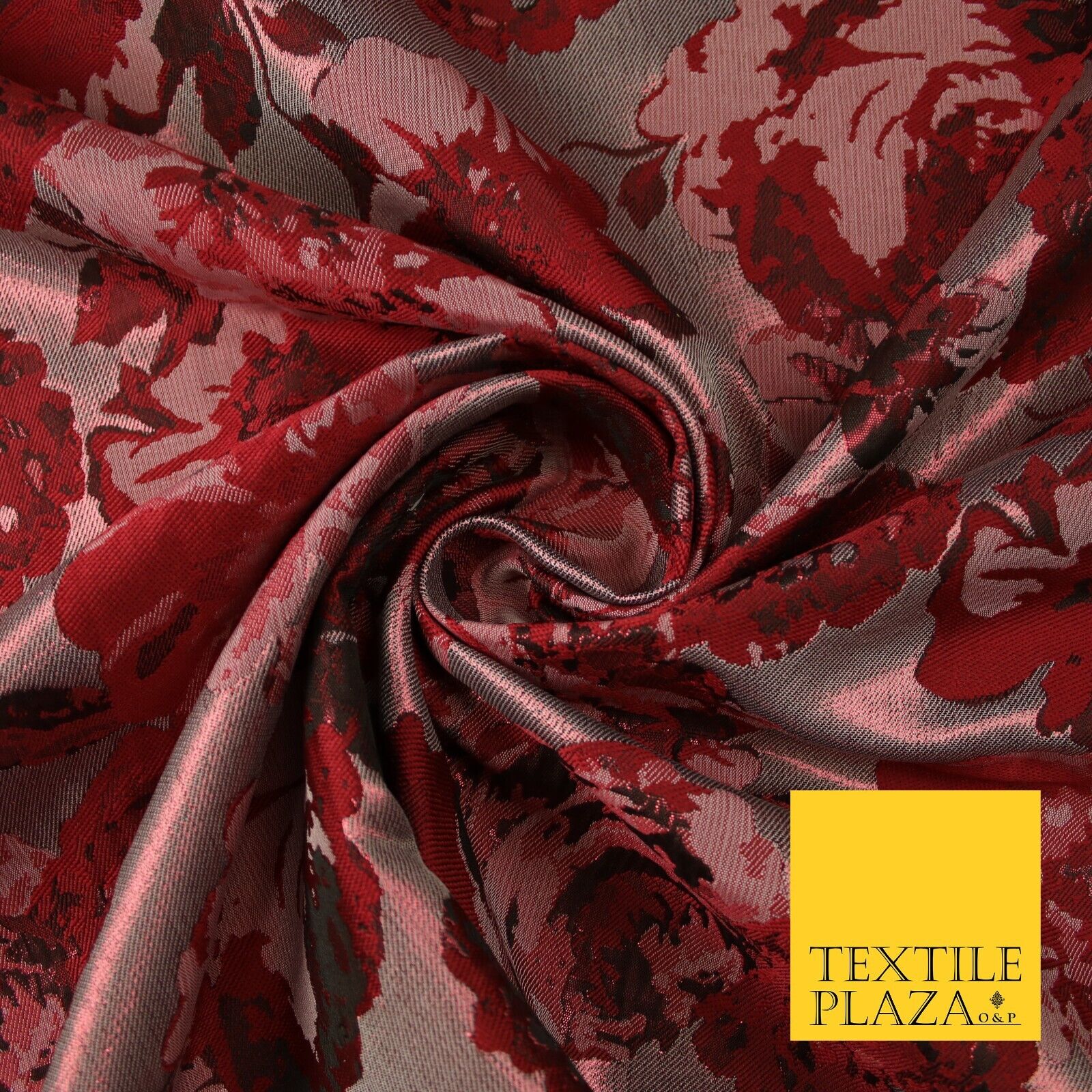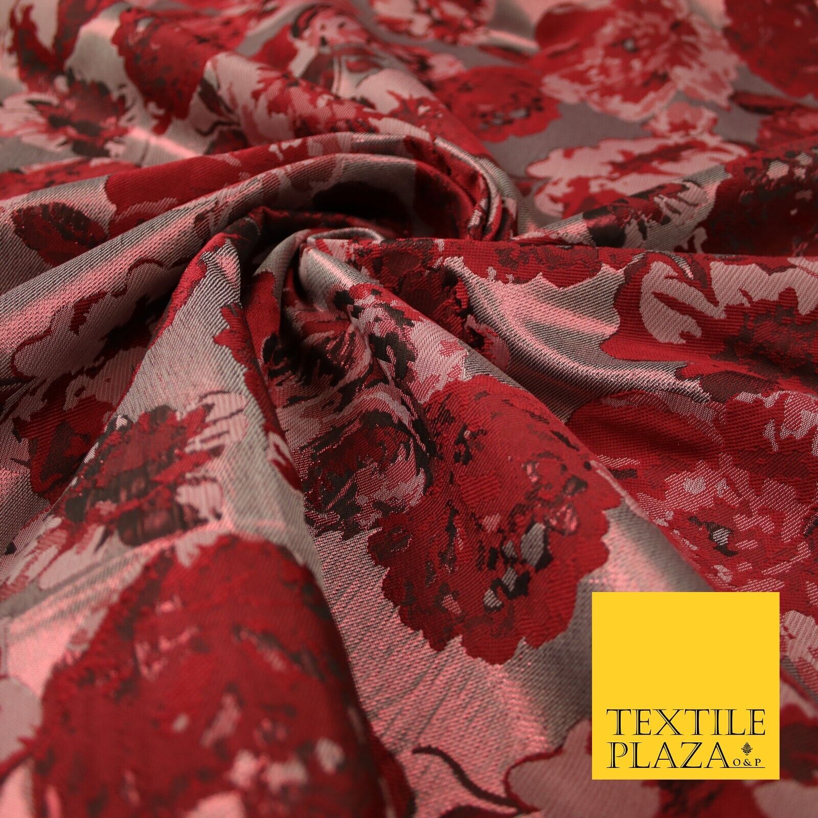 Falling Maroon Artsy Flowers Metallic Lame Brocade Jacquard Dress Fabric