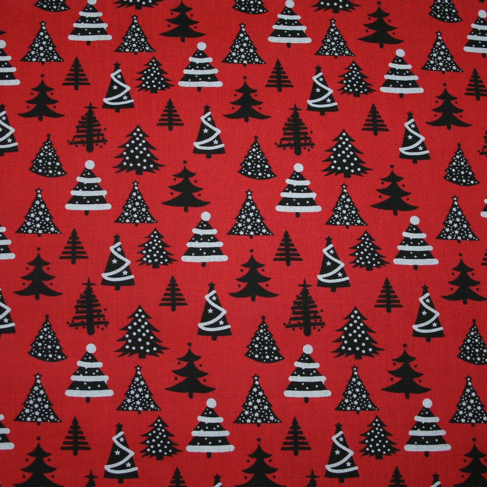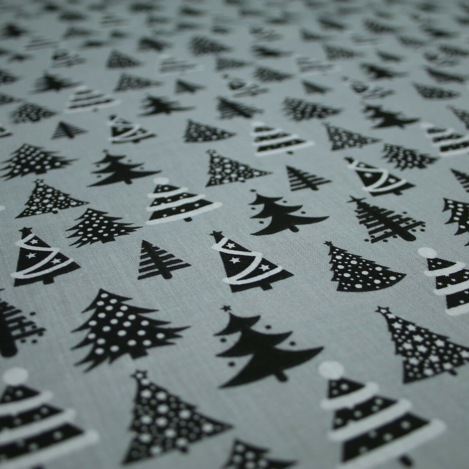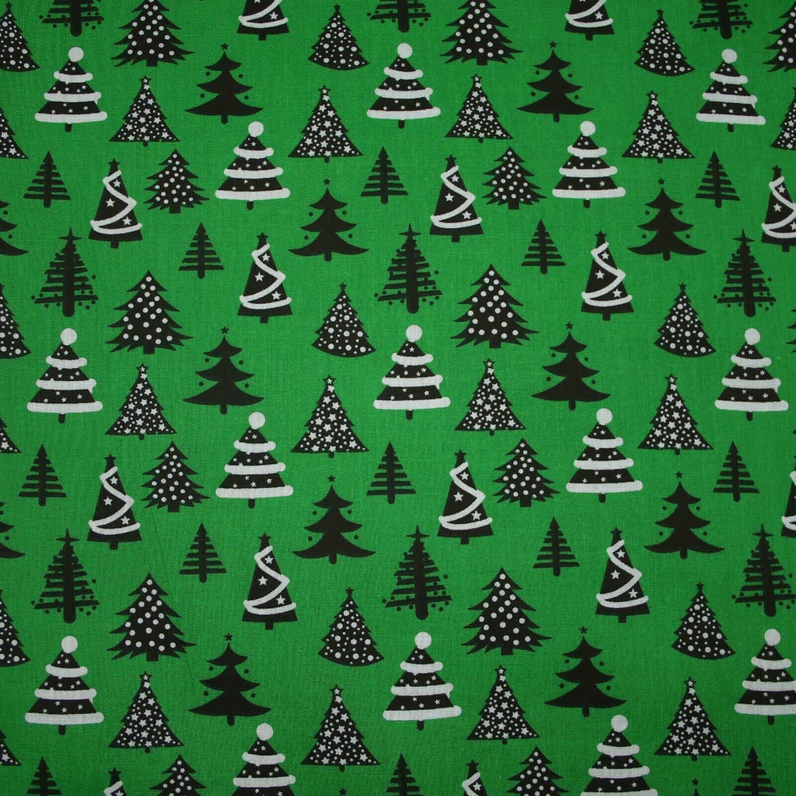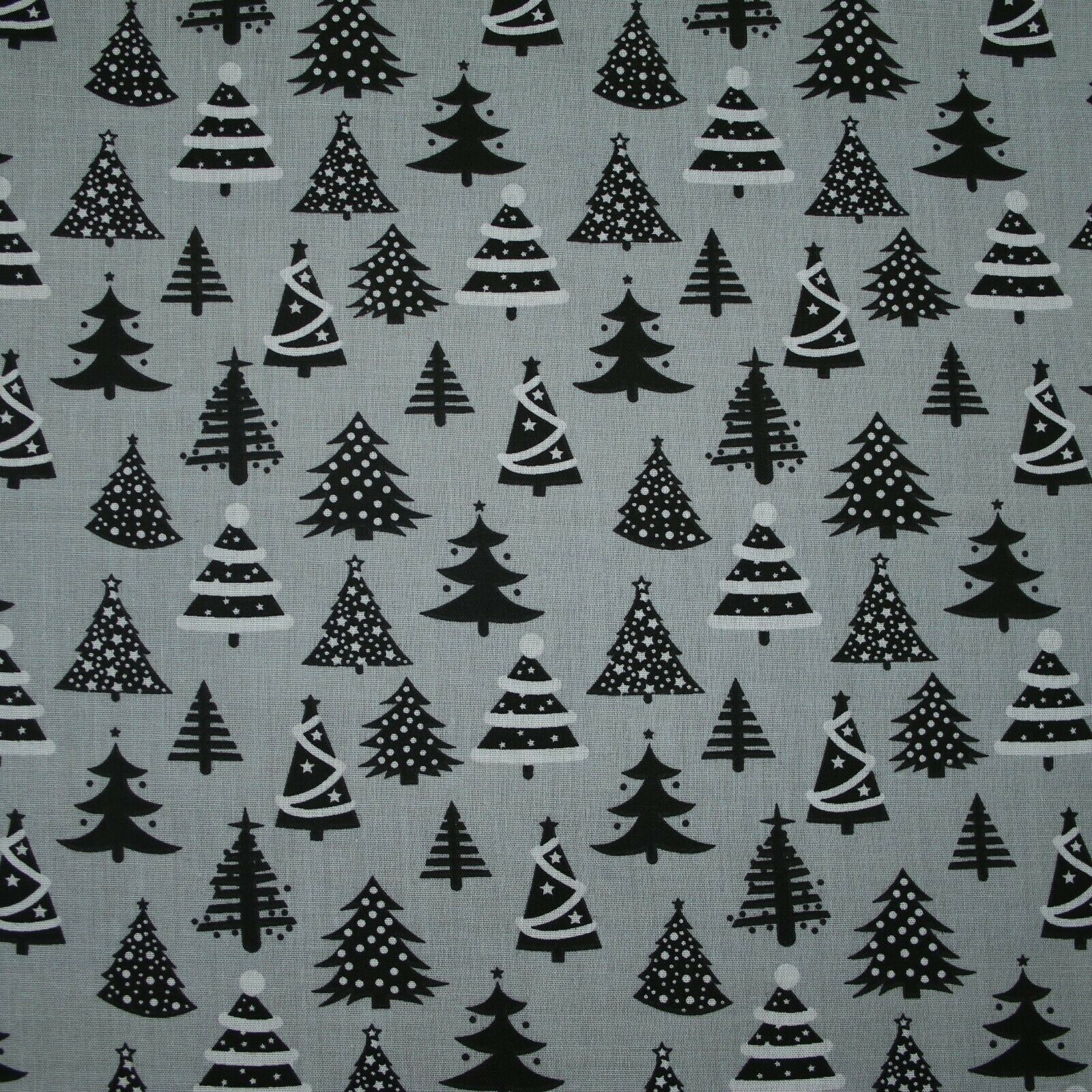 Festive Black & White Christmas Trees Printed Poly Cotton Fabric Polycotton 45"
