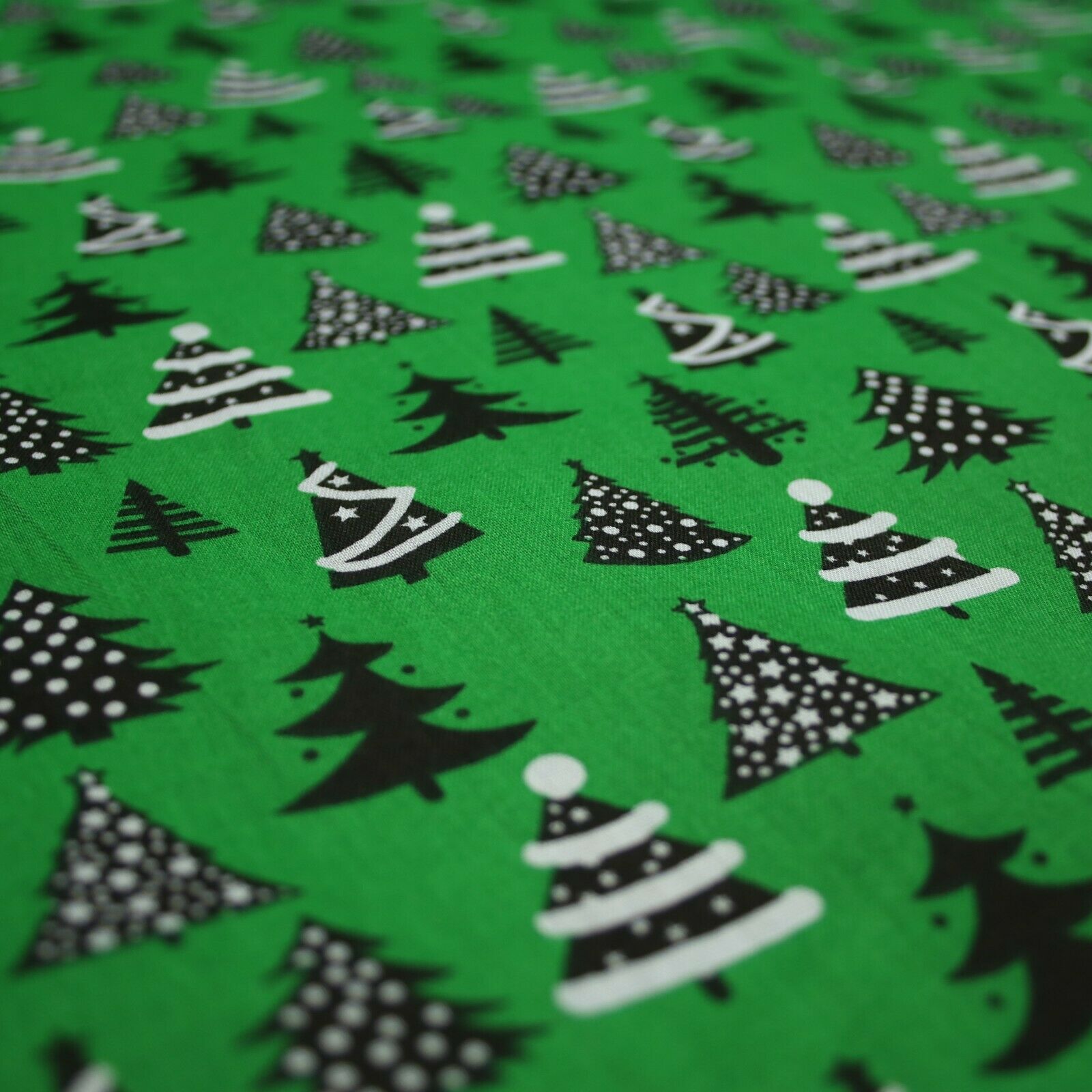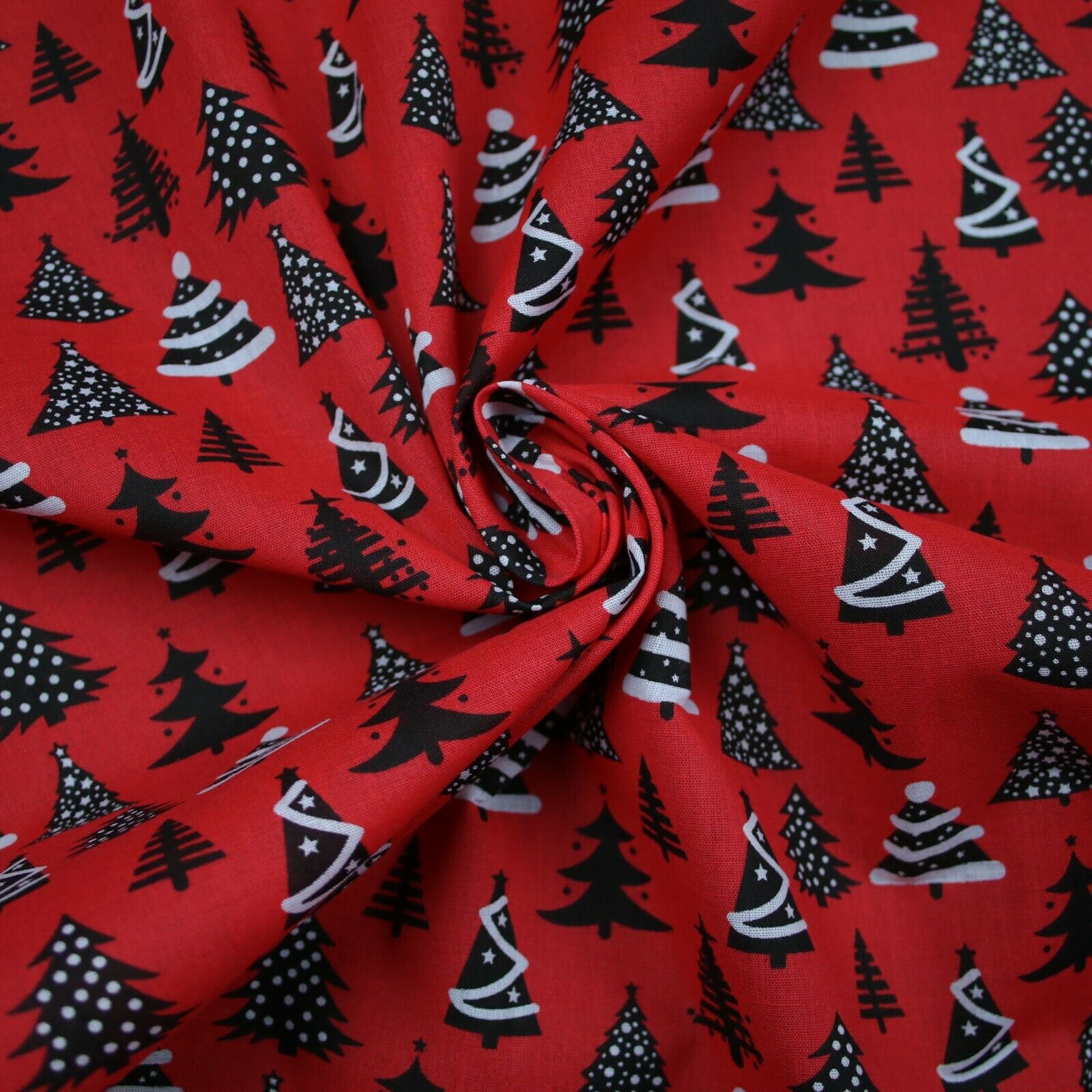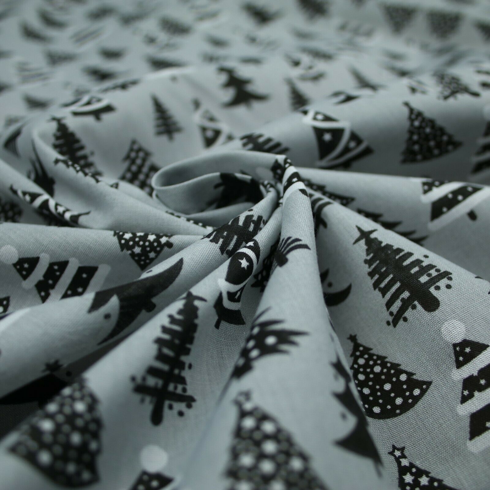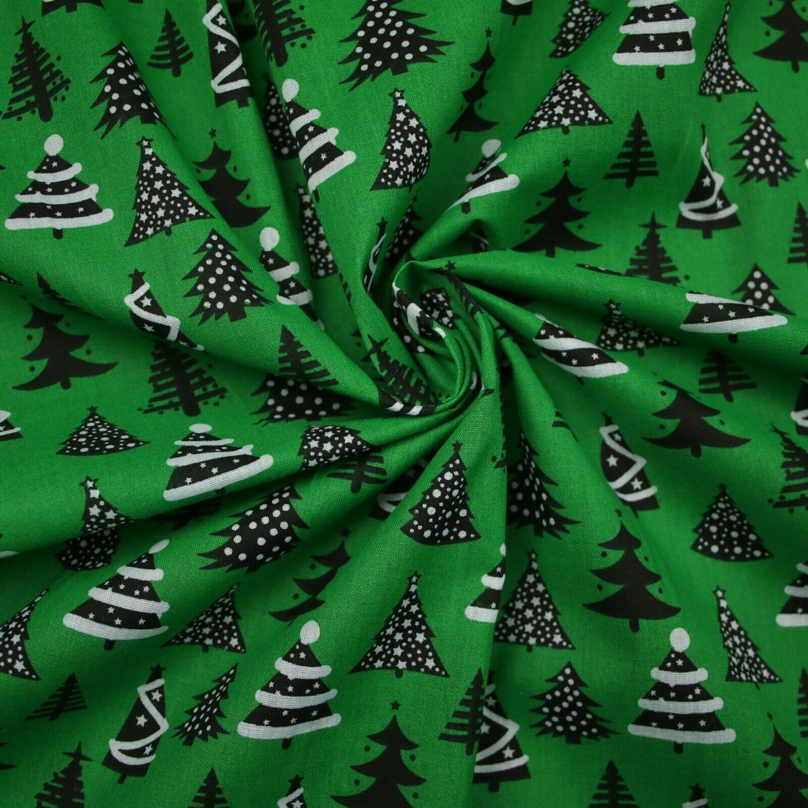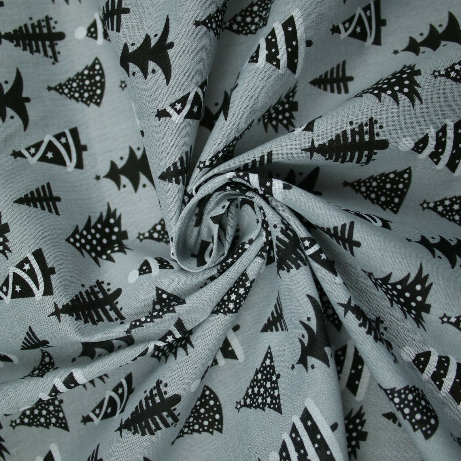 Festive Black & White Christmas Trees Printed Poly Cotton Fabric Polycotton 45"