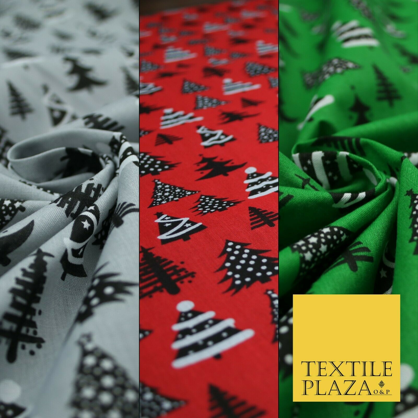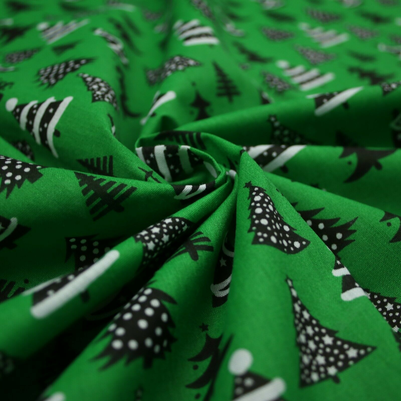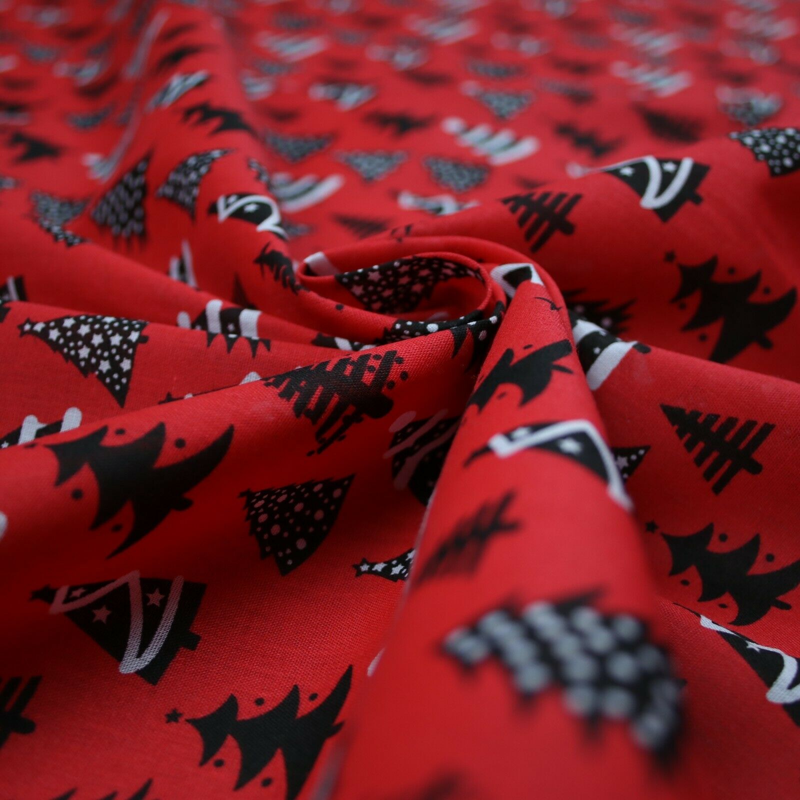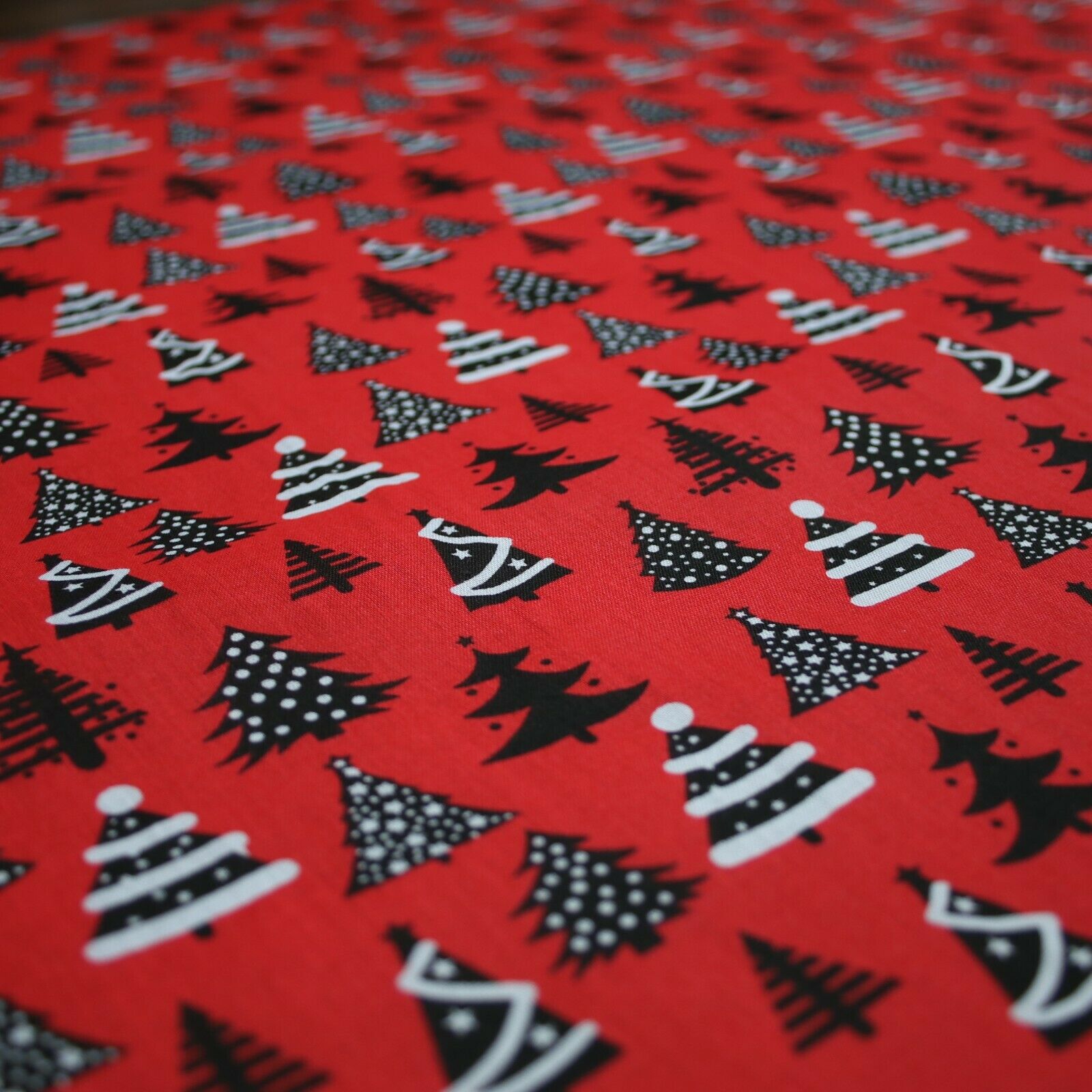 Festive Black & White Christmas Trees Printed Poly Cotton Fabric Polycotton 45"