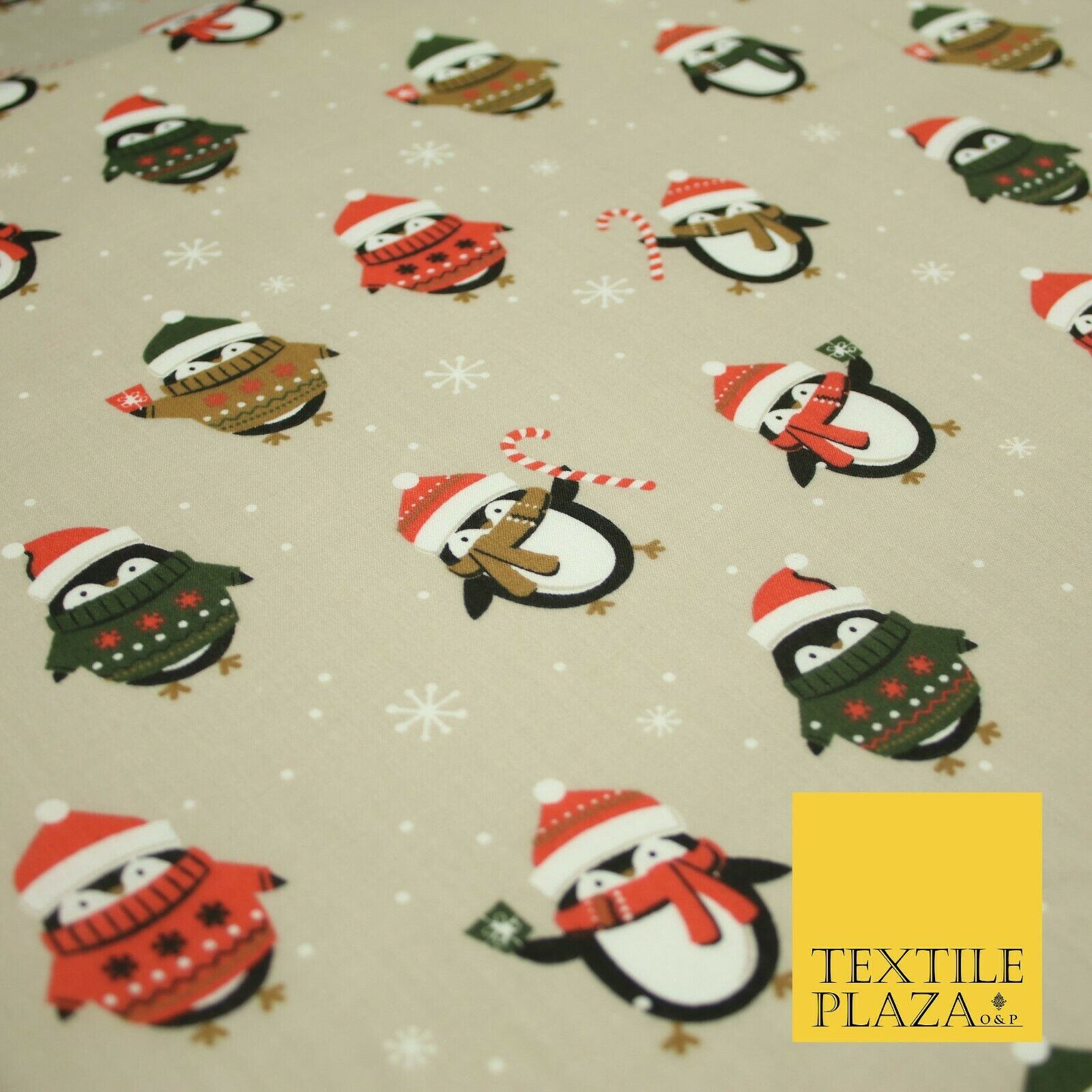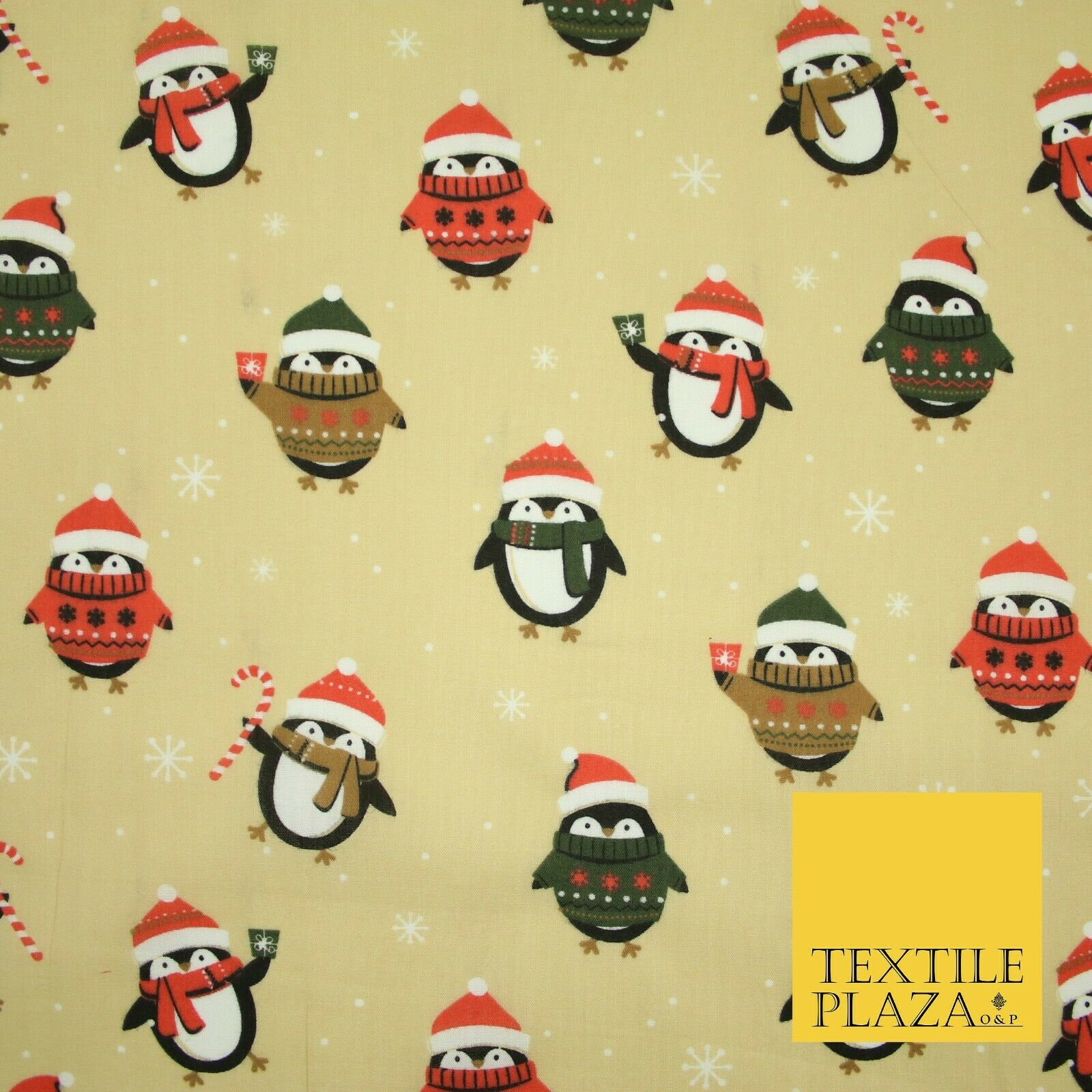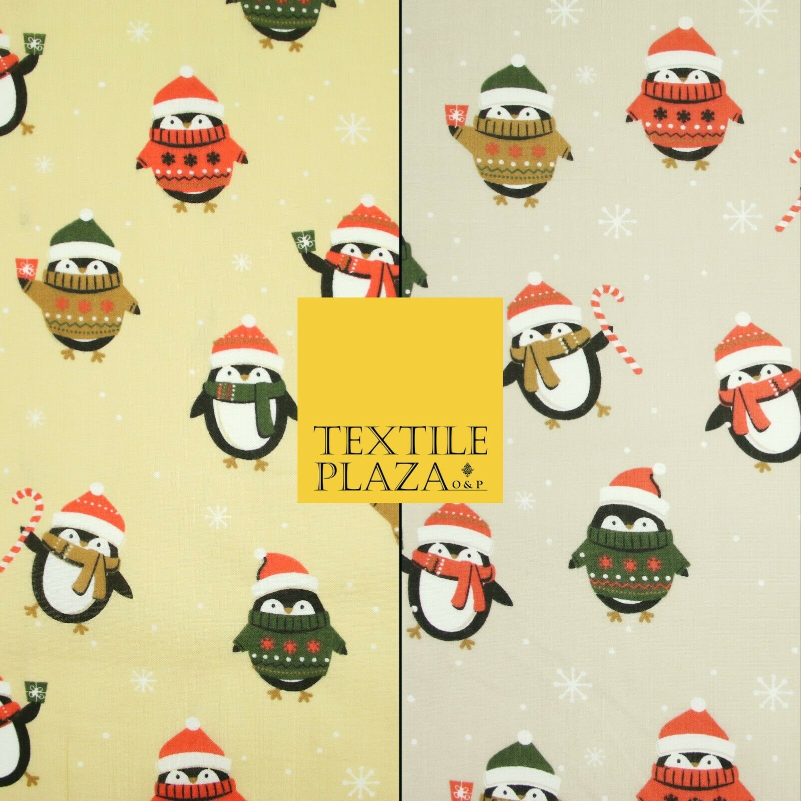 Festive Christmas Cosy Penguins Snowy Printed Poly Cotton Fabric Polycotton 45"