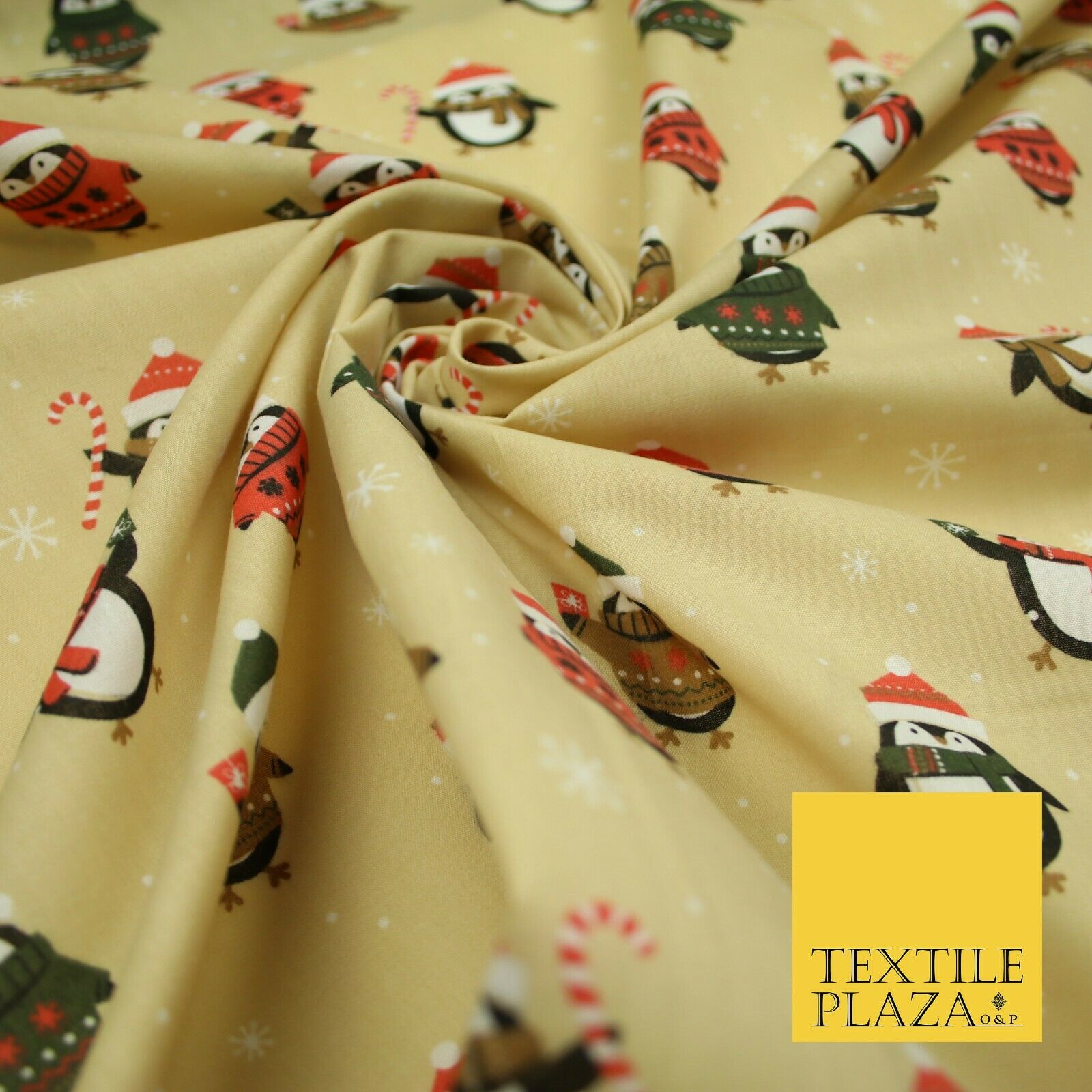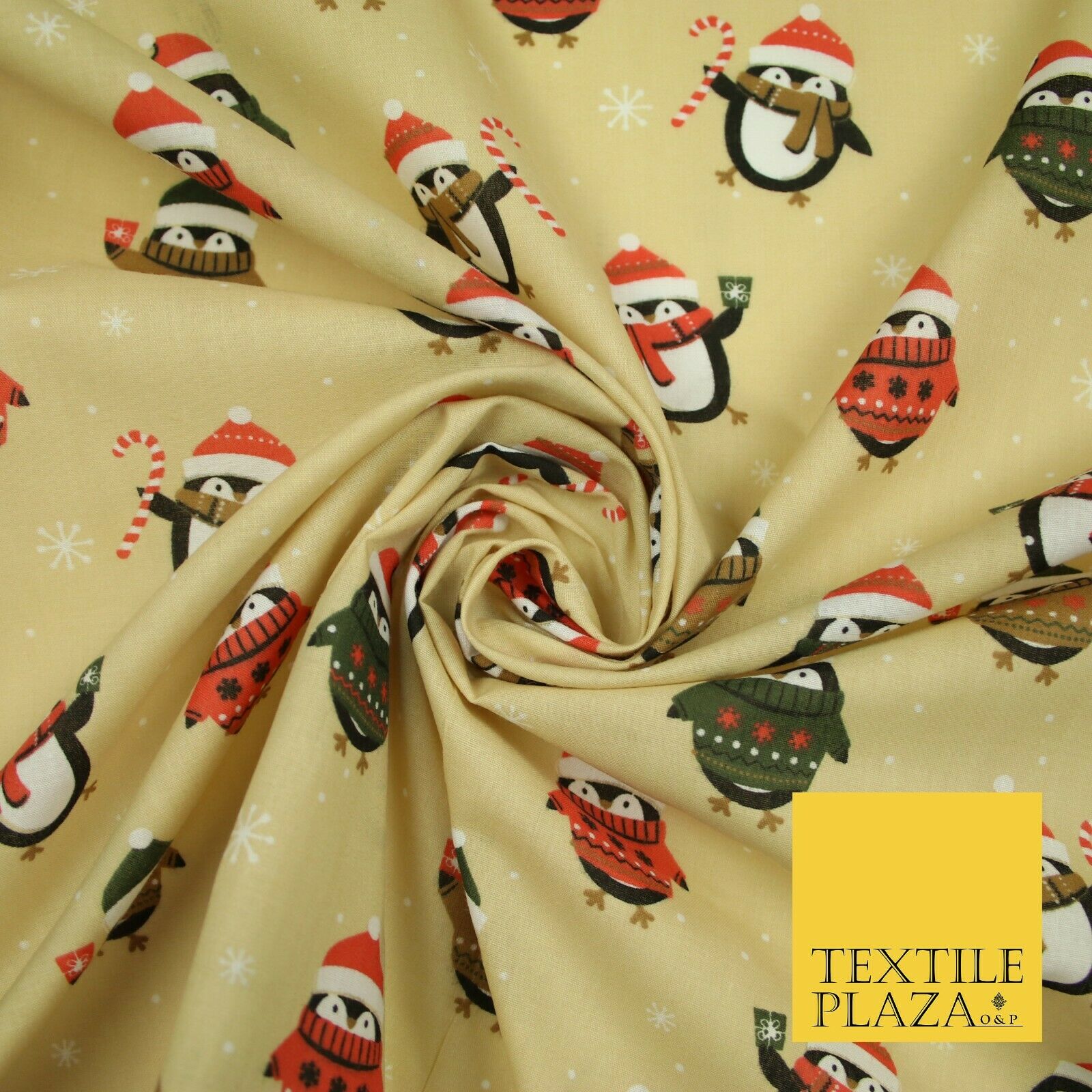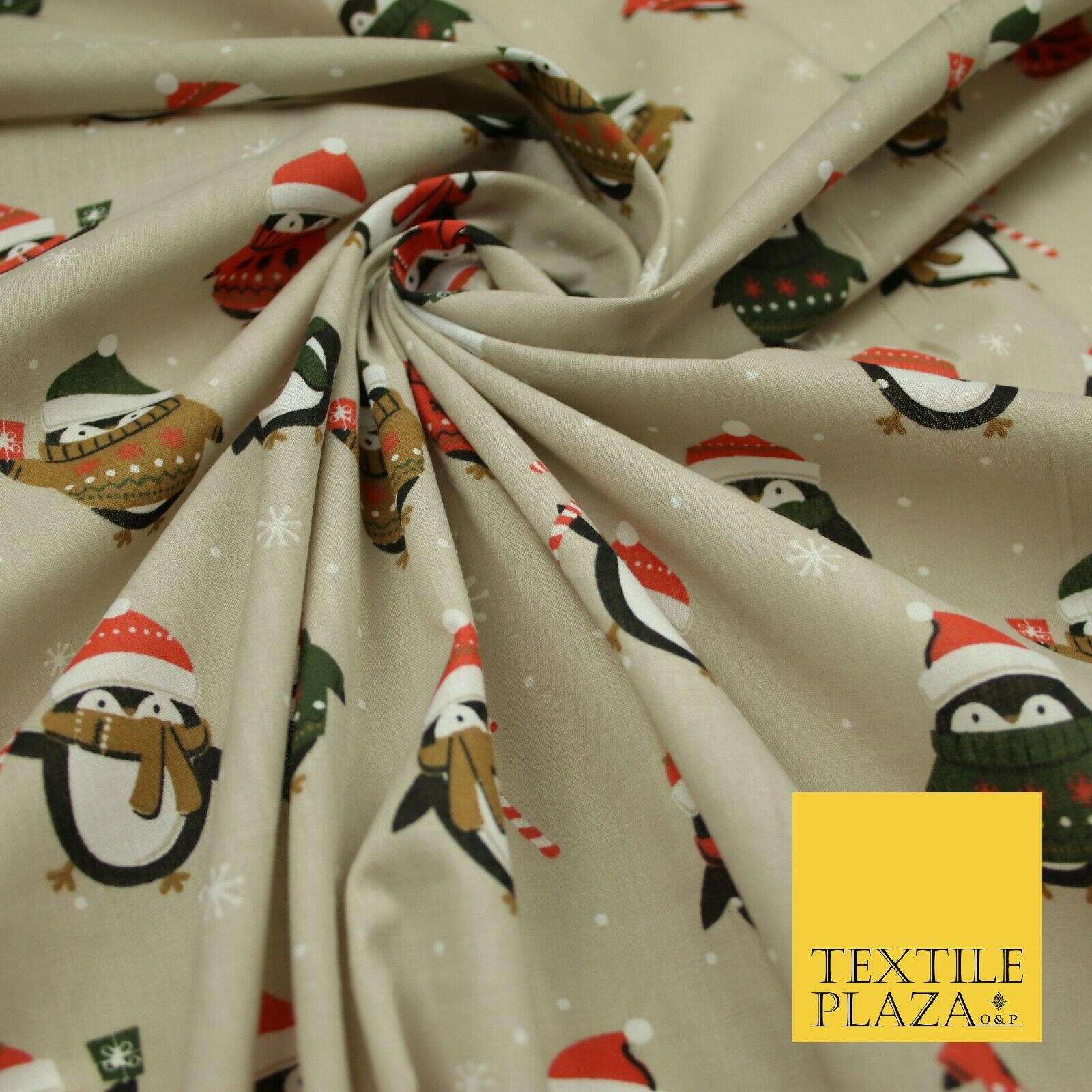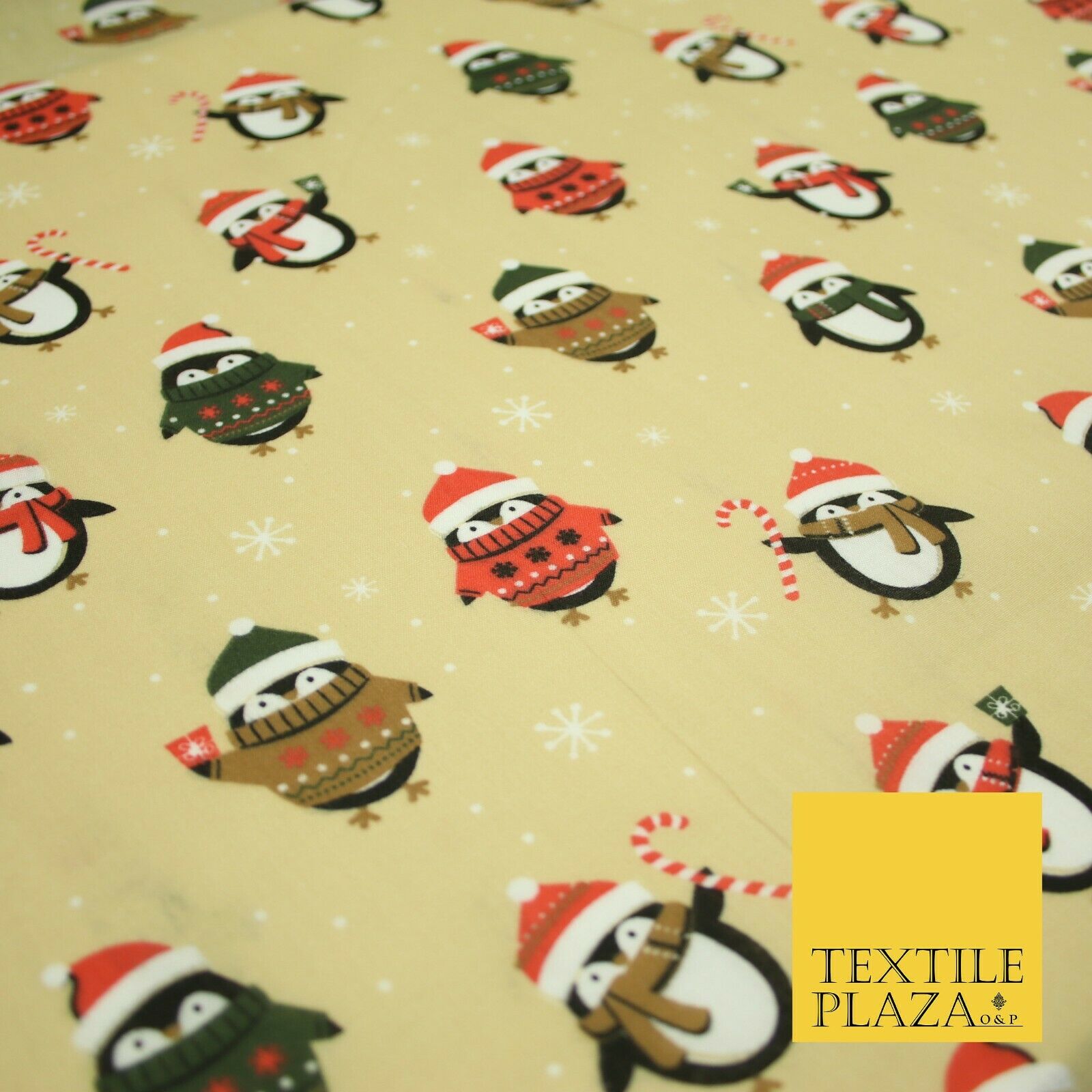 Festive Christmas Cosy Penguins Snowy Printed Poly Cotton Fabric Polycotton 45"