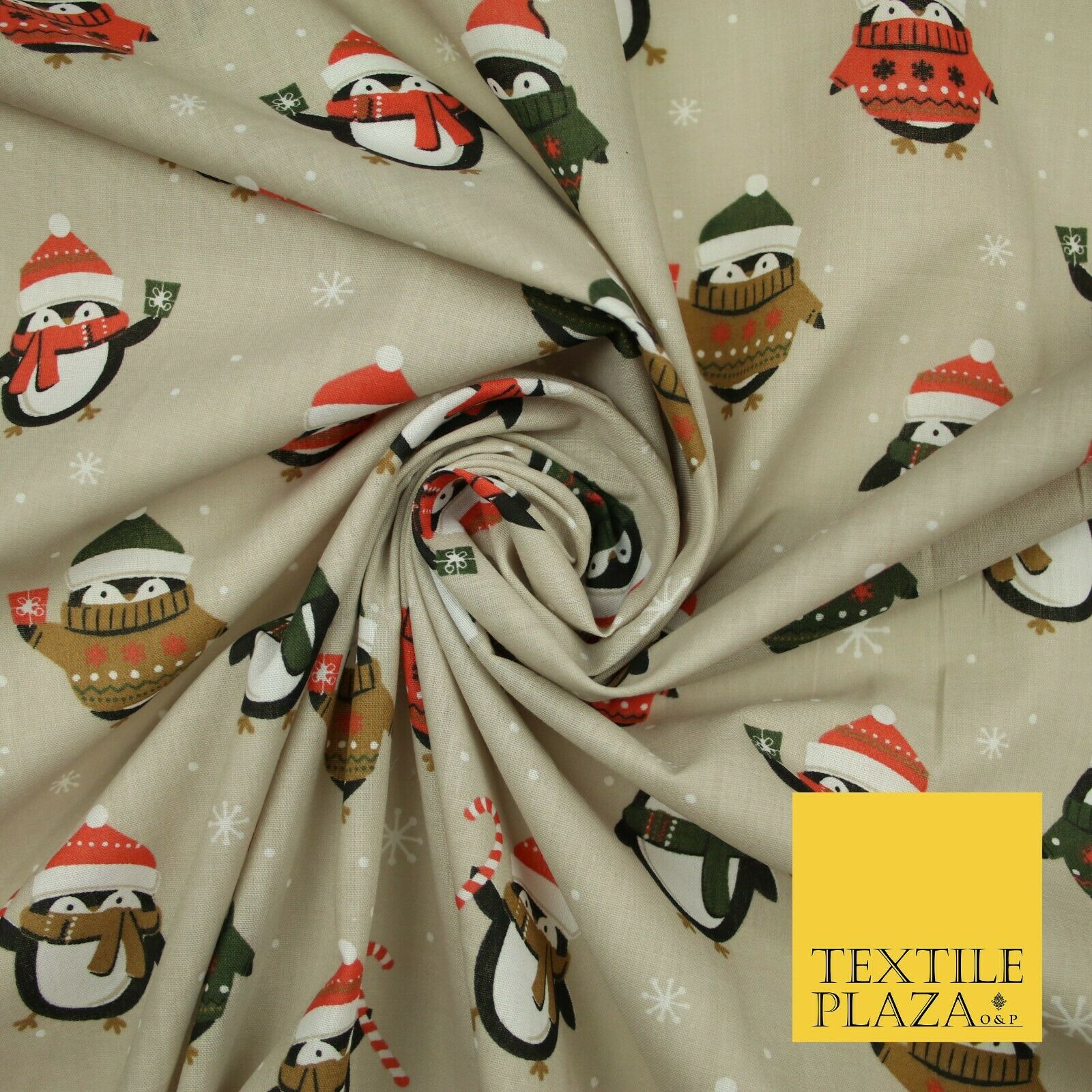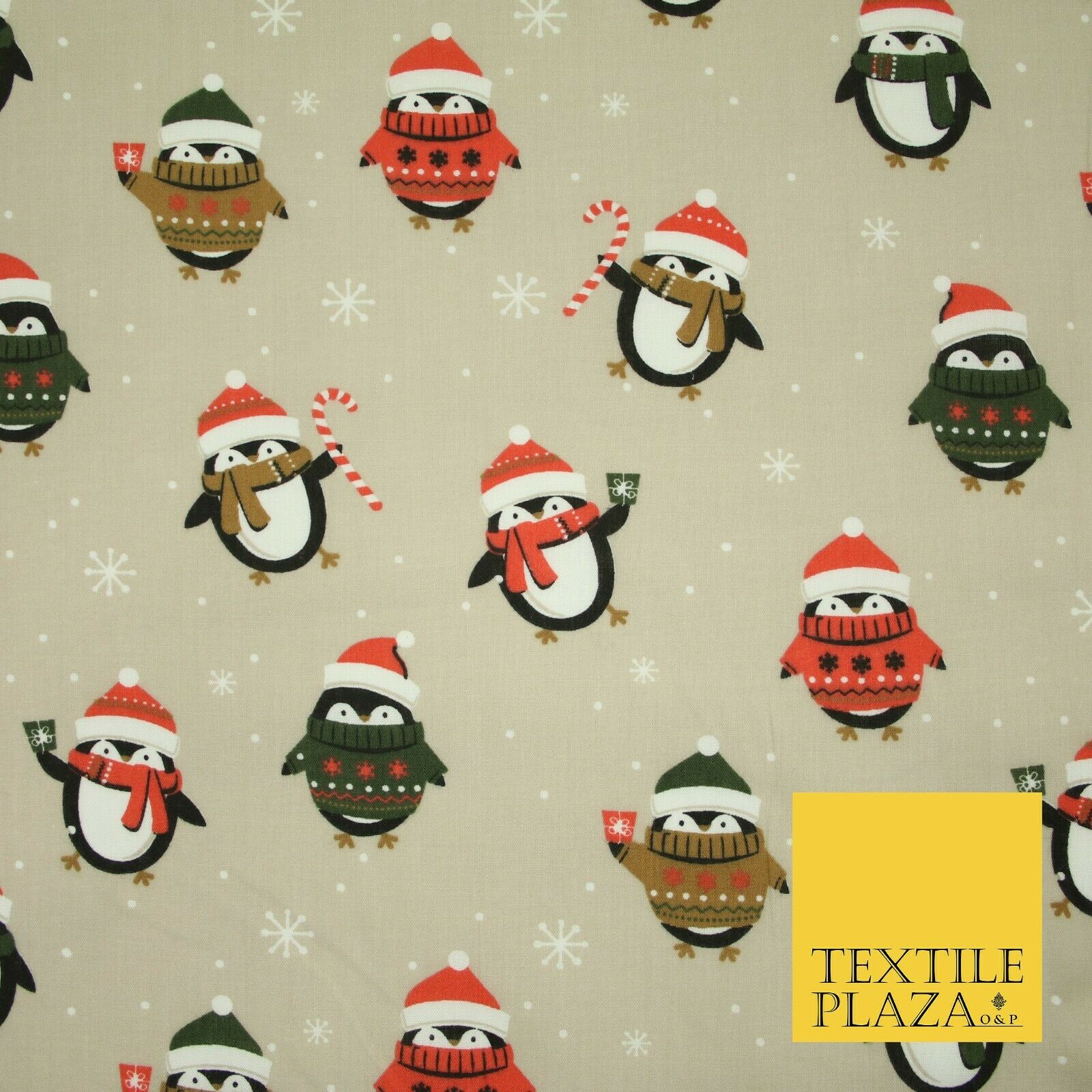 Festive Christmas Cosy Penguins Printed Poly Cotton Fabric