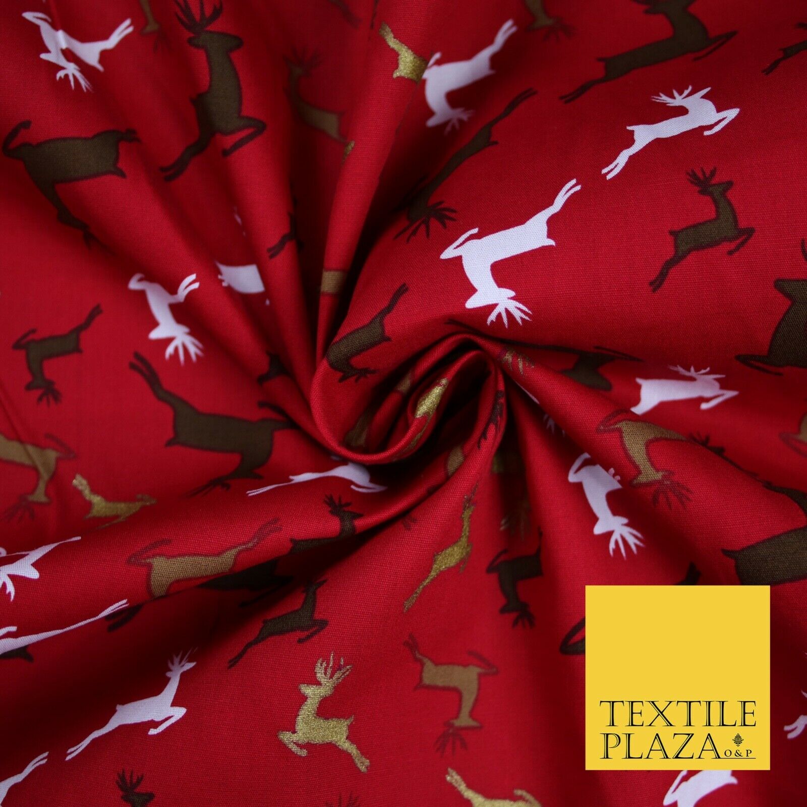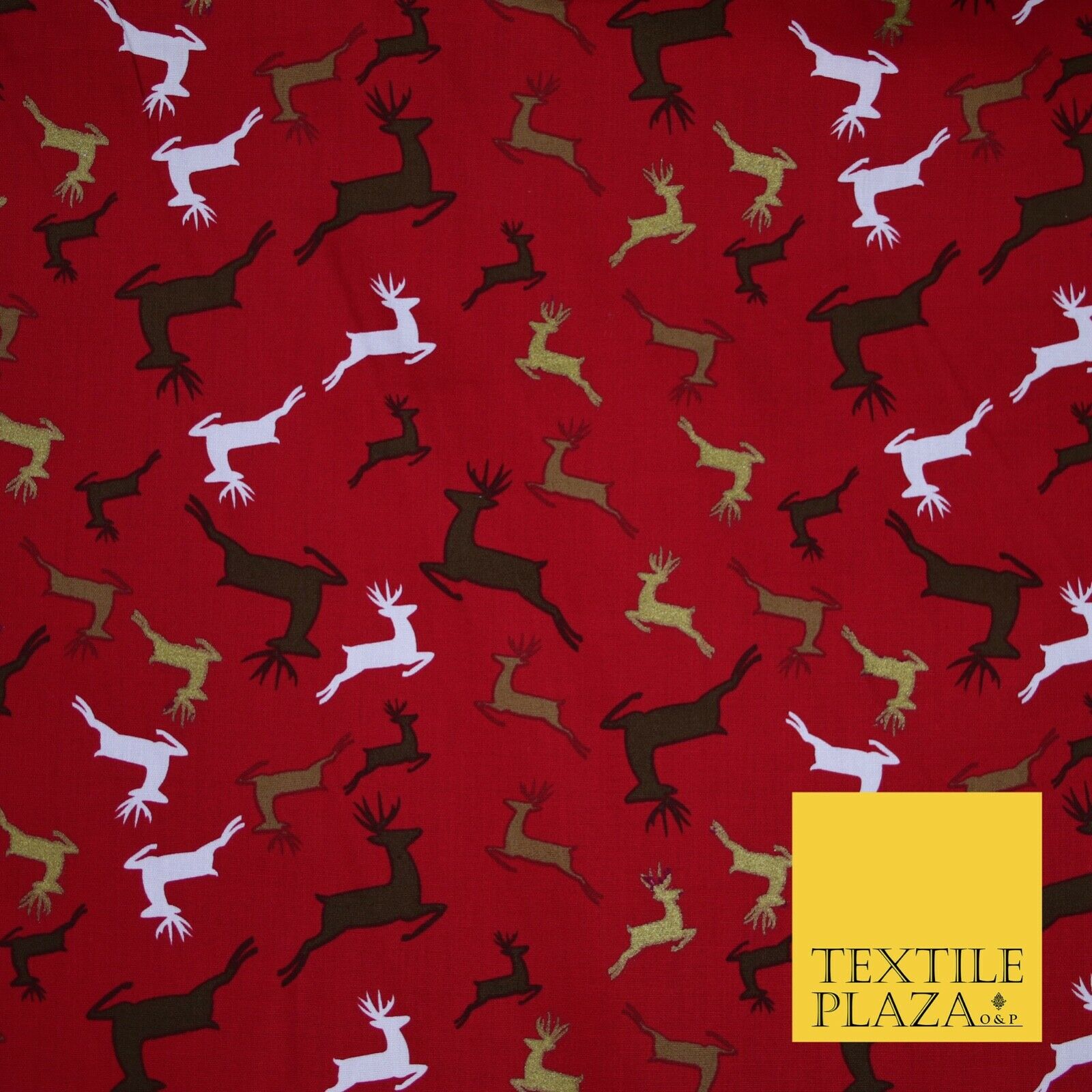 Festive Christmas Dancing Reindeers Printed 100% Cotton Poplin Fabric Craft 6502