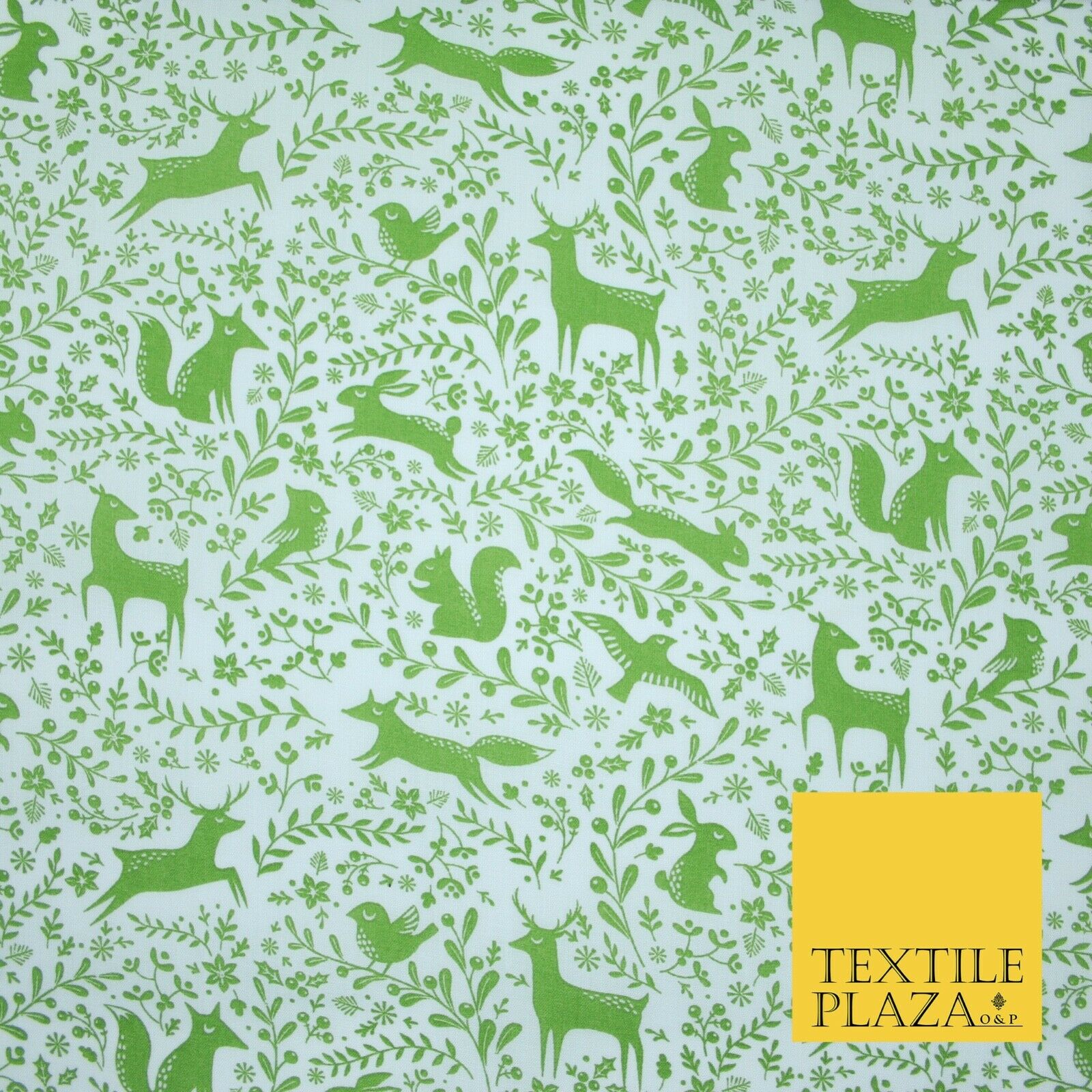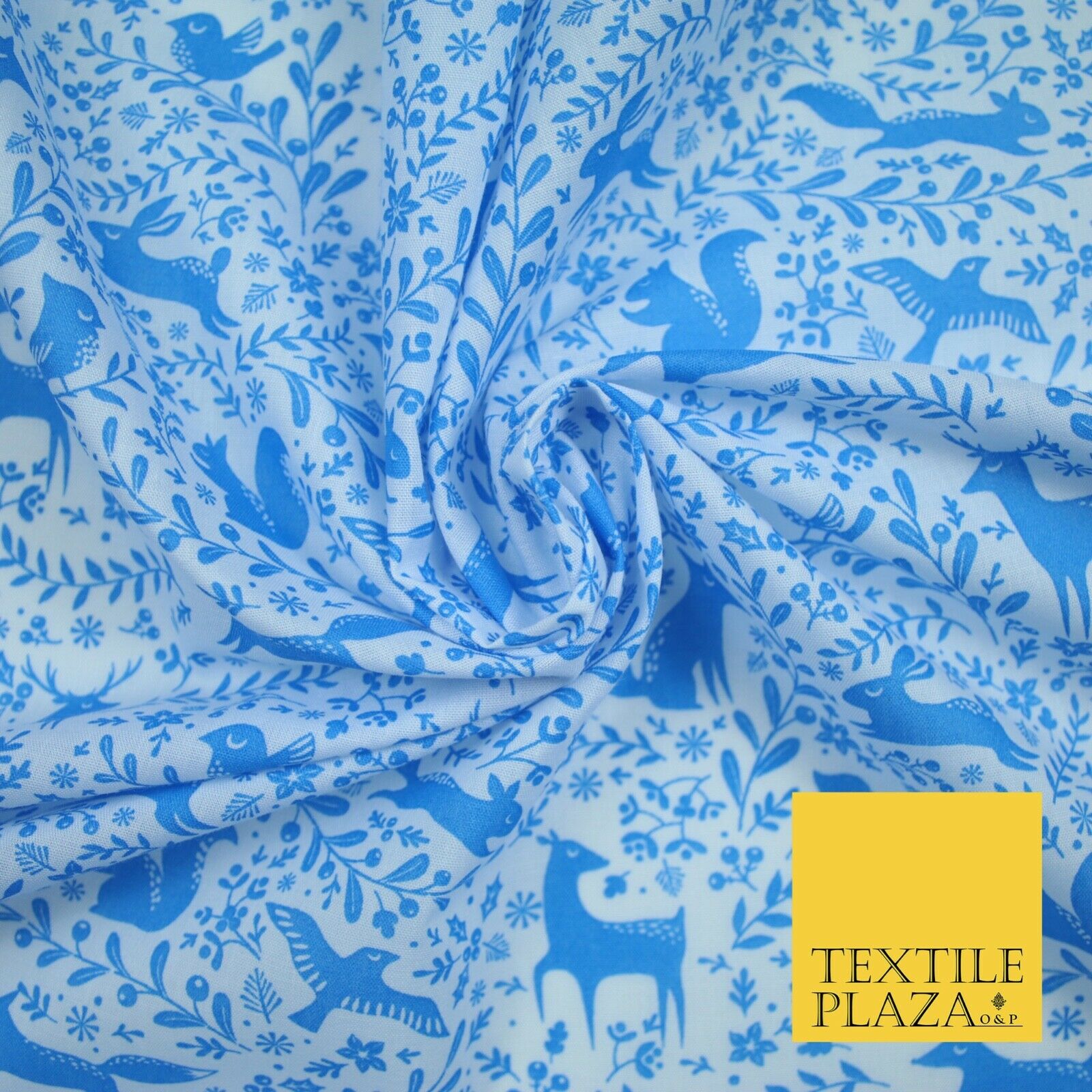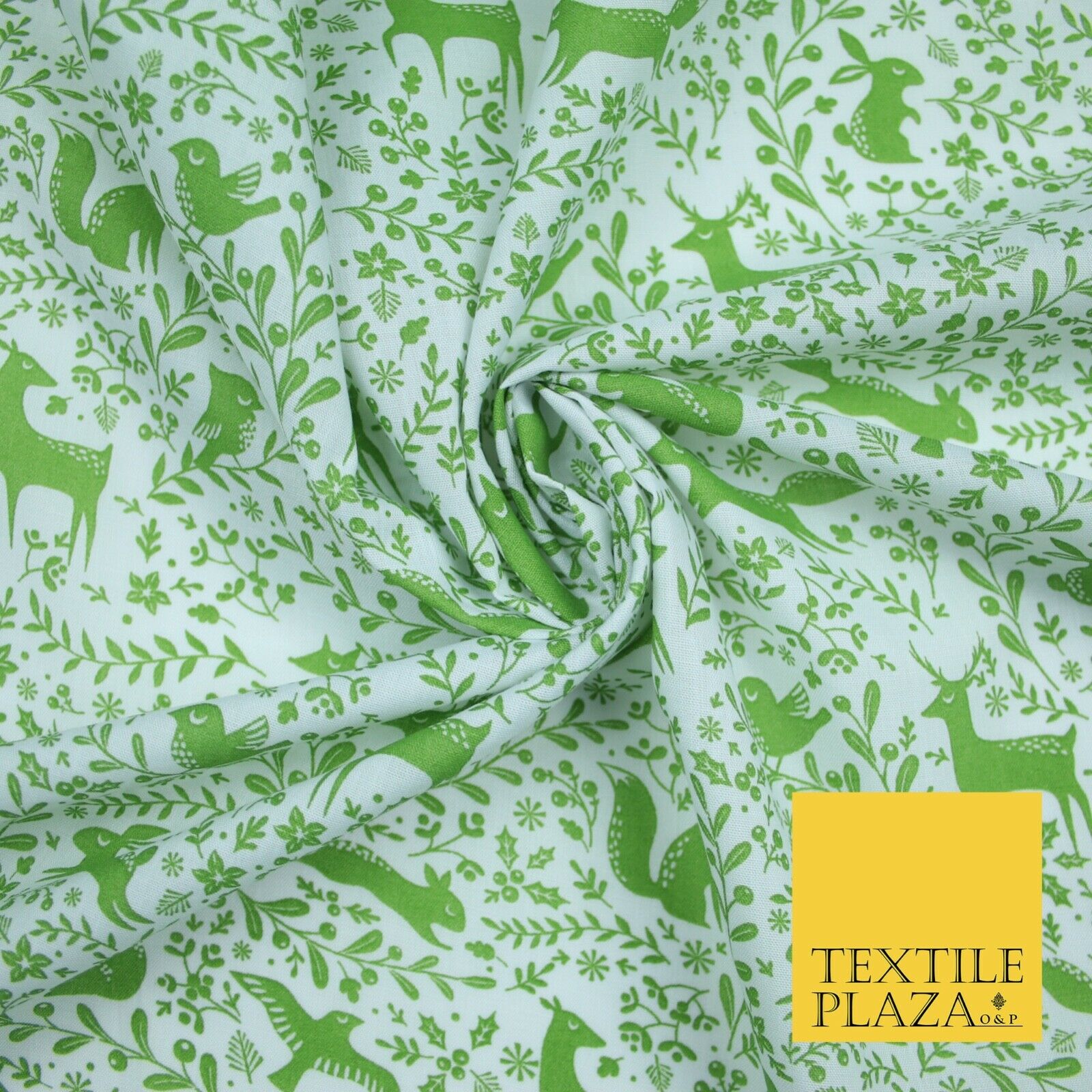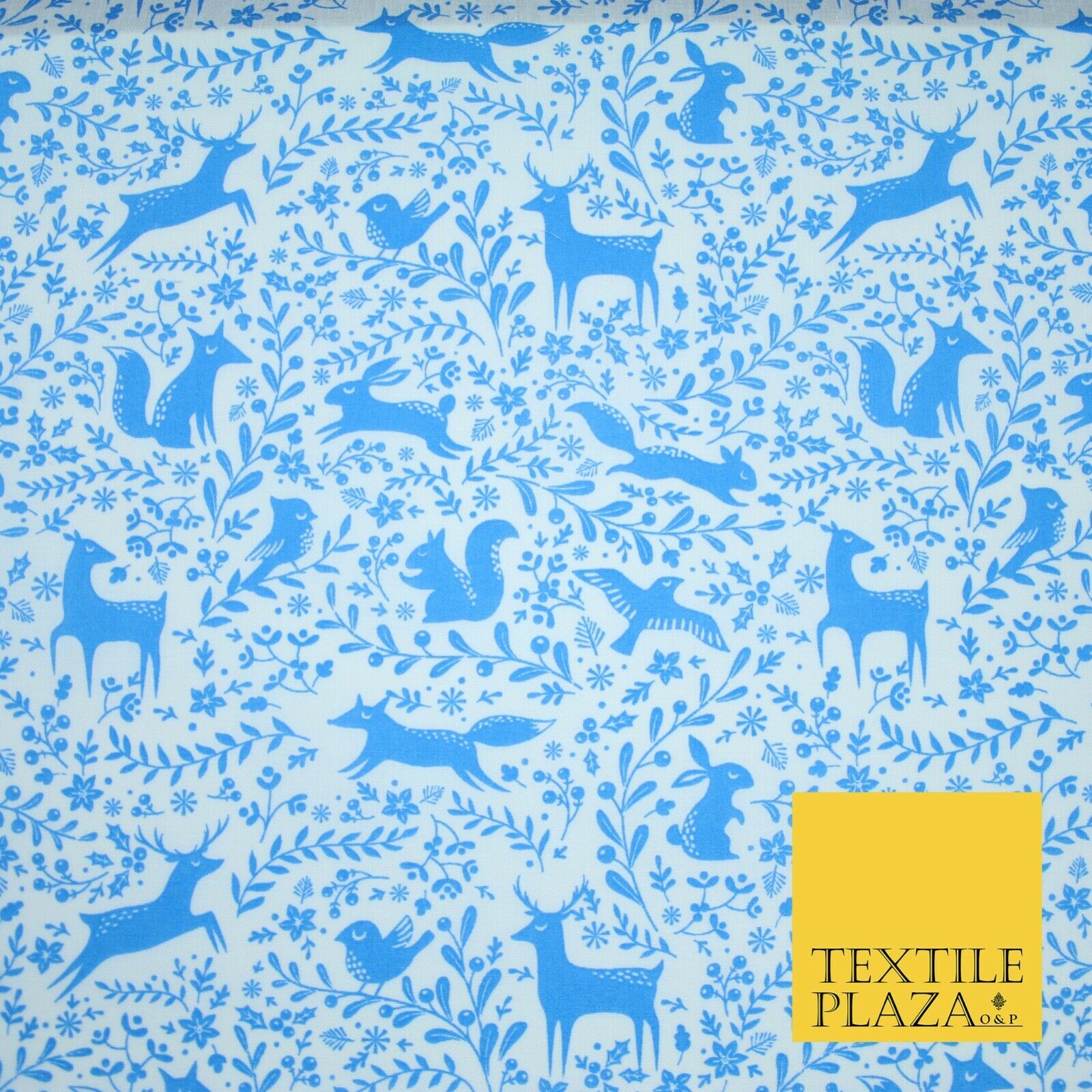 Festive Christmas Forest Animals Birds Printed Poly Cotton Fabric Polycotton 45"