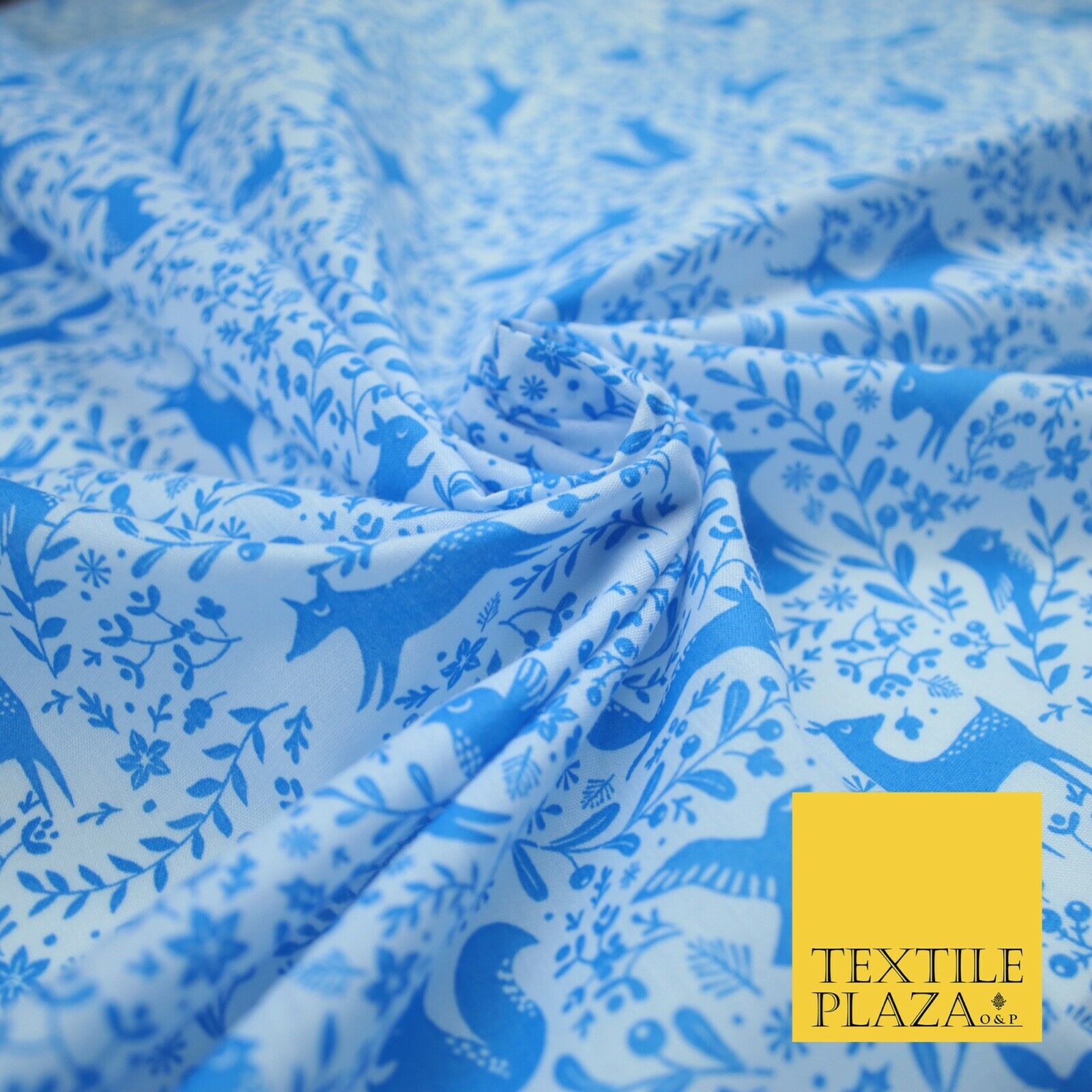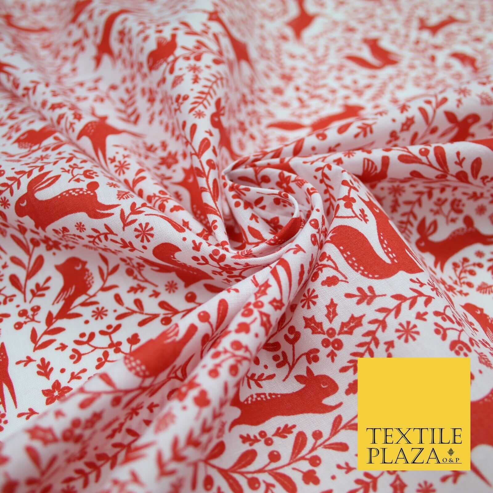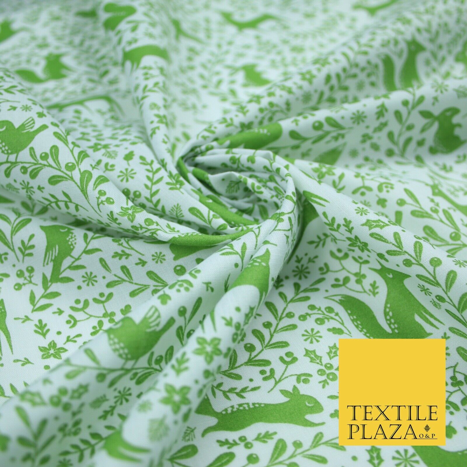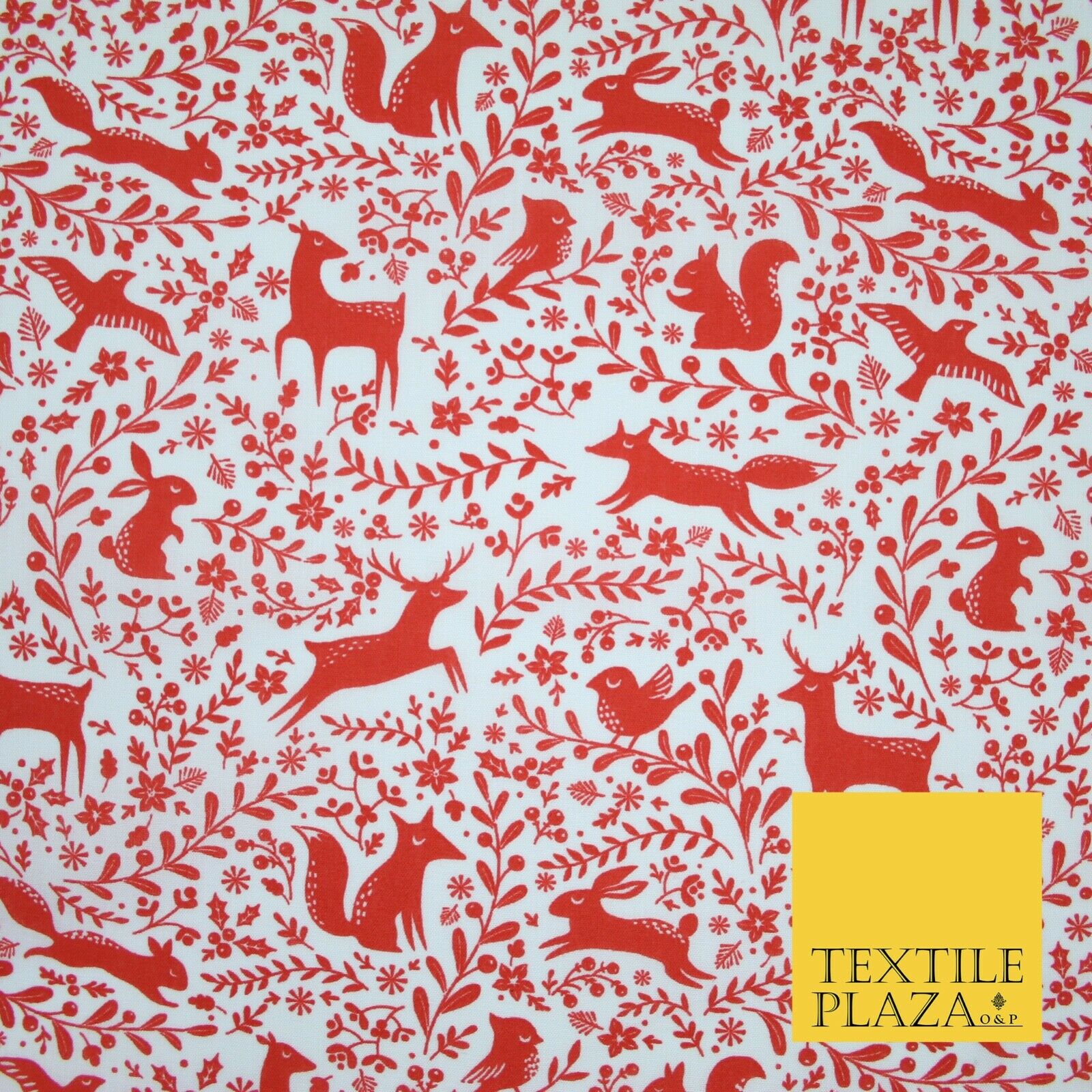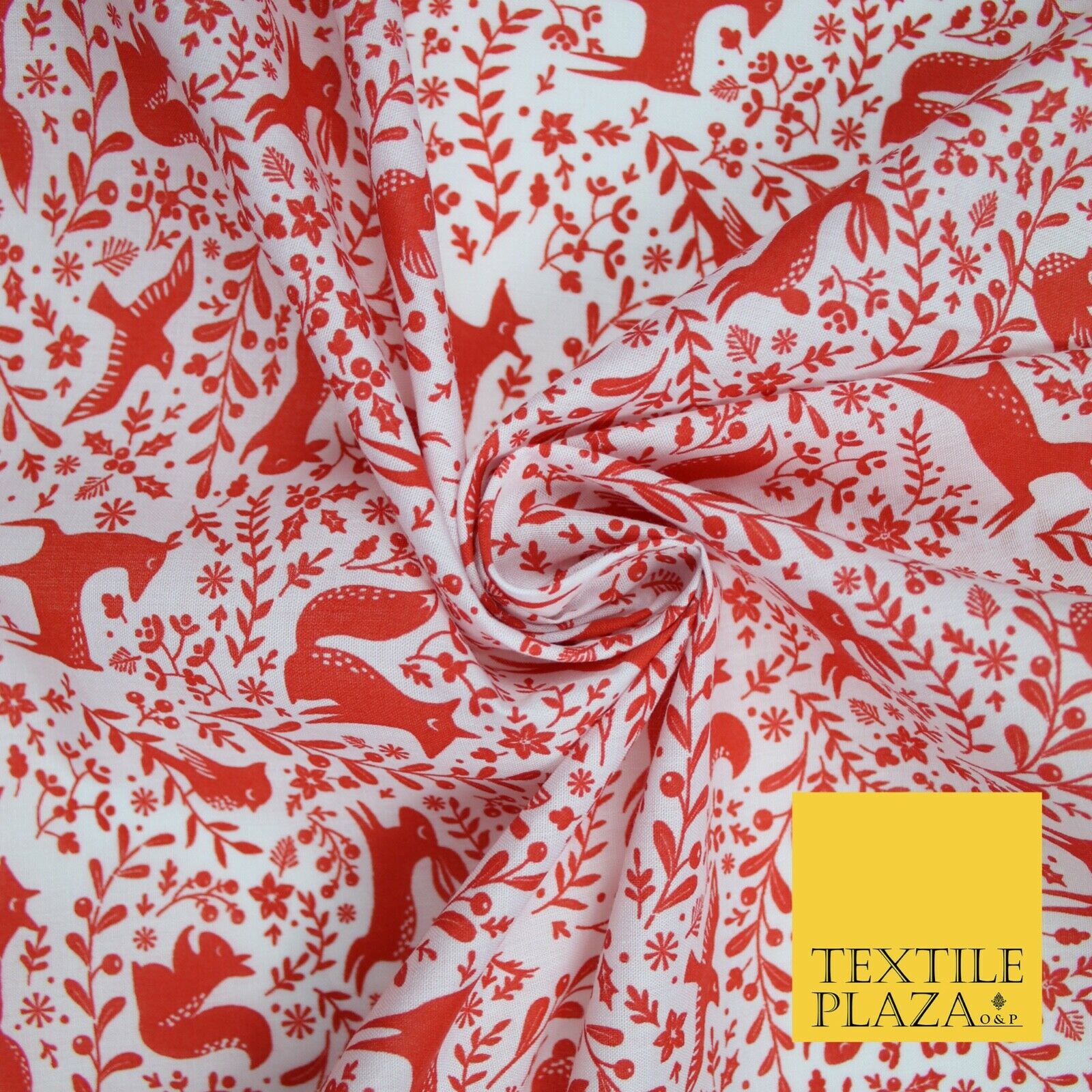 Festive Christmas Forest Animals Birds Printed Poly Cotton Fabric Polycotton 45"