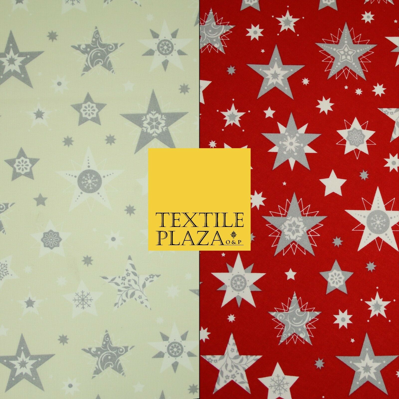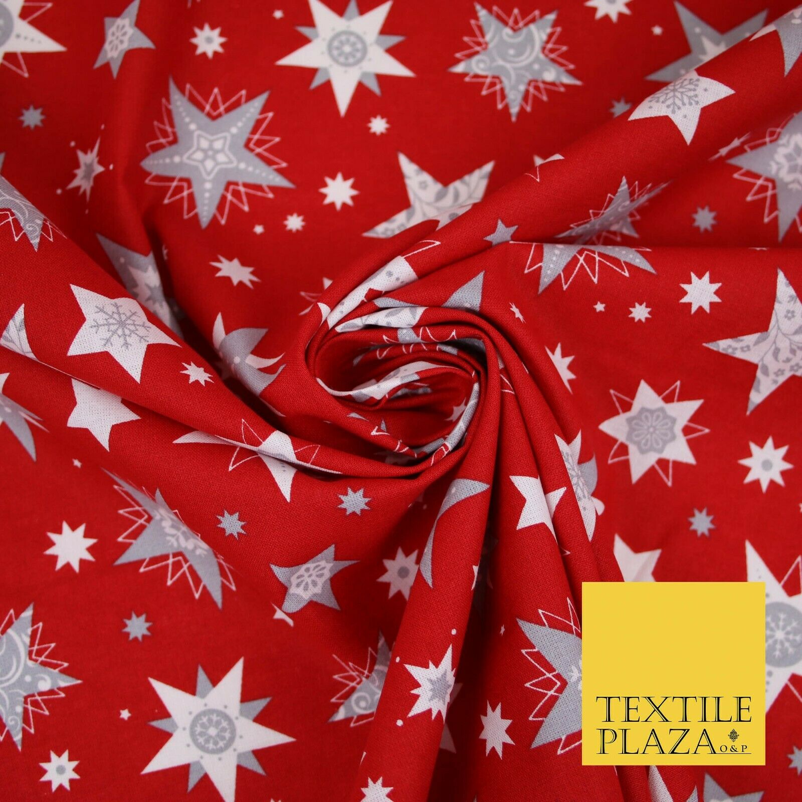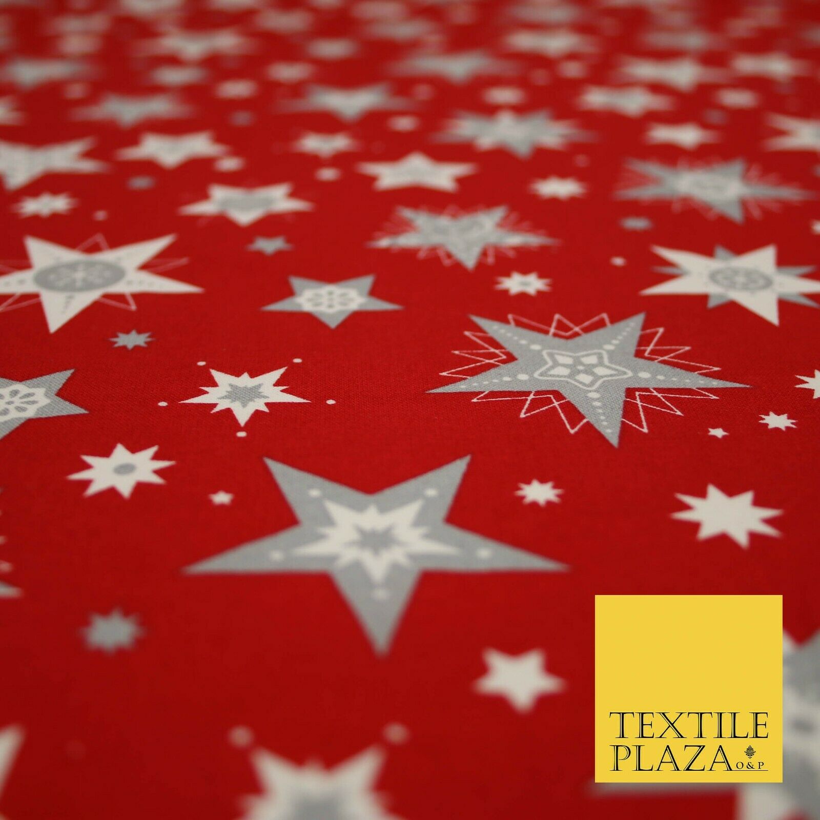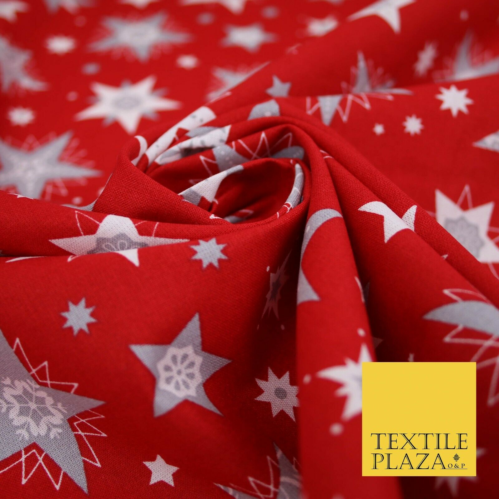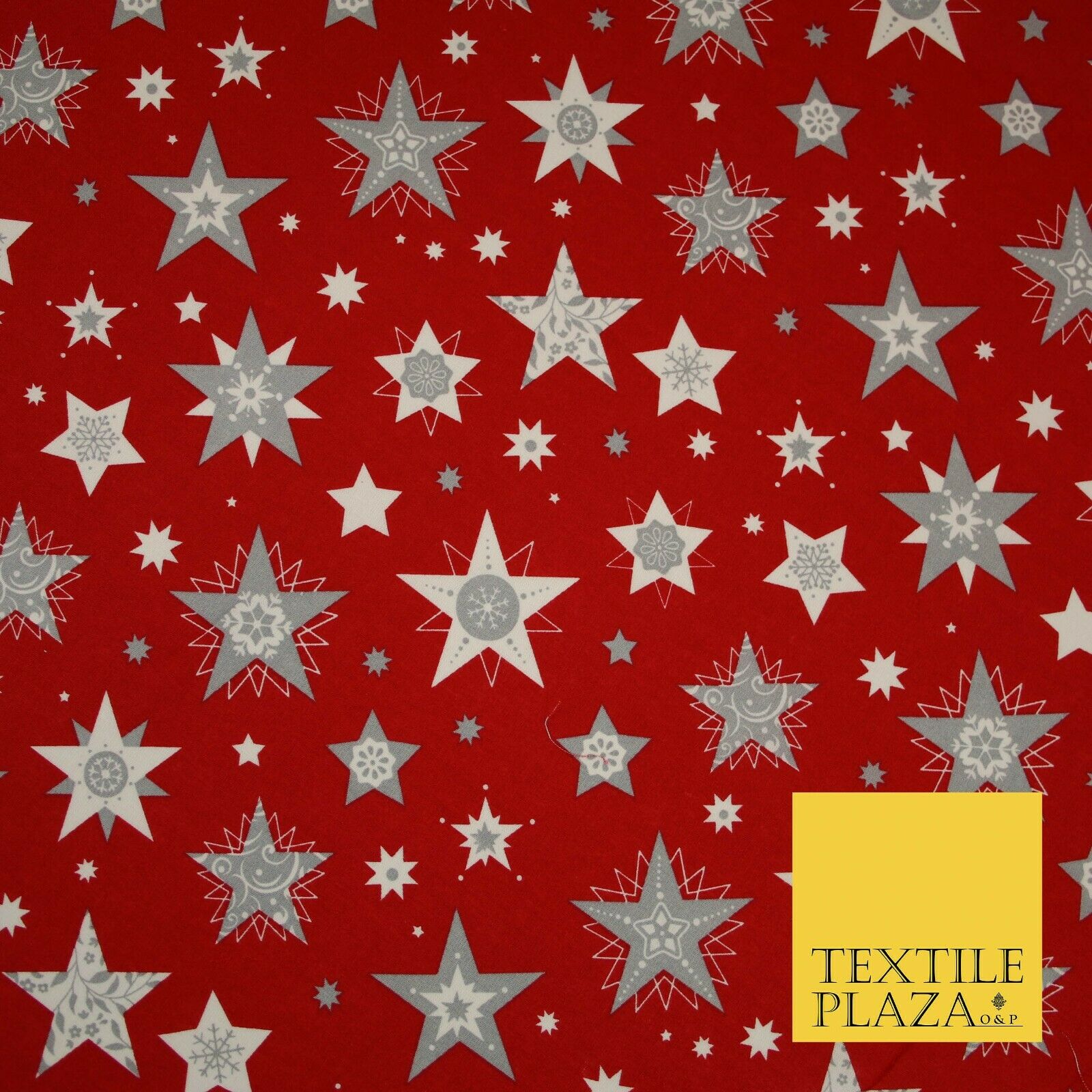 Festive Christmas Grey Multi Stars Snowflakes Printed 100% Cotton Fabric 56"