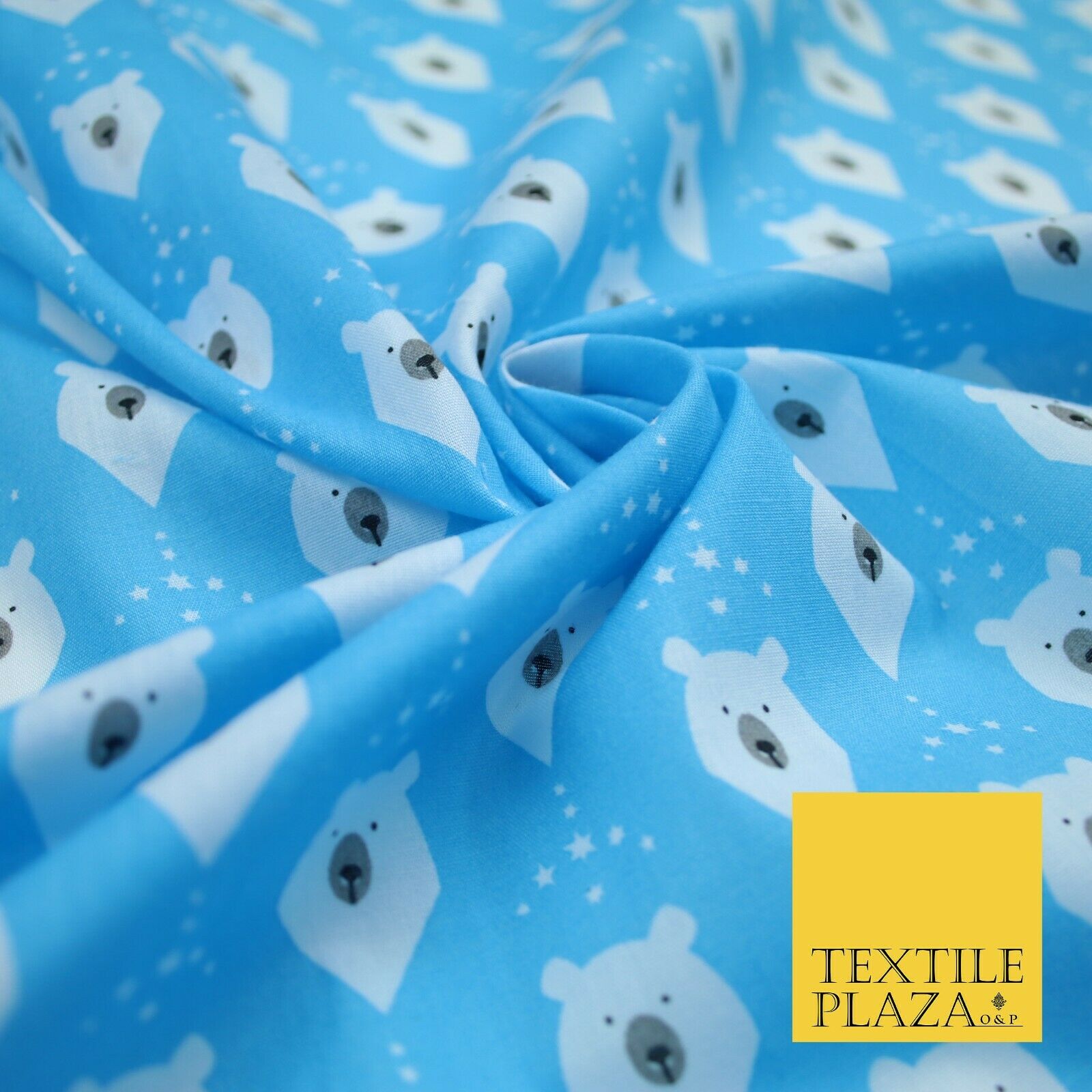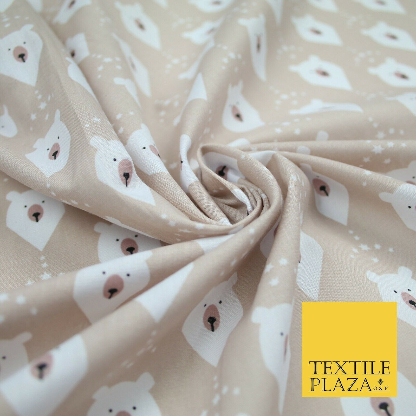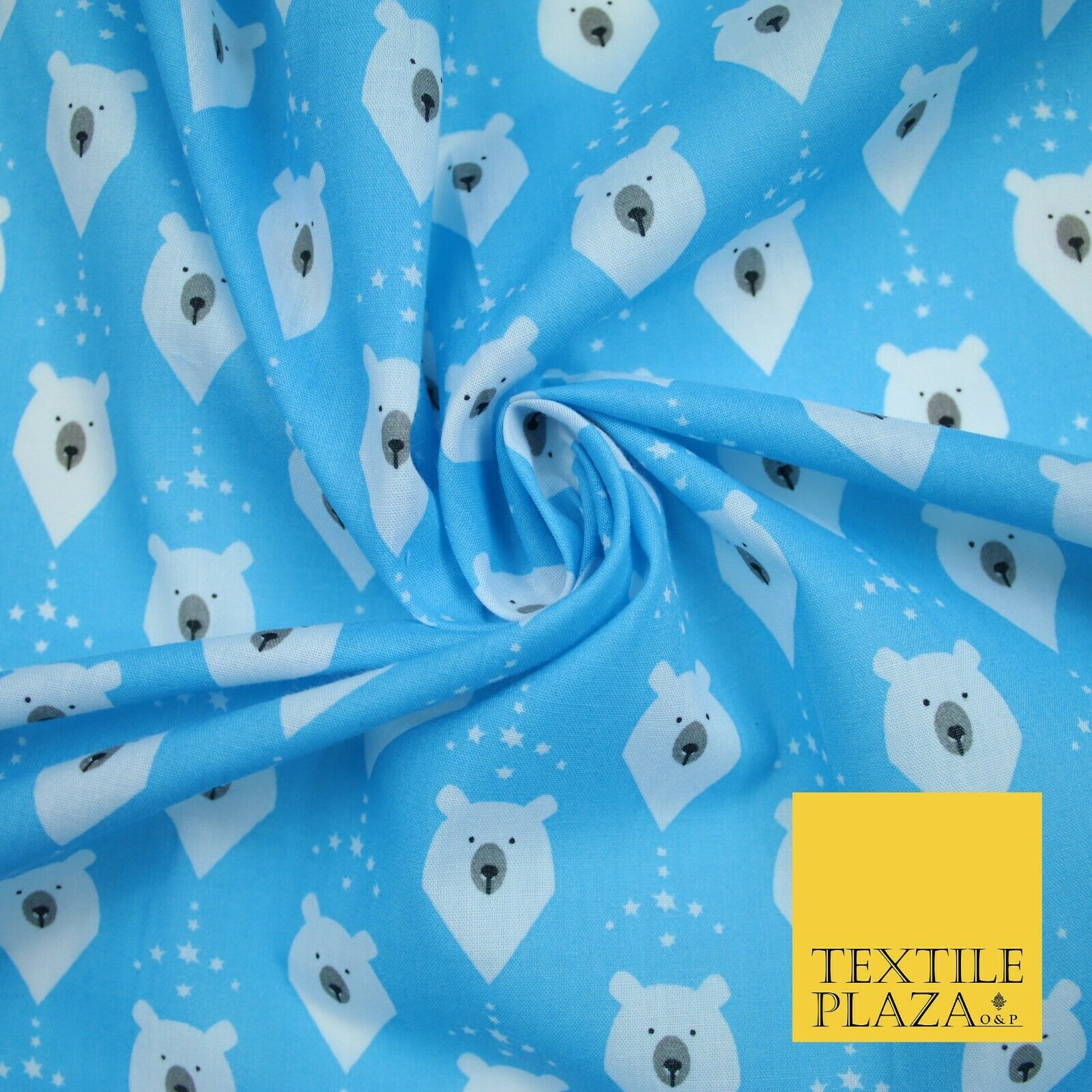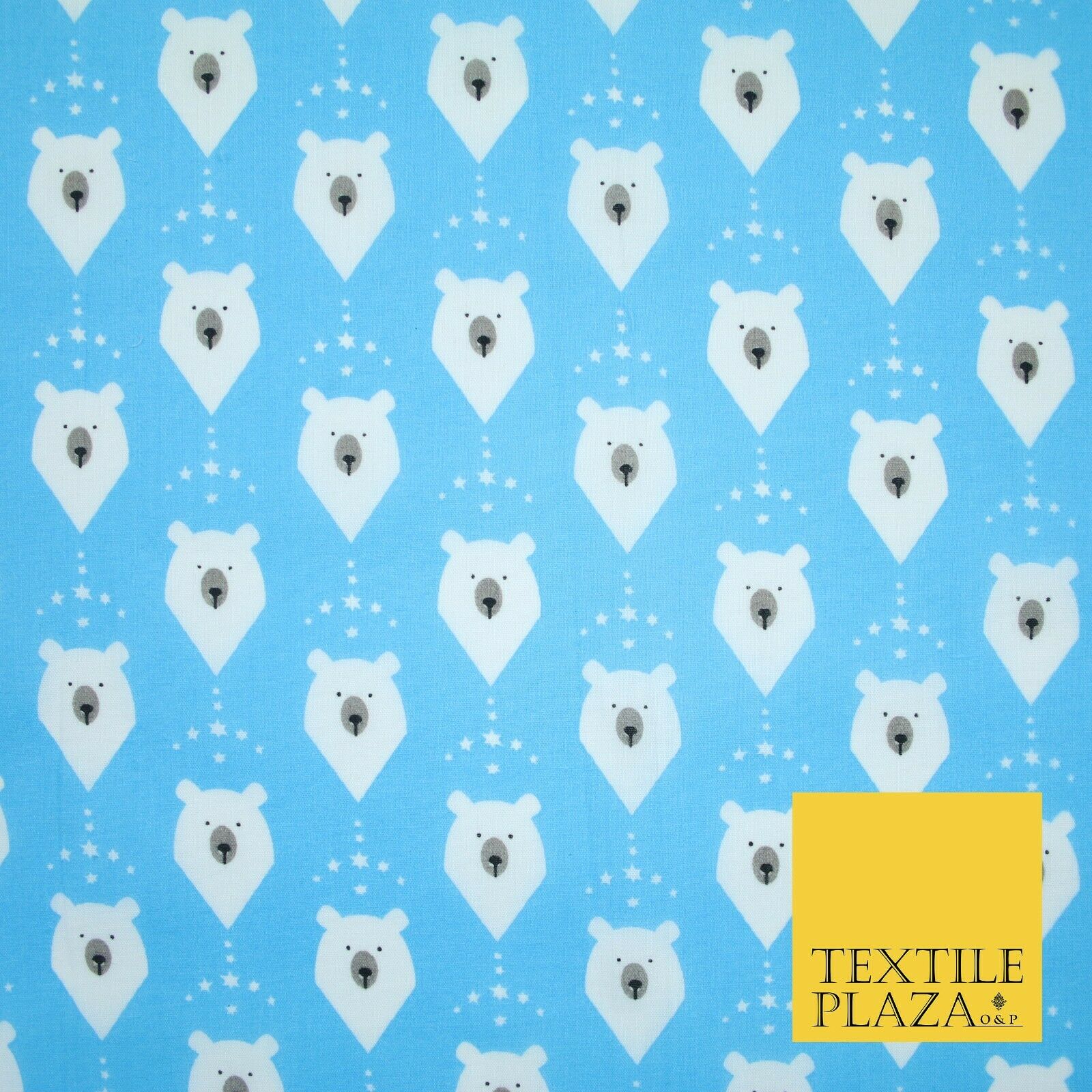 Festive Christmas Polar Bear Novelty Printed Poly Cotton Fabric Polycotton 45"
