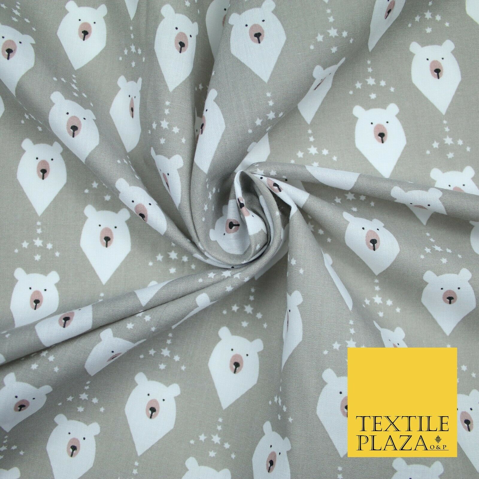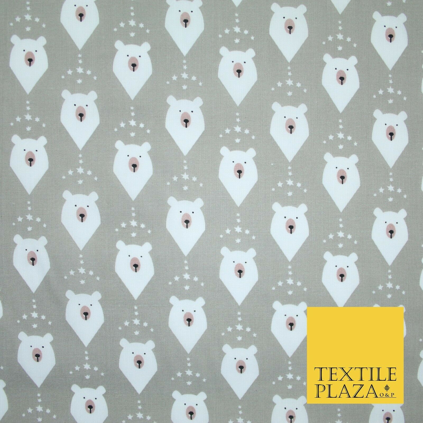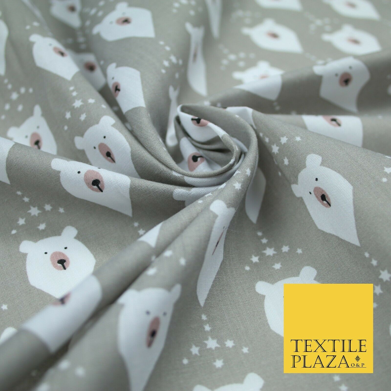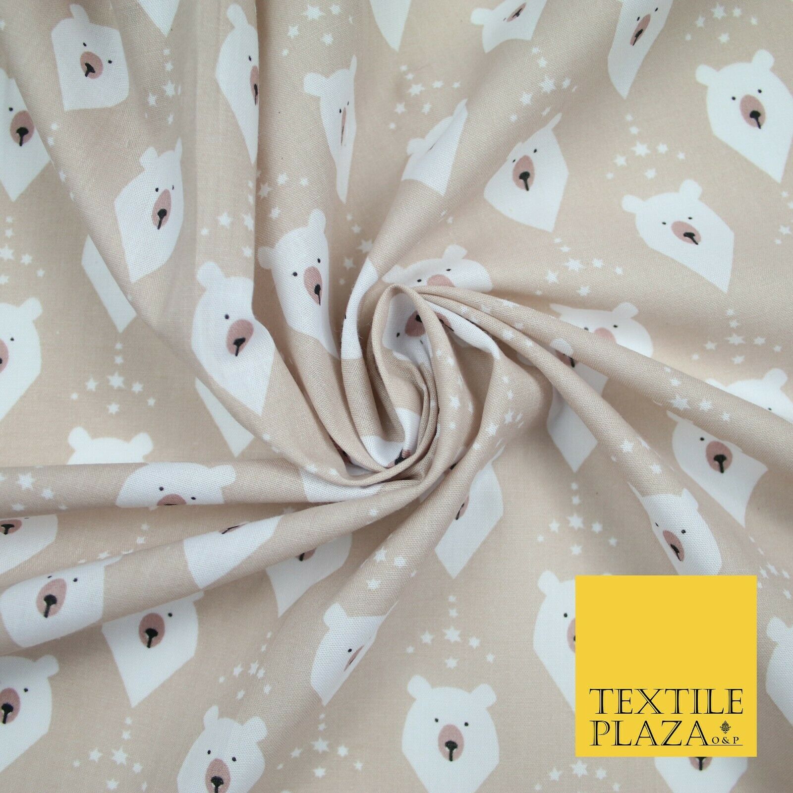Festive Christmas Polar Bear Novelty Printed Poly Cotton Fabric Polycotton 45"