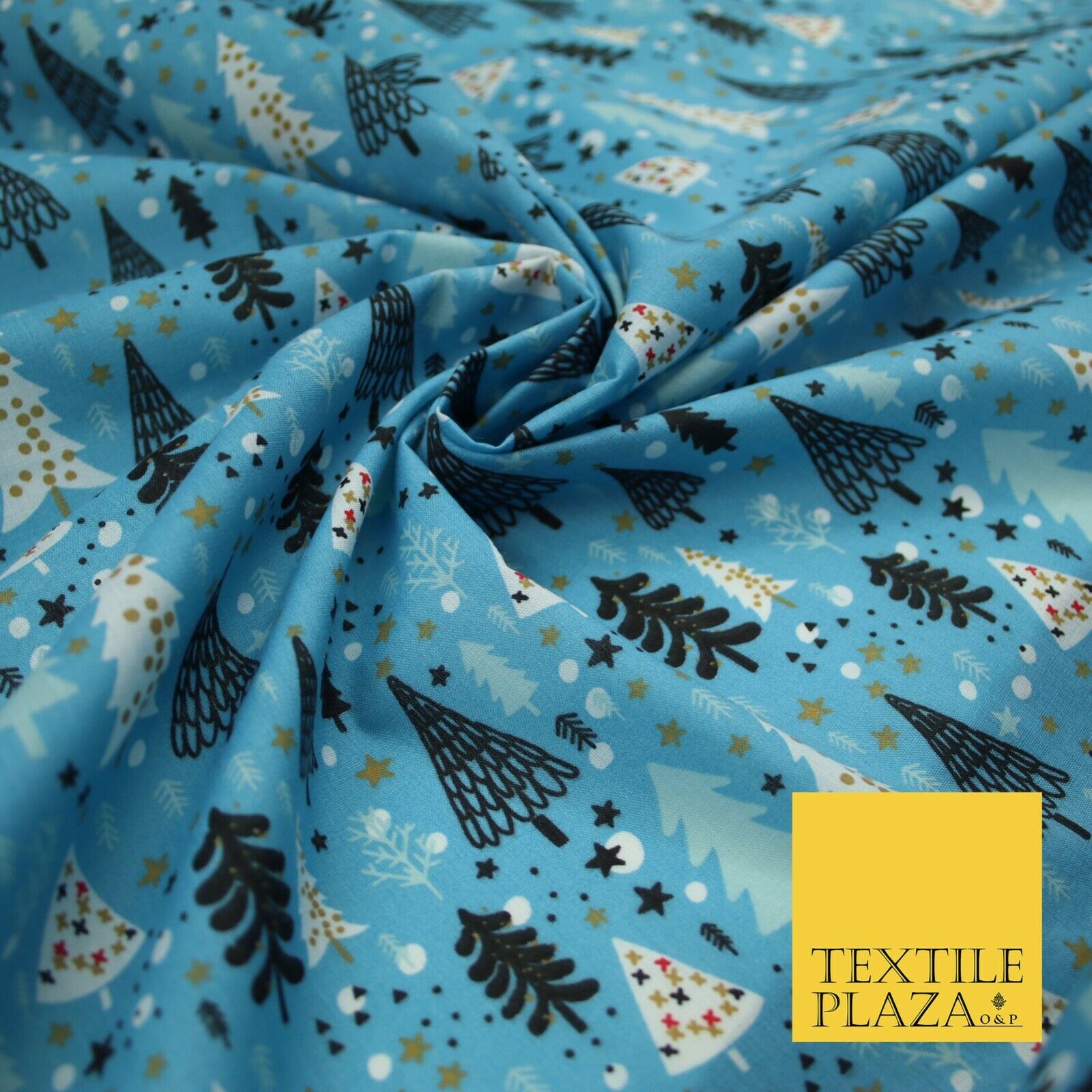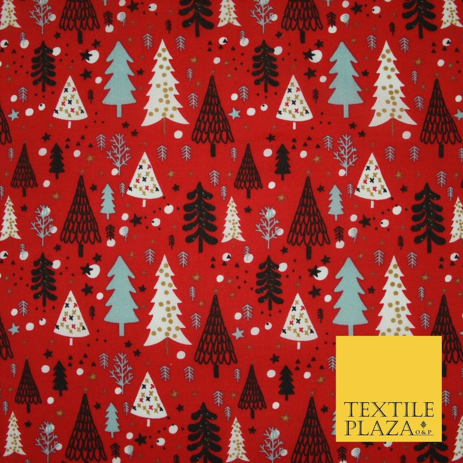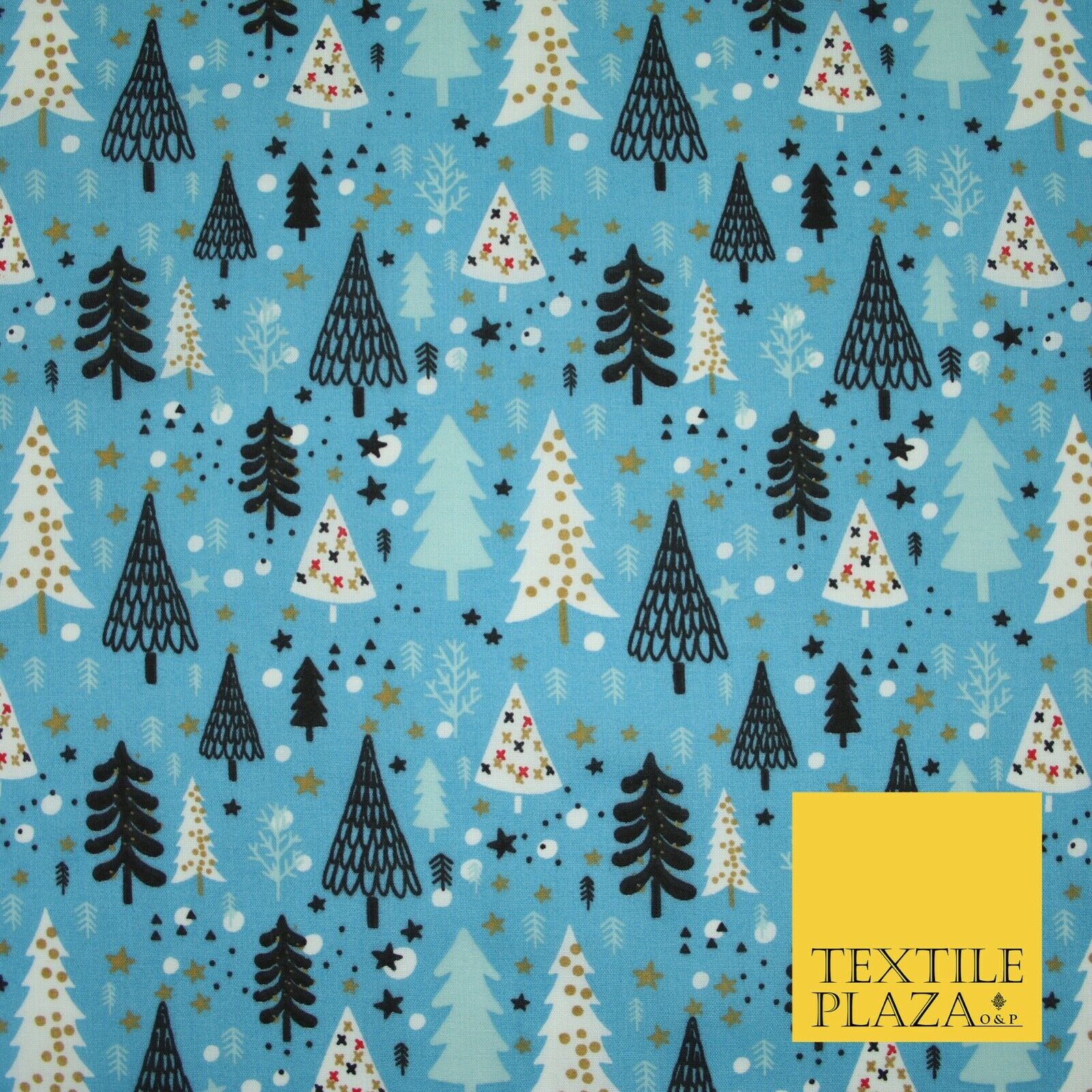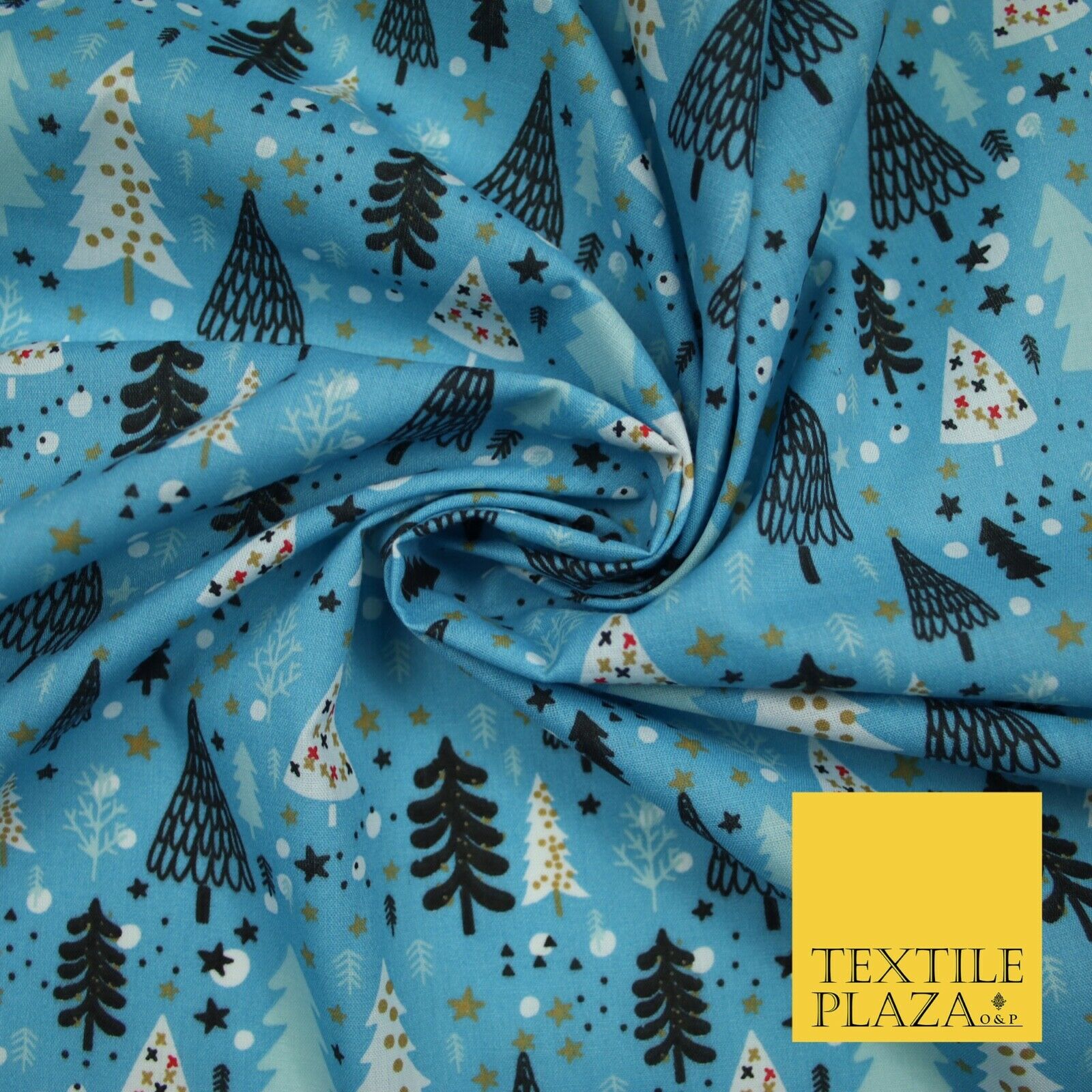 Festive Christmas Trees Stars Winter Printed Poly Cotton Fabric Polycotton 45"