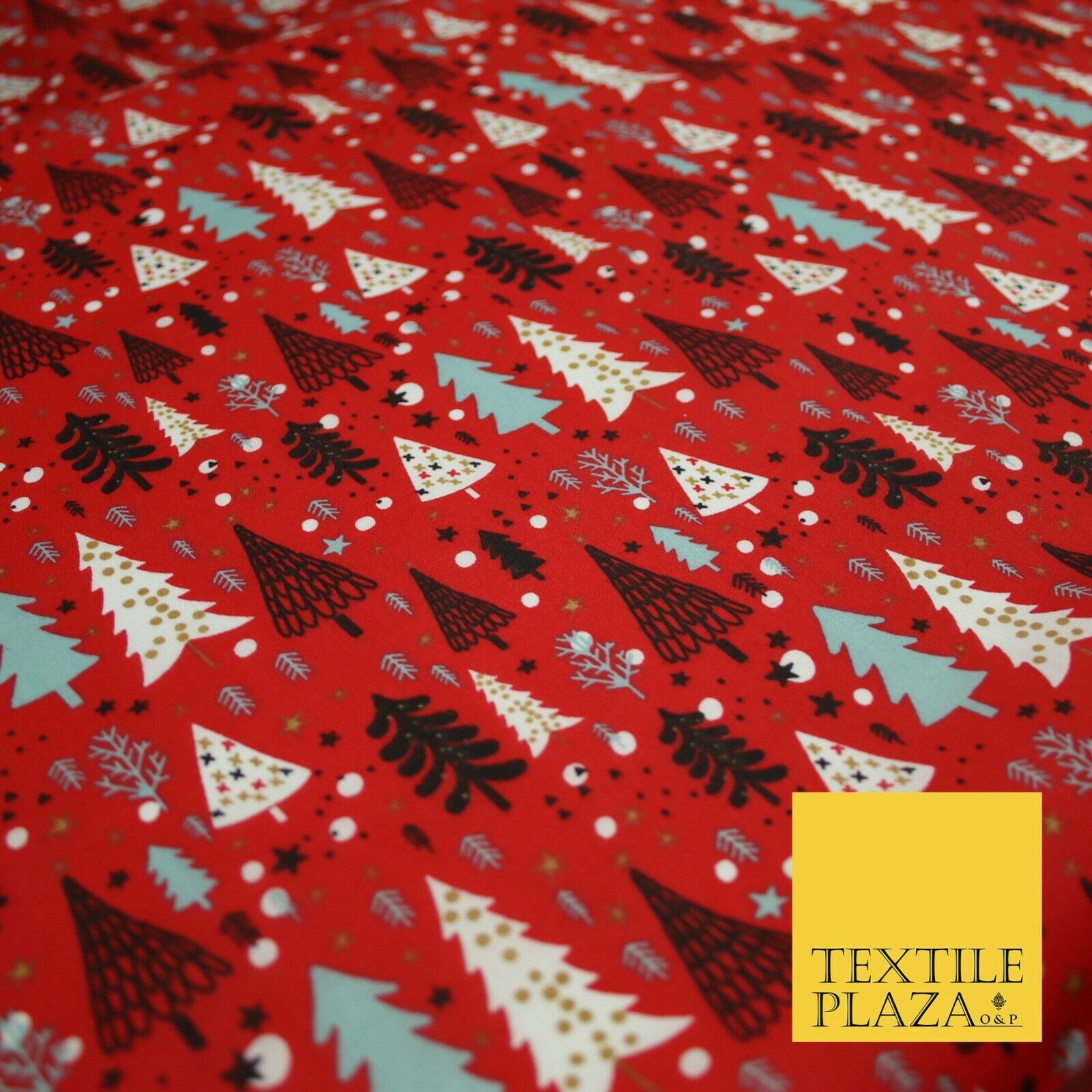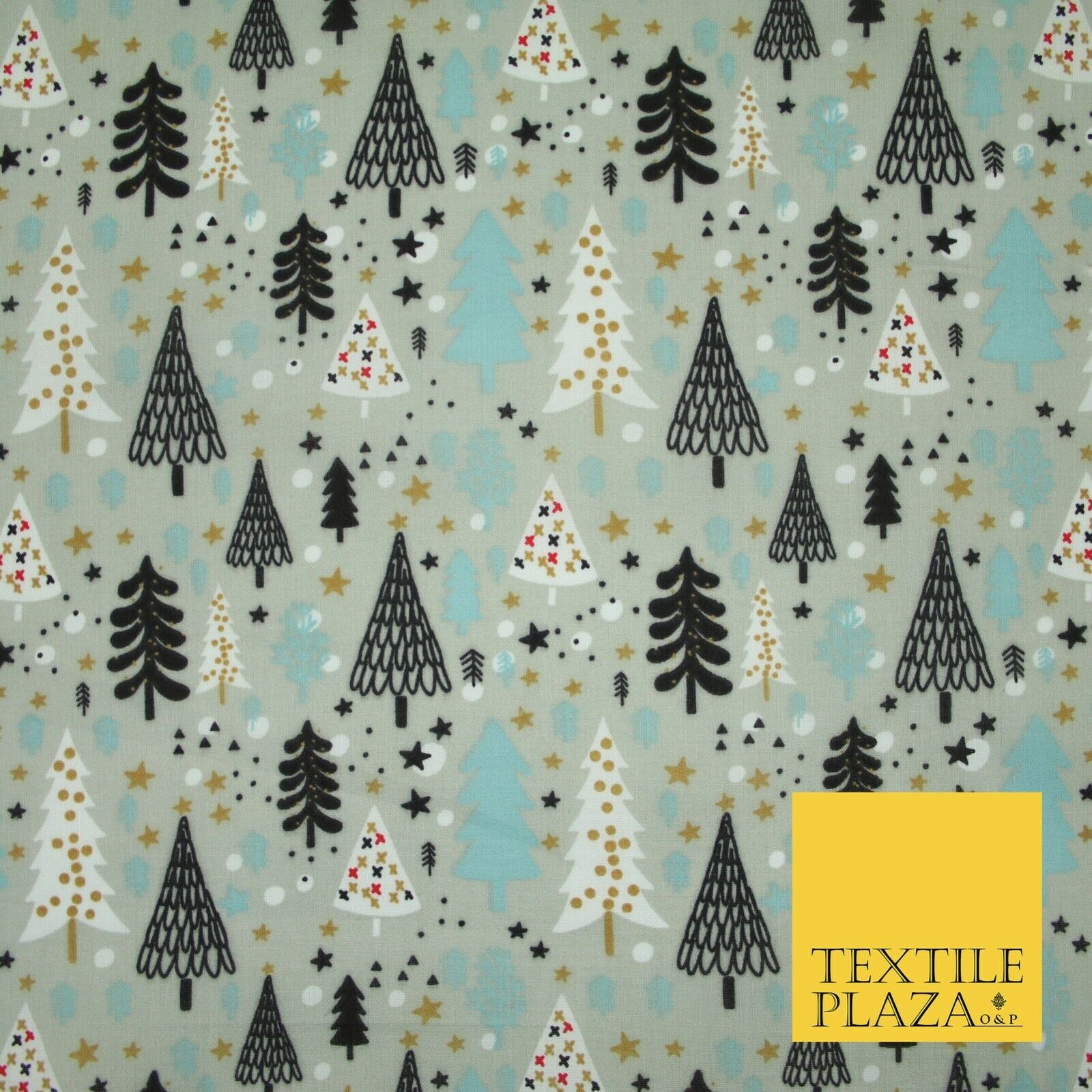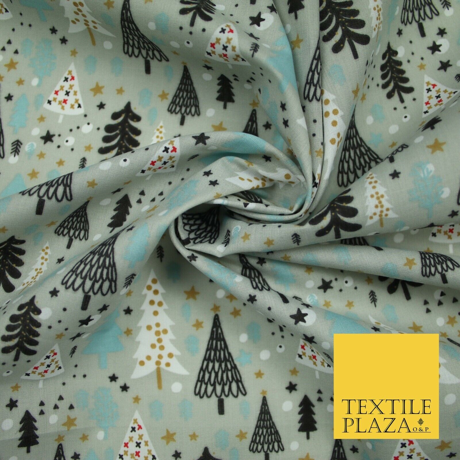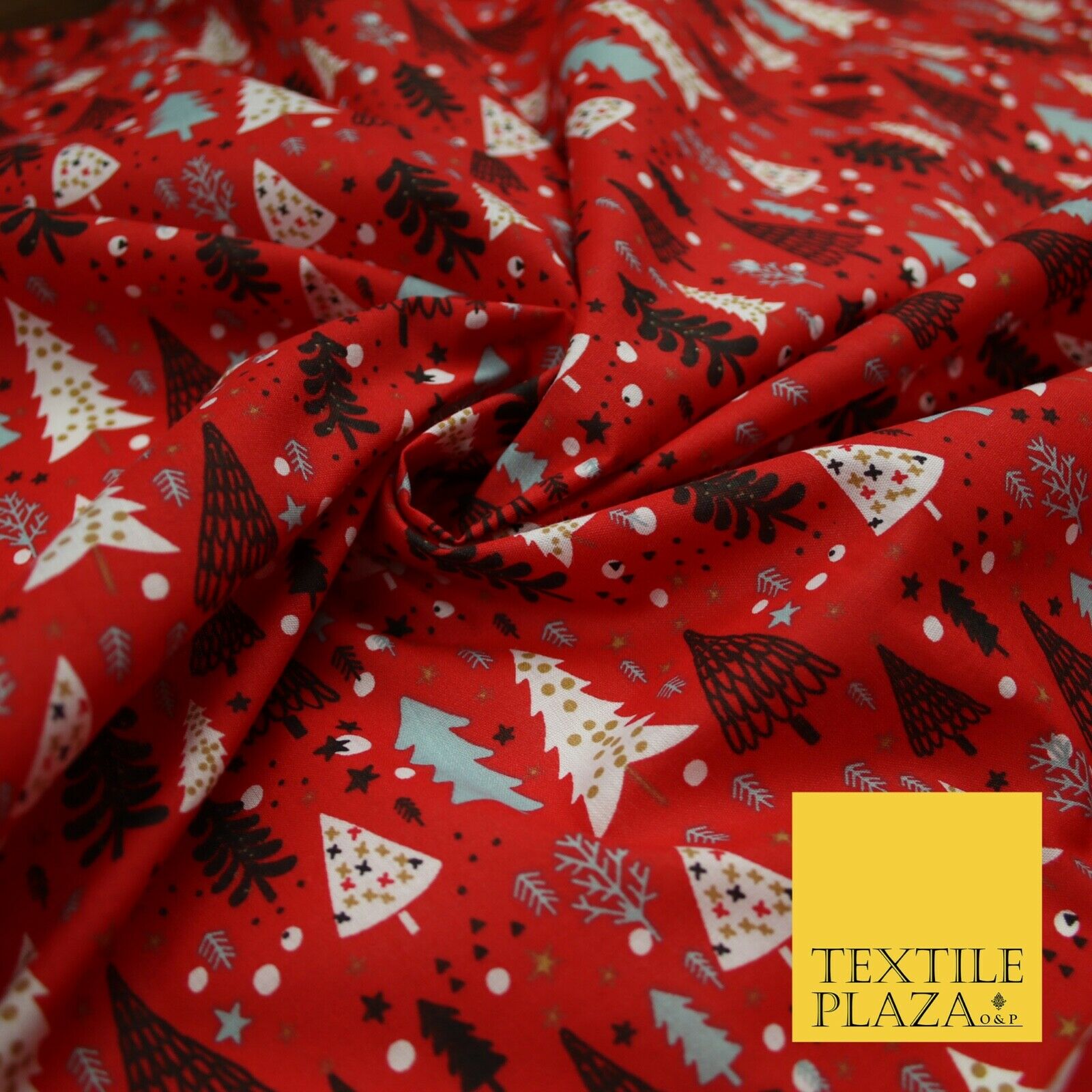 Festive Christmas Trees Stars Winter Printed Poly Cotton Fabric Polycotton 45"