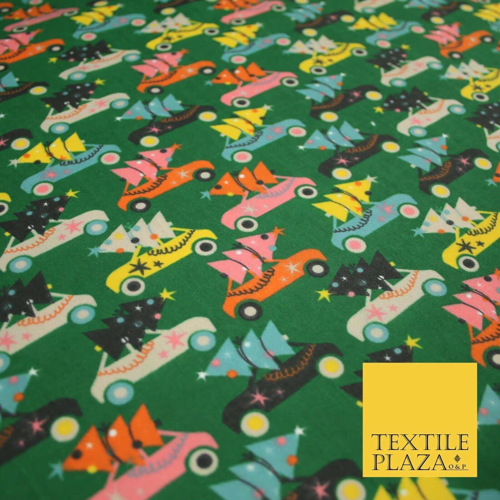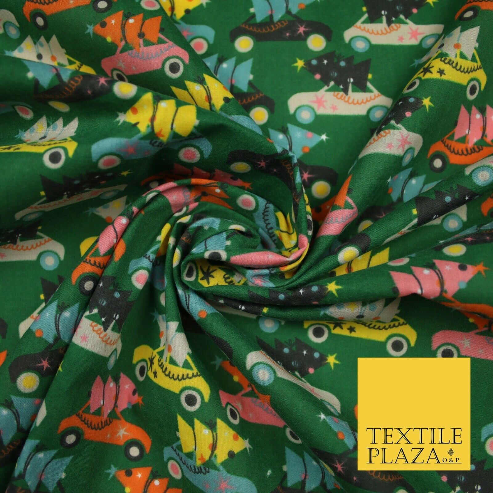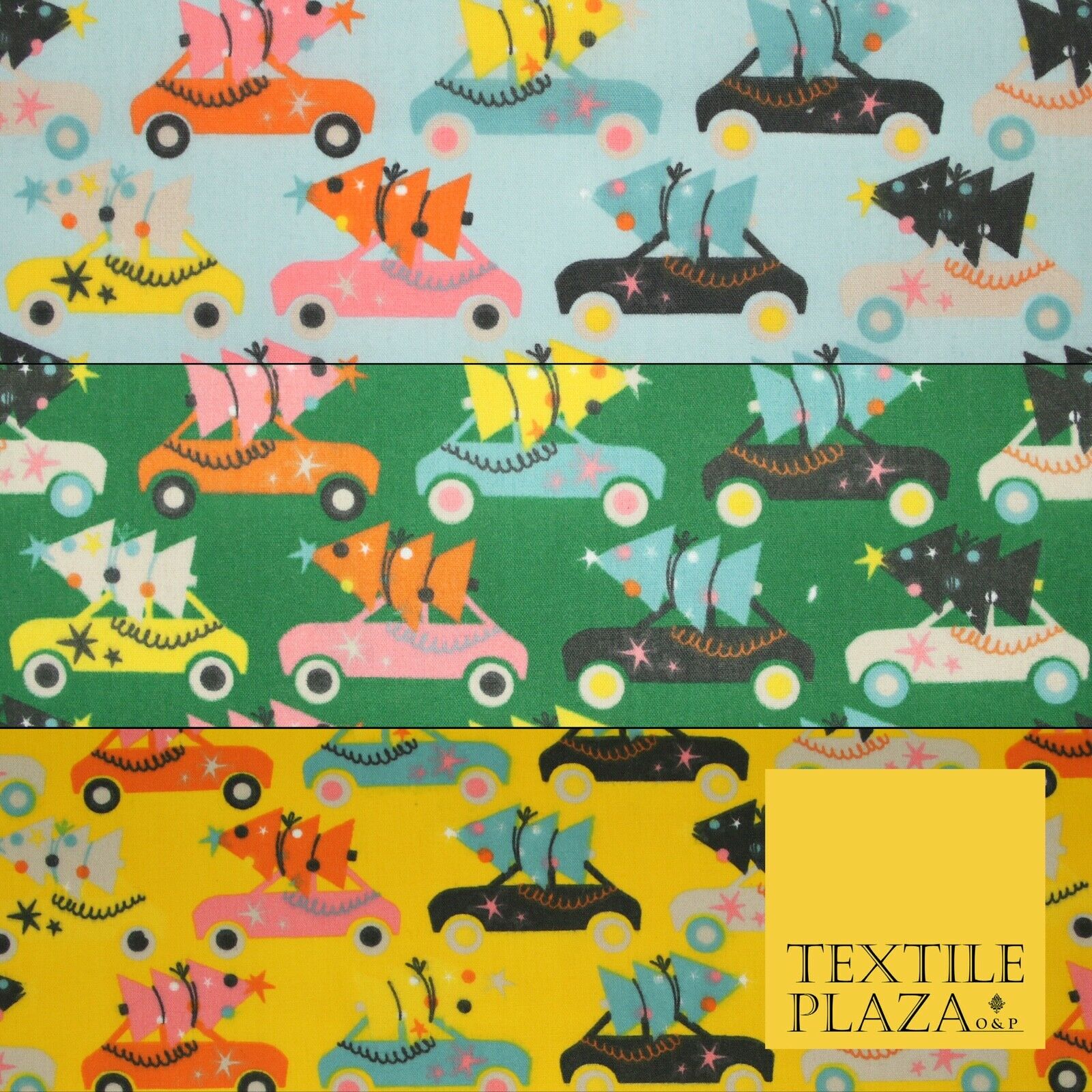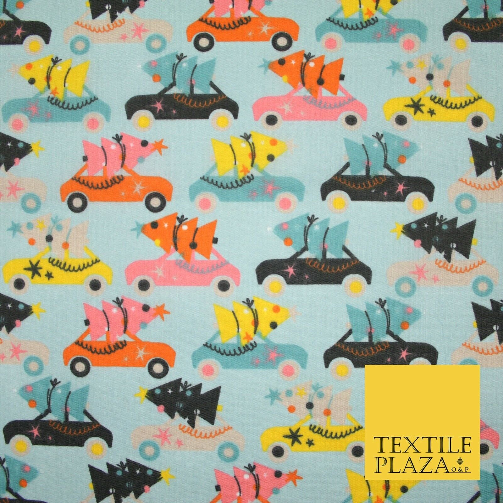 Festive Driving Car Christmas Trees Printed Poly Cotton Fabric Polycotton 45"