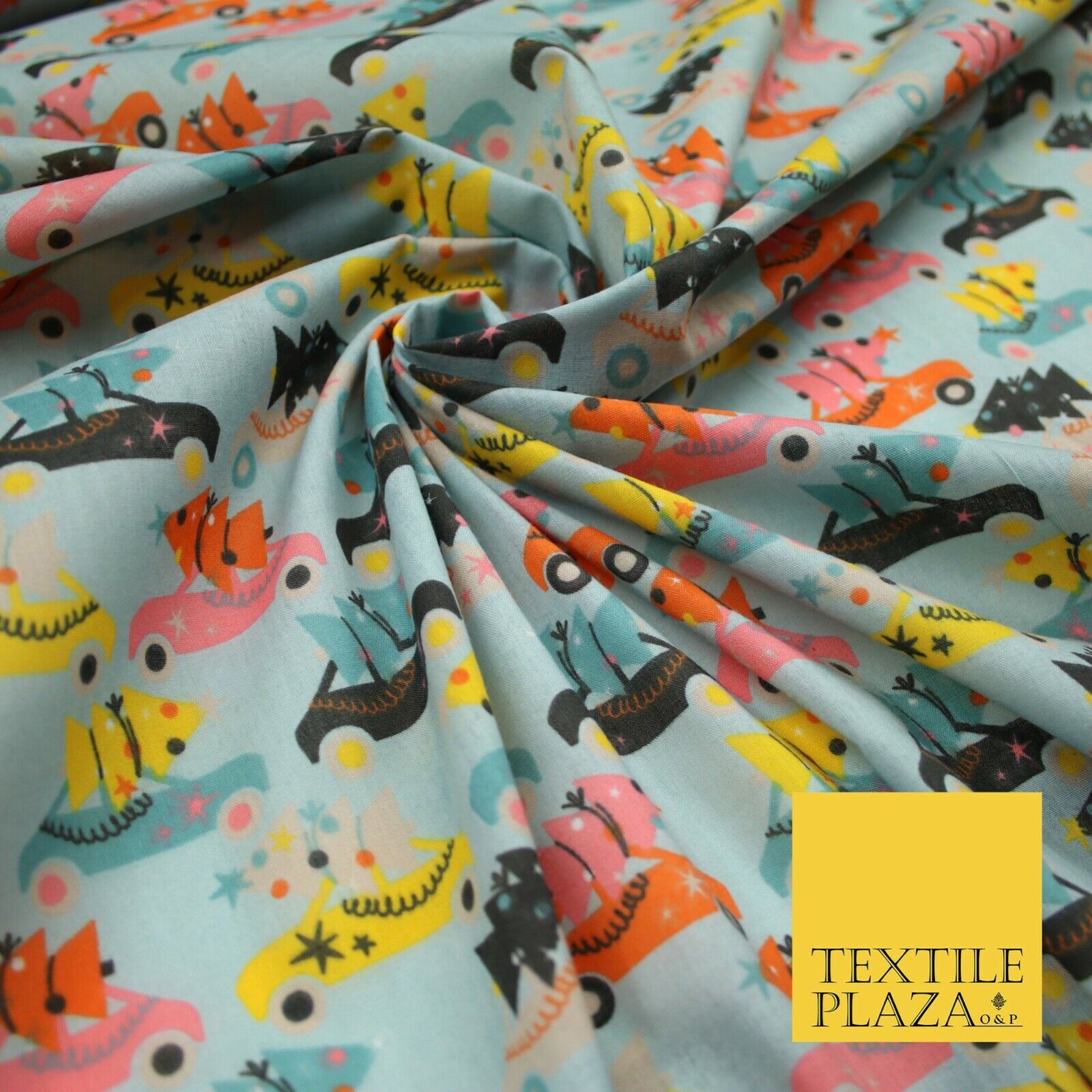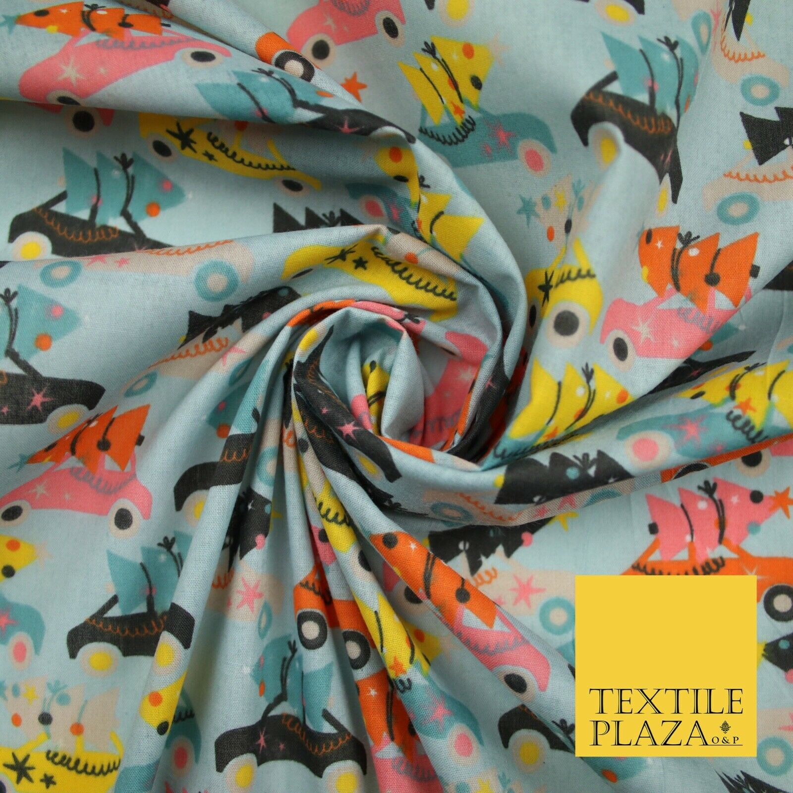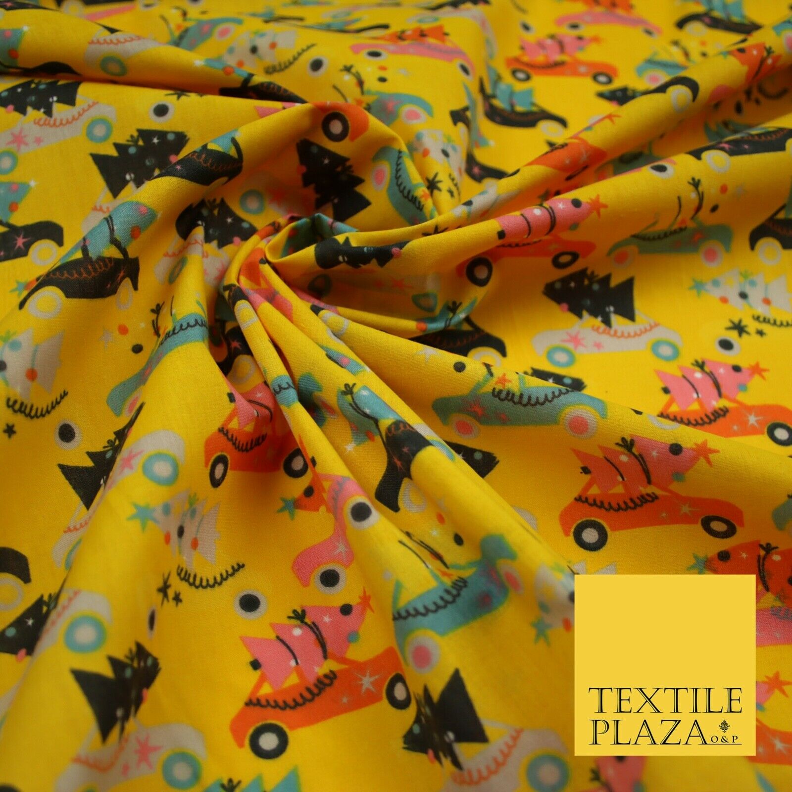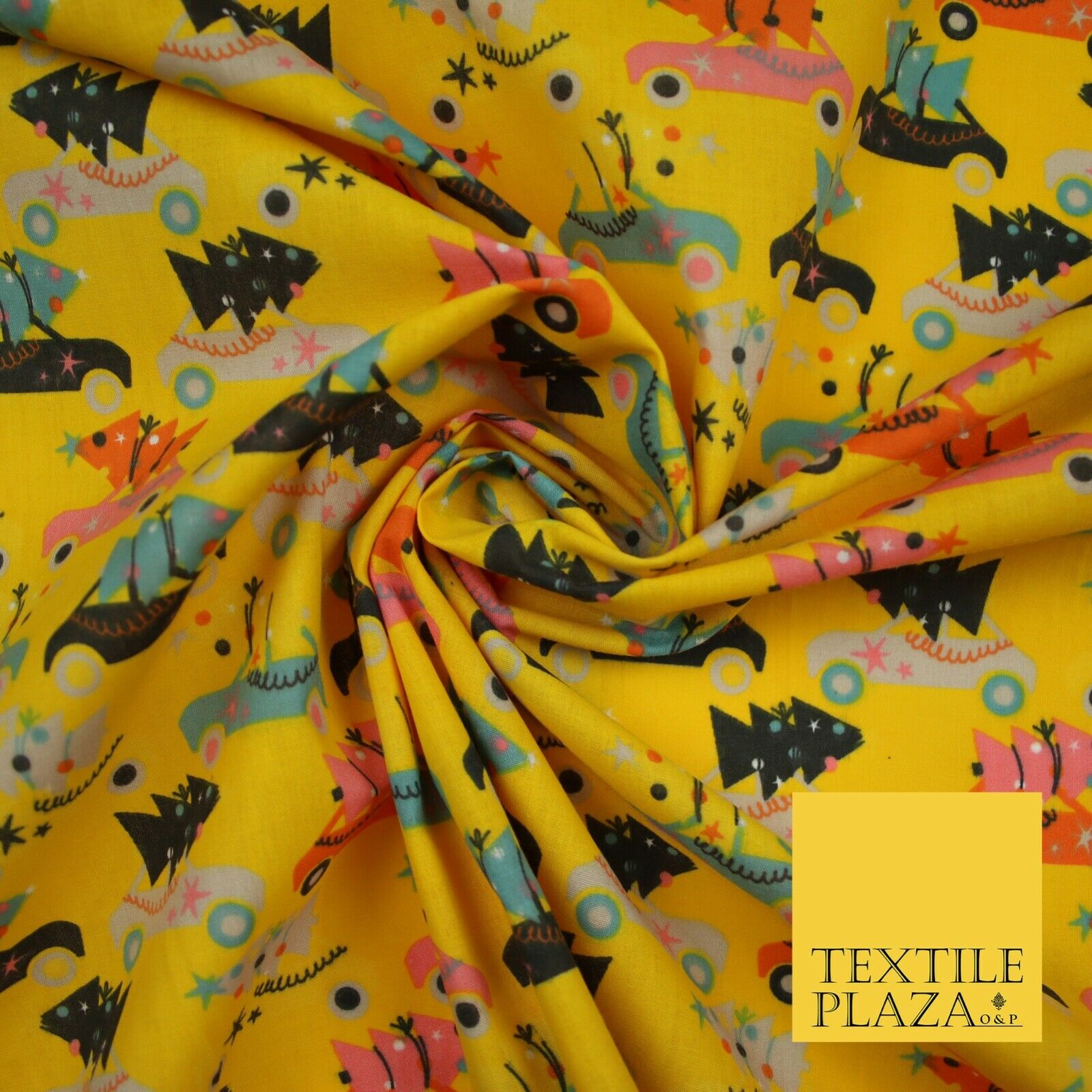 Festive Driving Car Christmas Trees Printed Poly Cotton Fabric Polycotton 45"