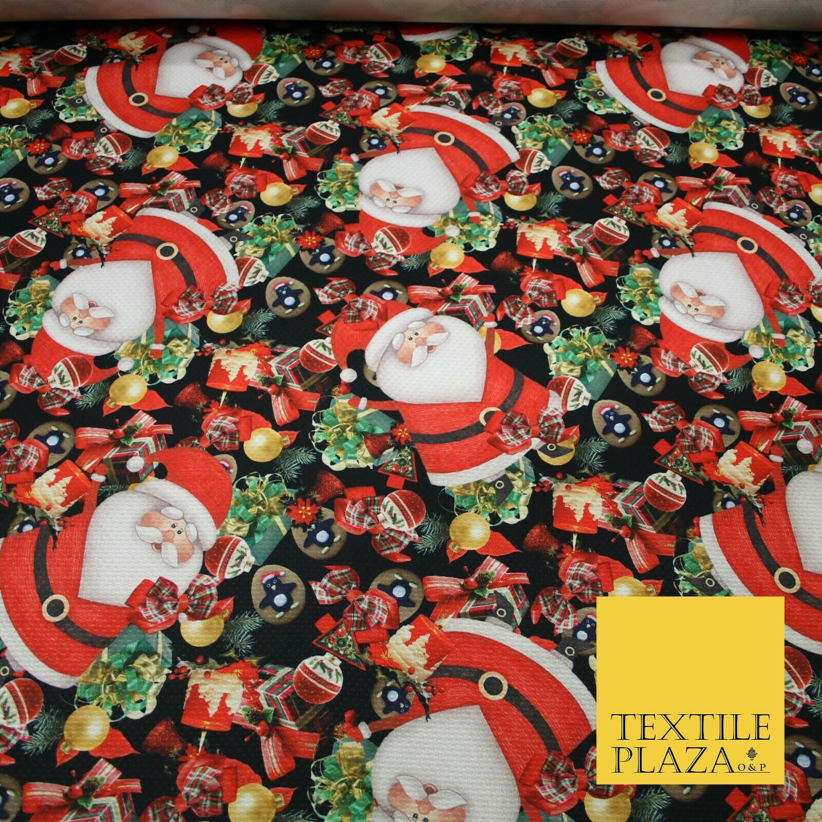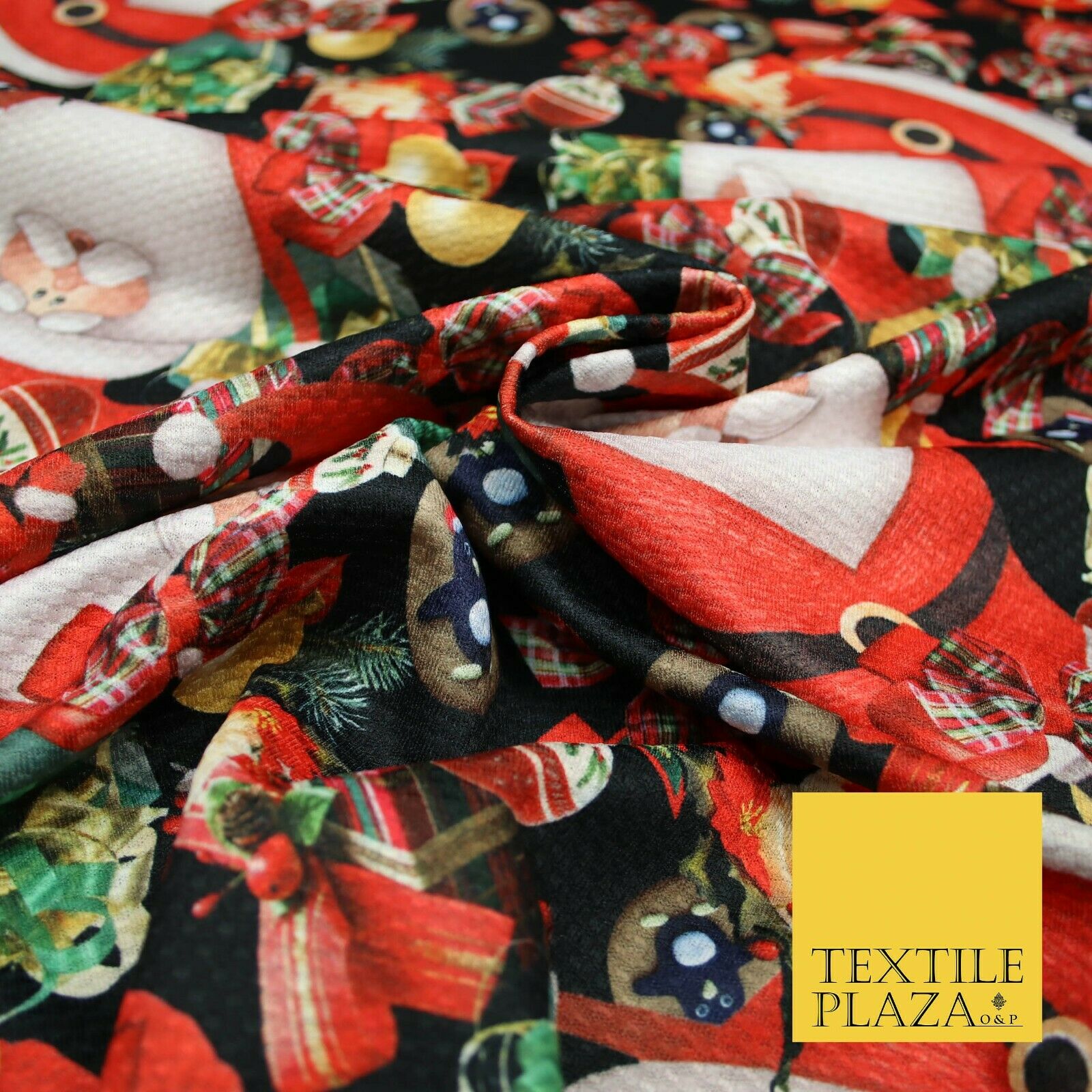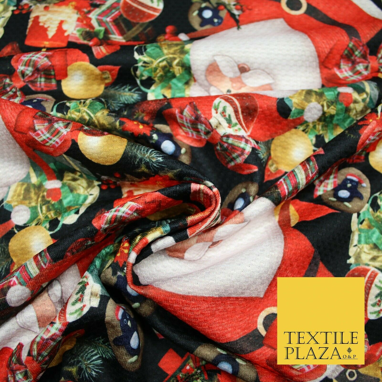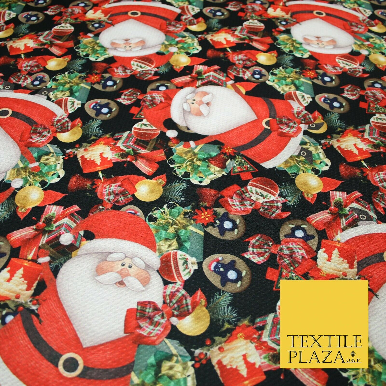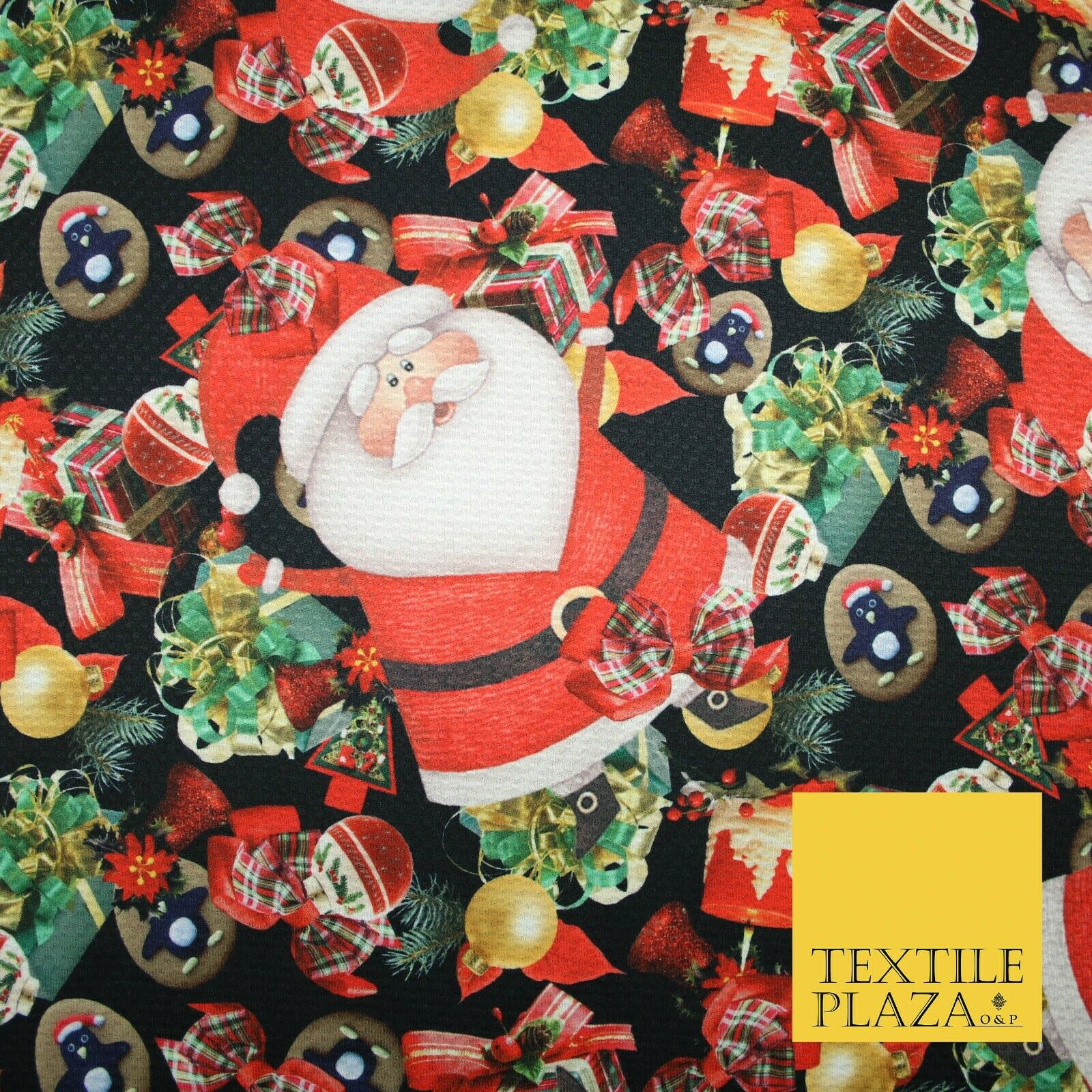 Festive Santa Claus Gifts Presents Penguins Christmas Waffle Jersey Fabric 5003