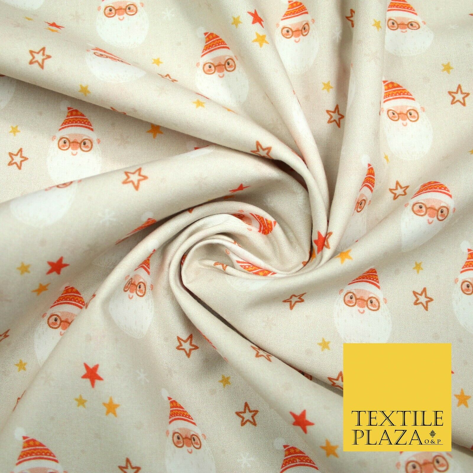 Festive Santa Claus Stars Christmas Digital Print 100% Cotton Fabric 58" 4938