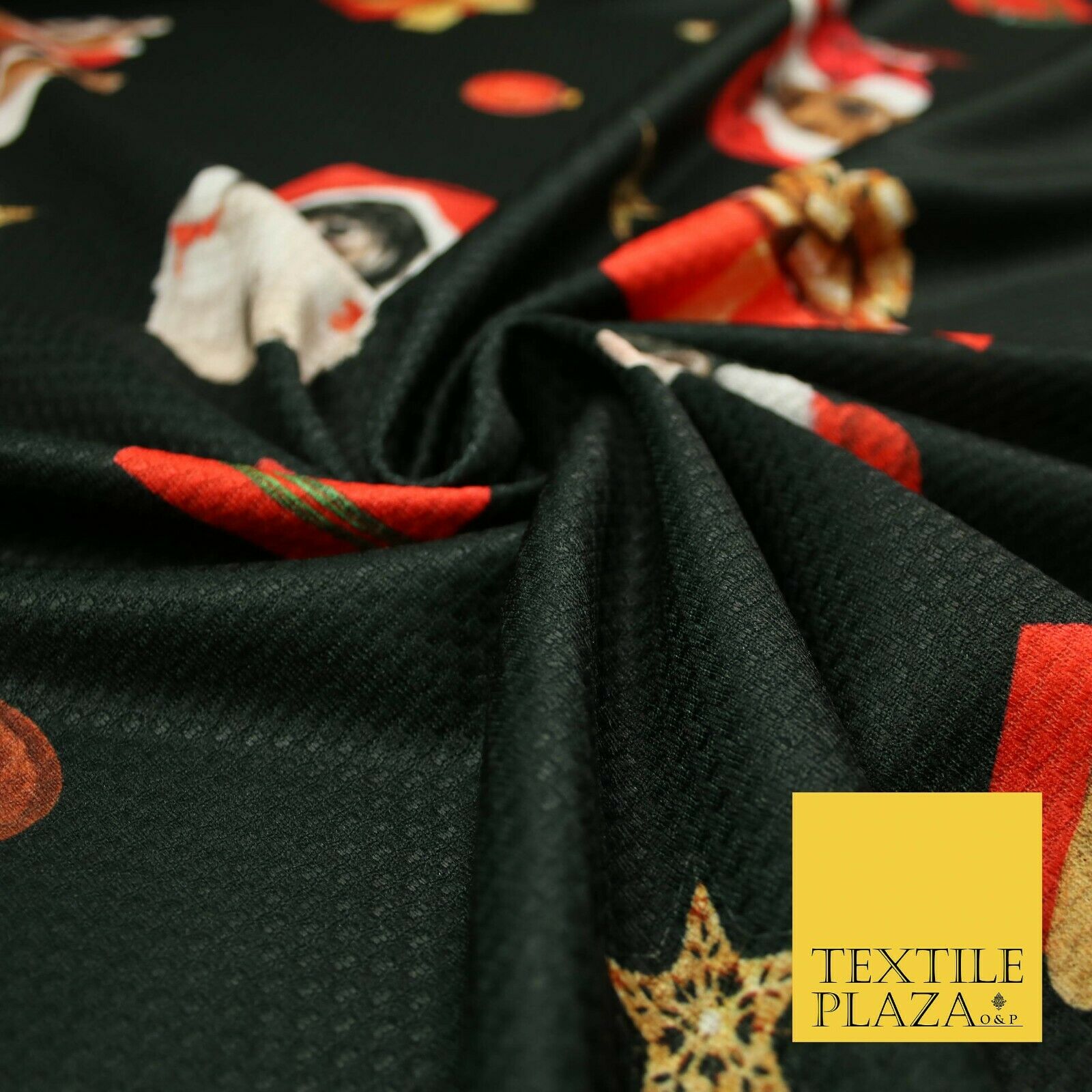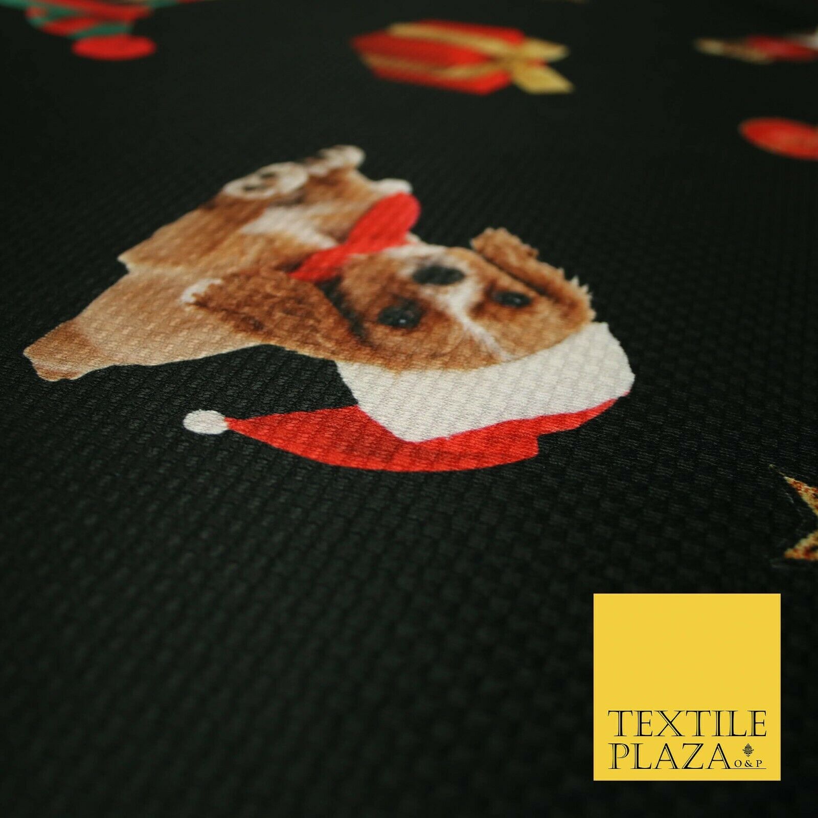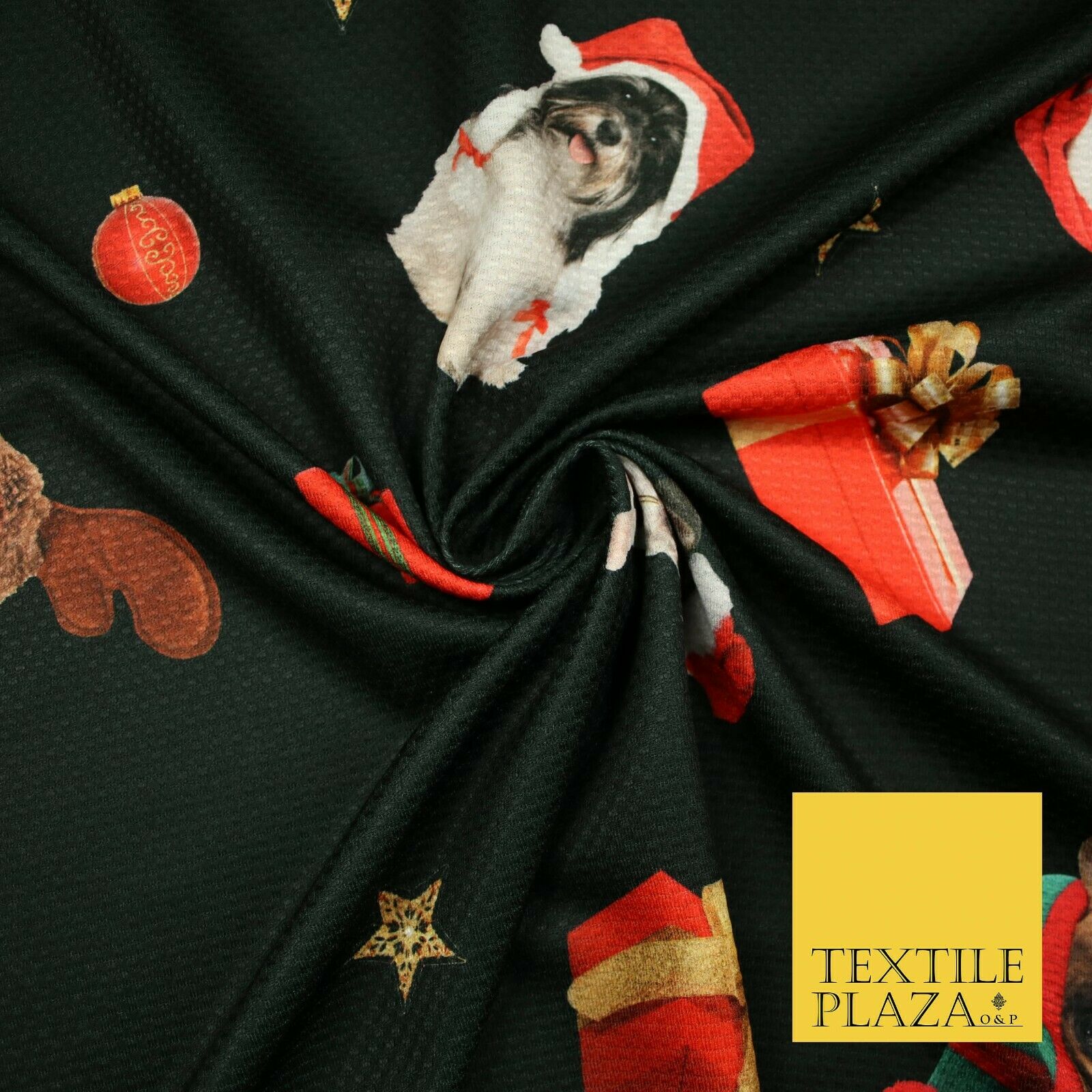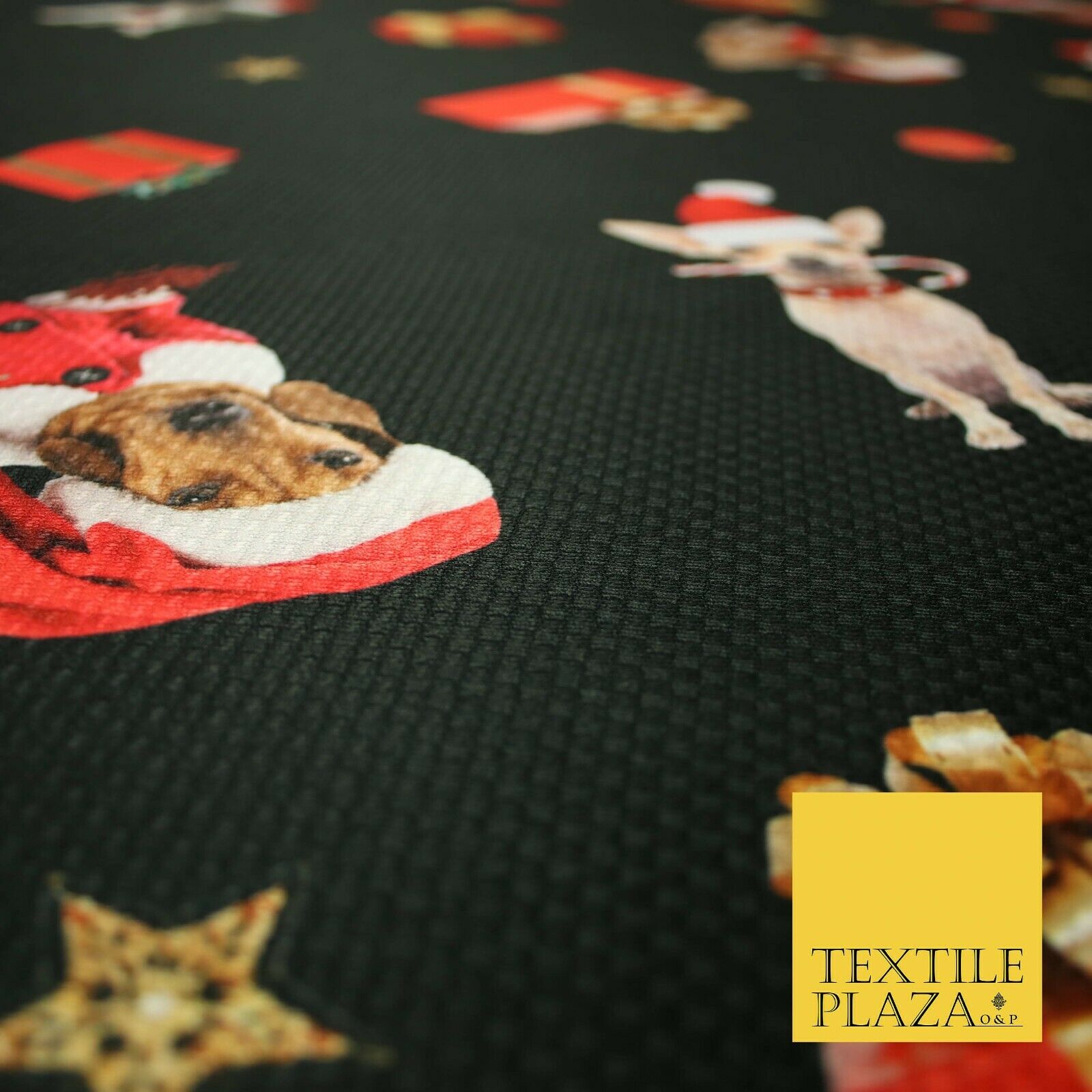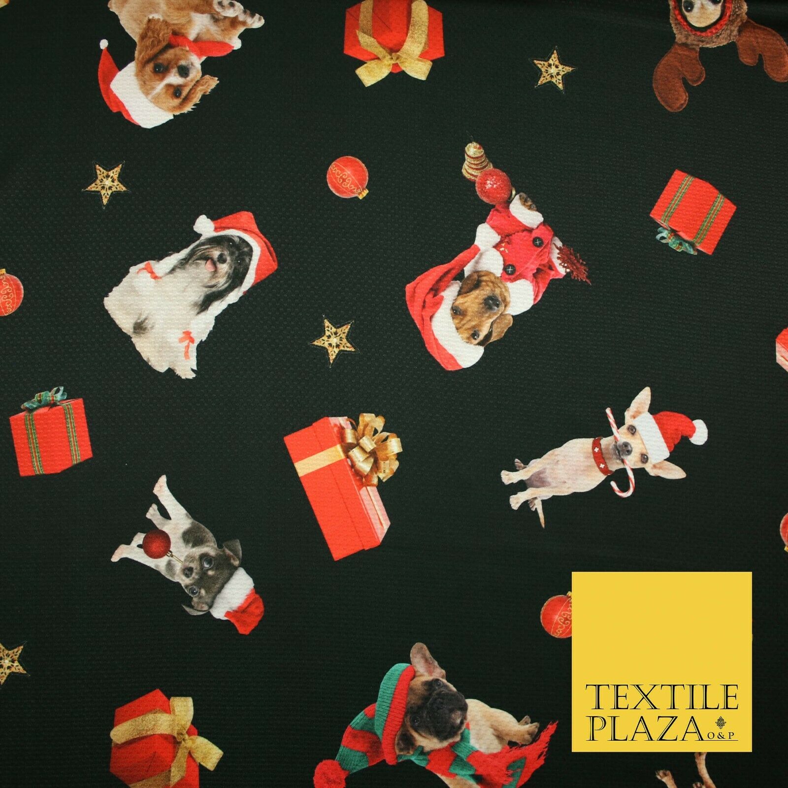 Festive Spaniel Pug Mix Dogs Gifts Stars Christmas Waffle Jersey Fabric 58" 5049