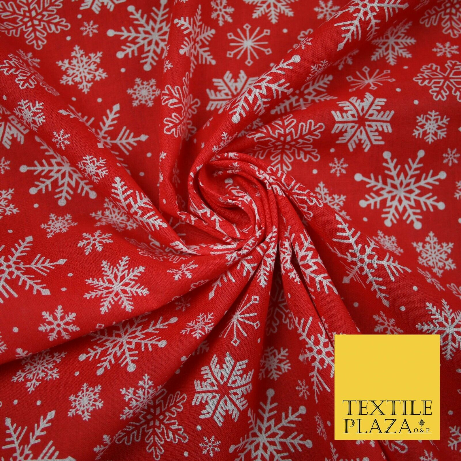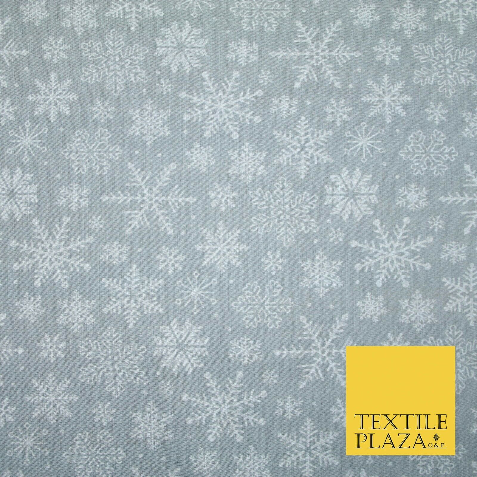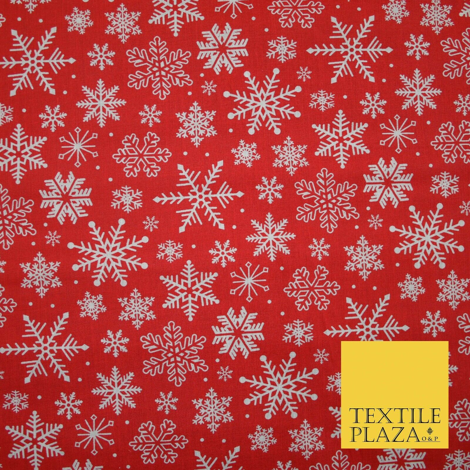 Festive White Snowflakes Christmas Printed Poly Cotton Fabric Polycotton 45"
