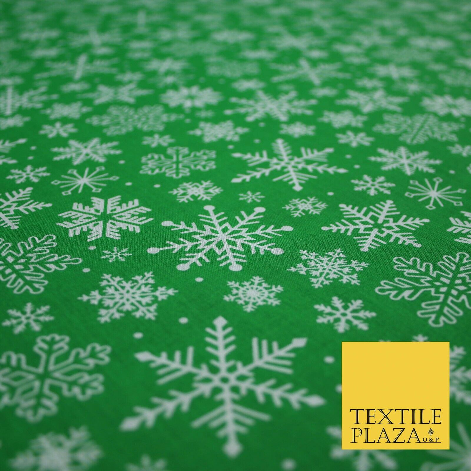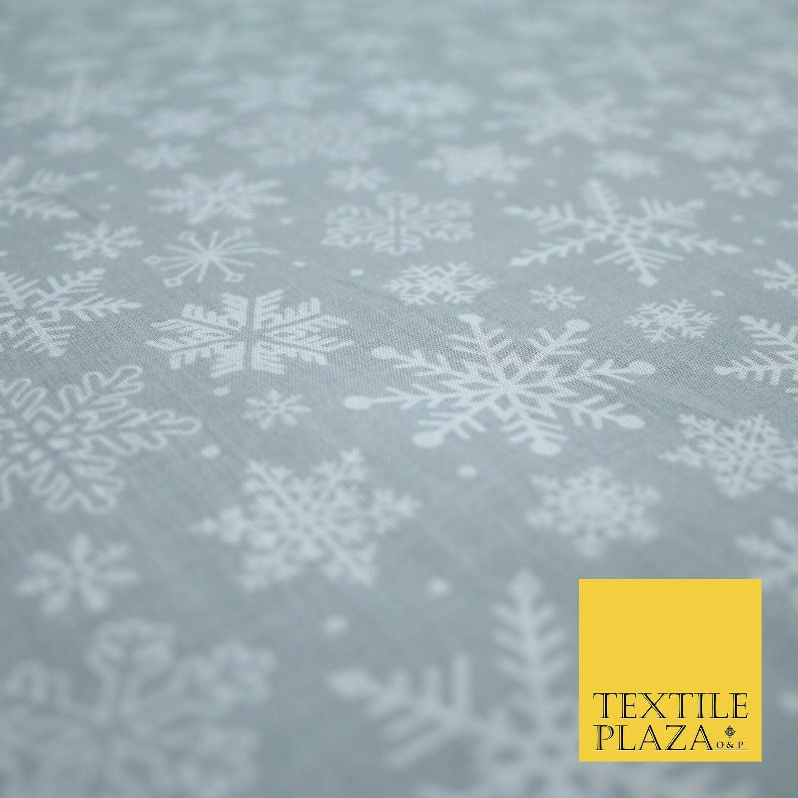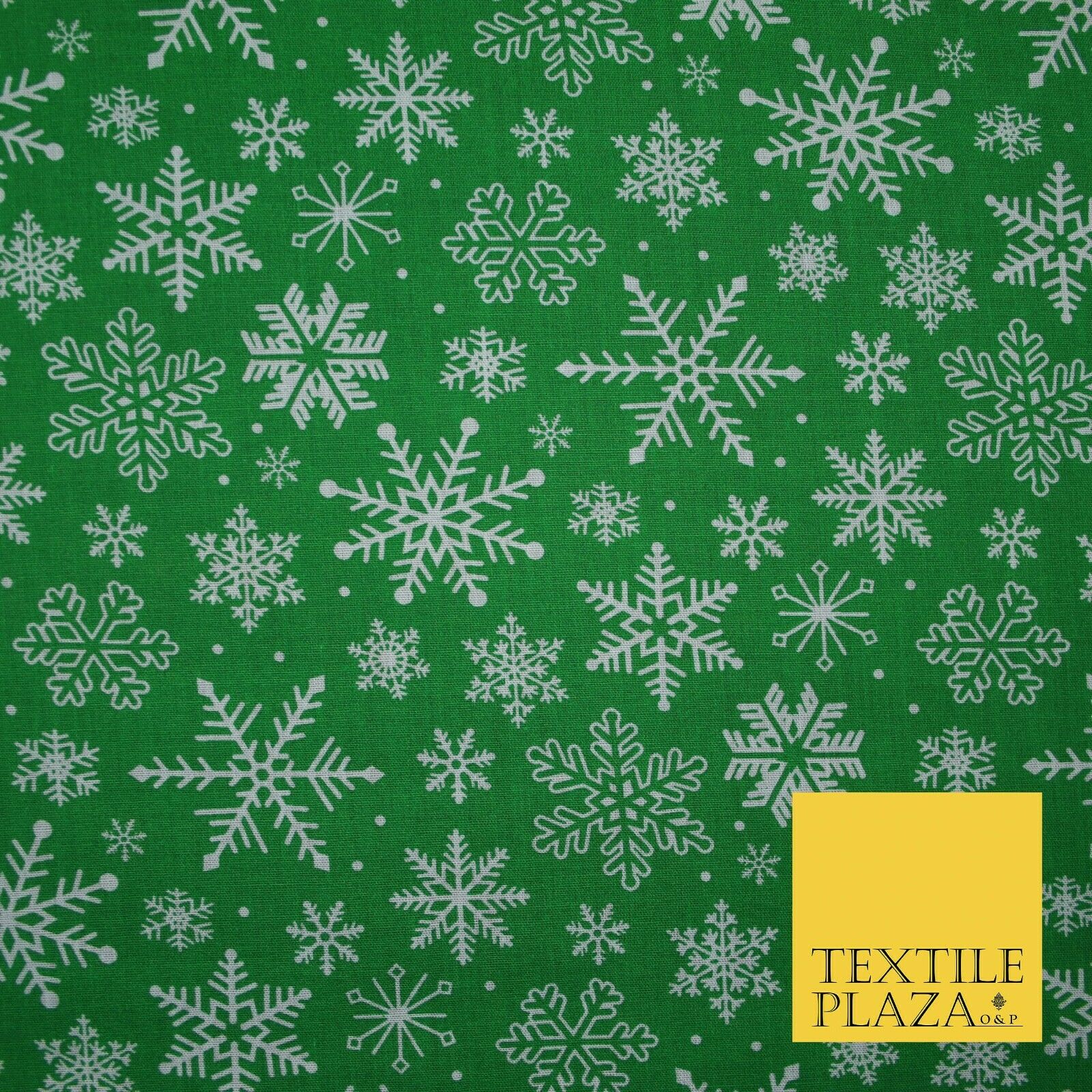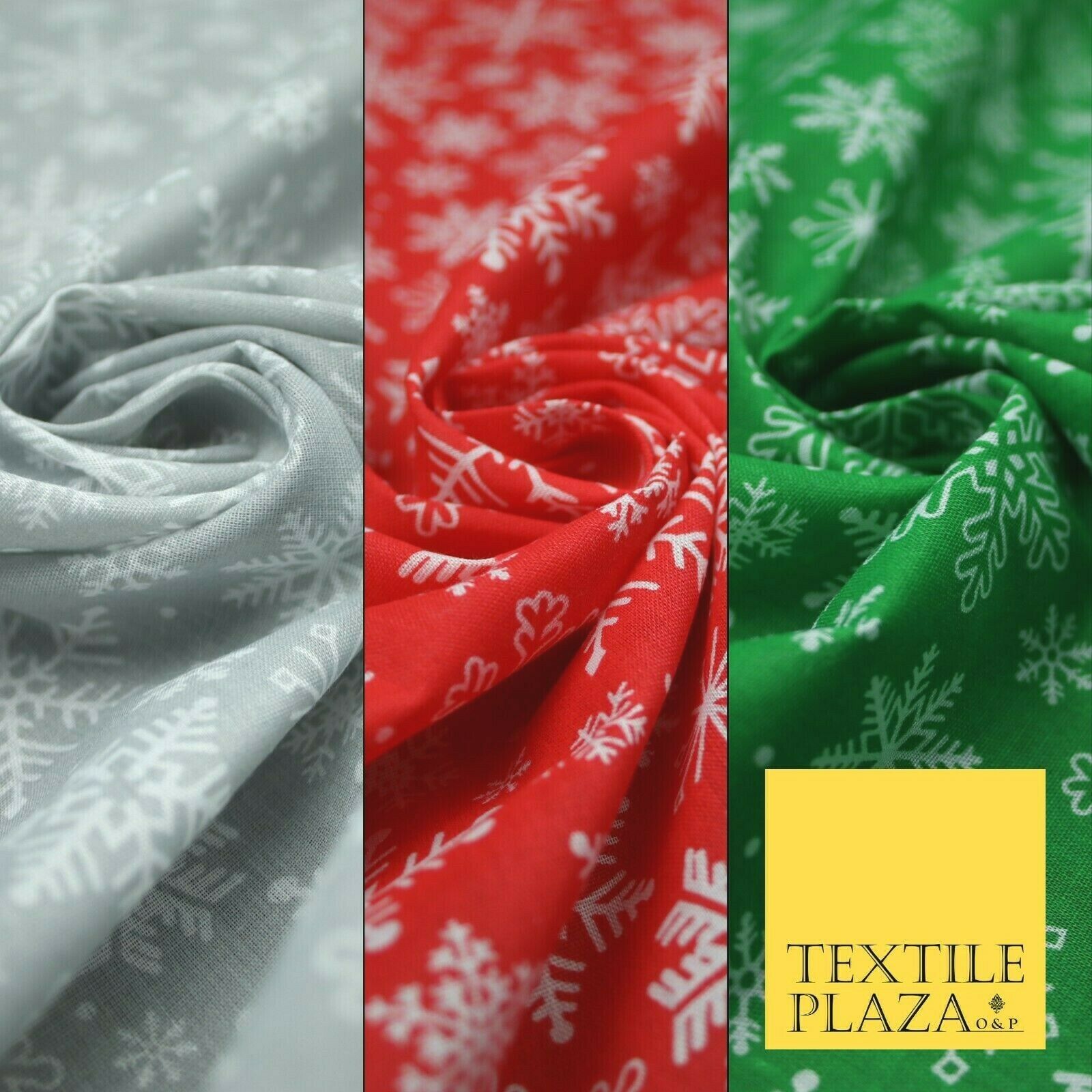 Festive White Snowflakes Christmas Printed Poly Cotton Fabric Polycotton 45"