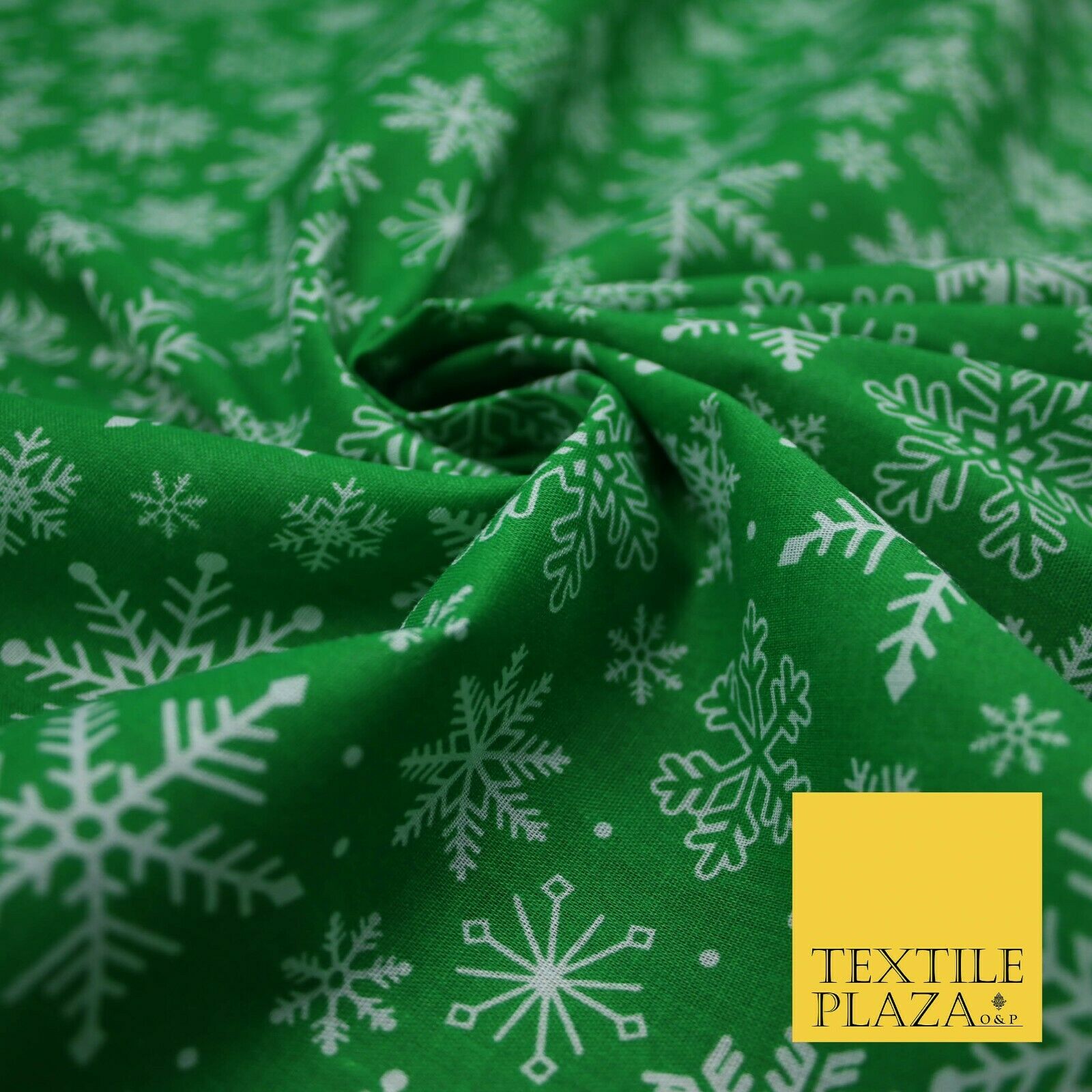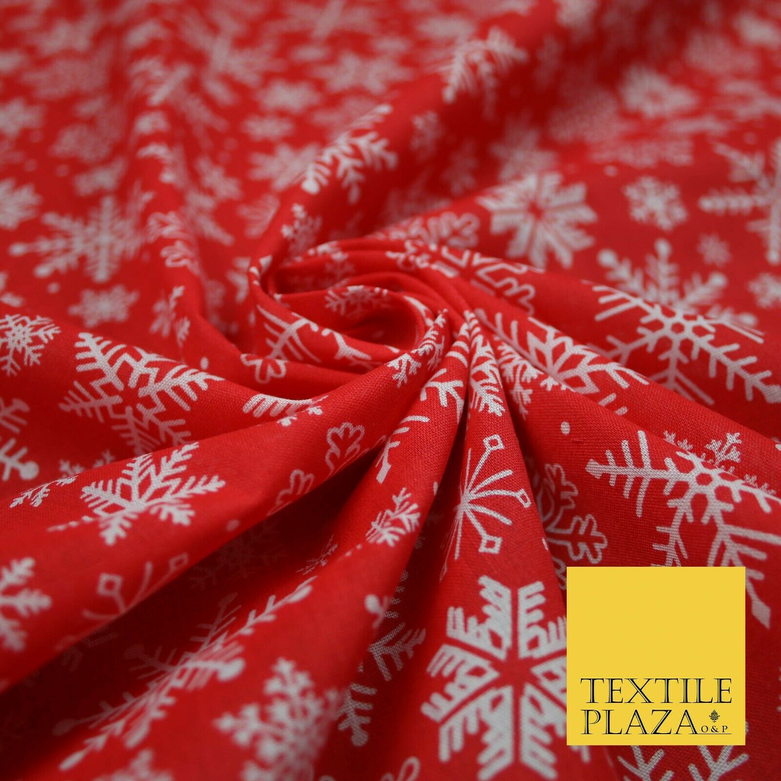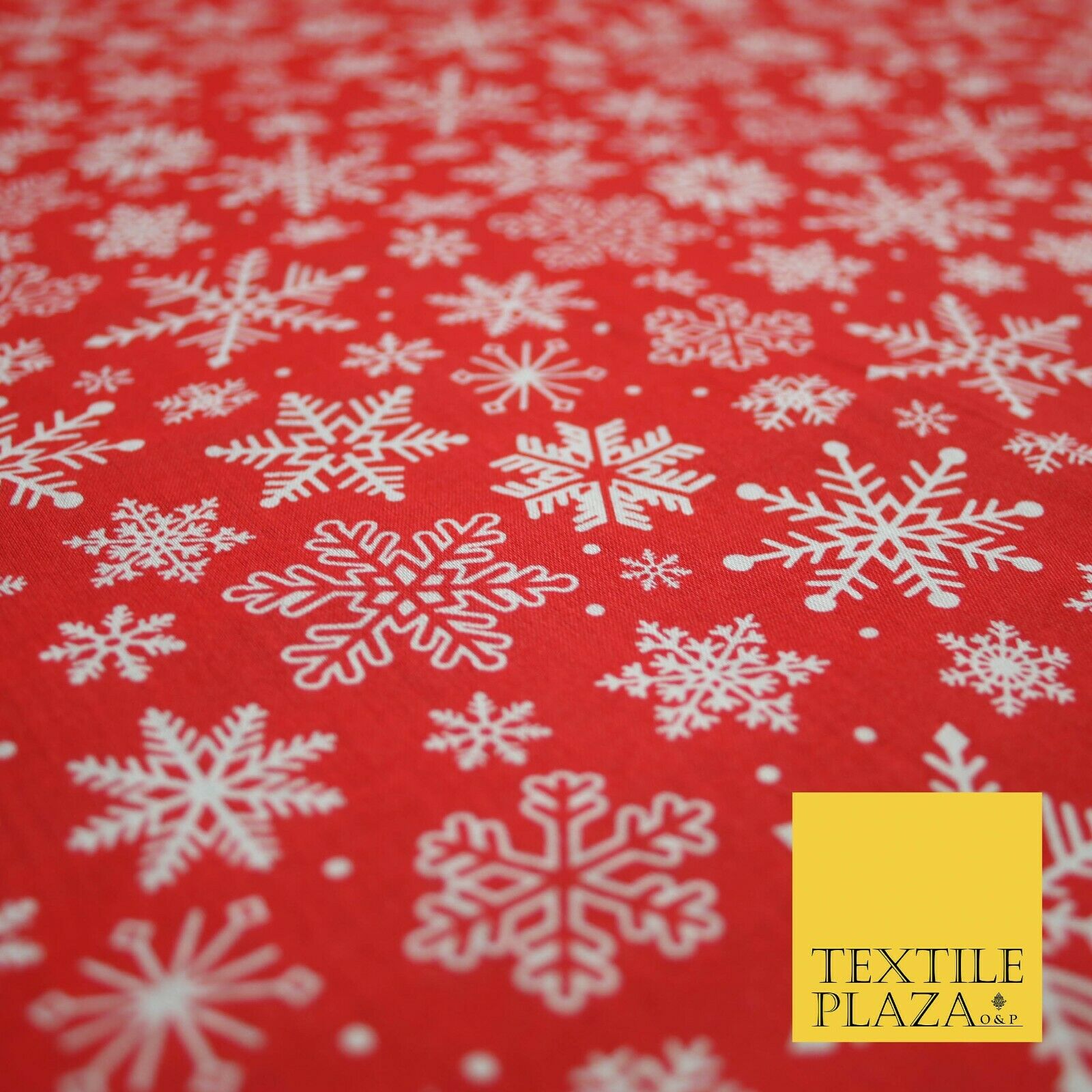 Festive White Snowflakes Christmas Printed Poly Cotton Fabric Polycotton 45"