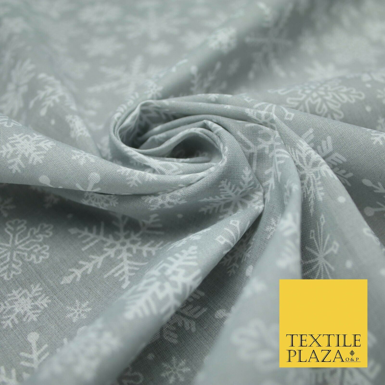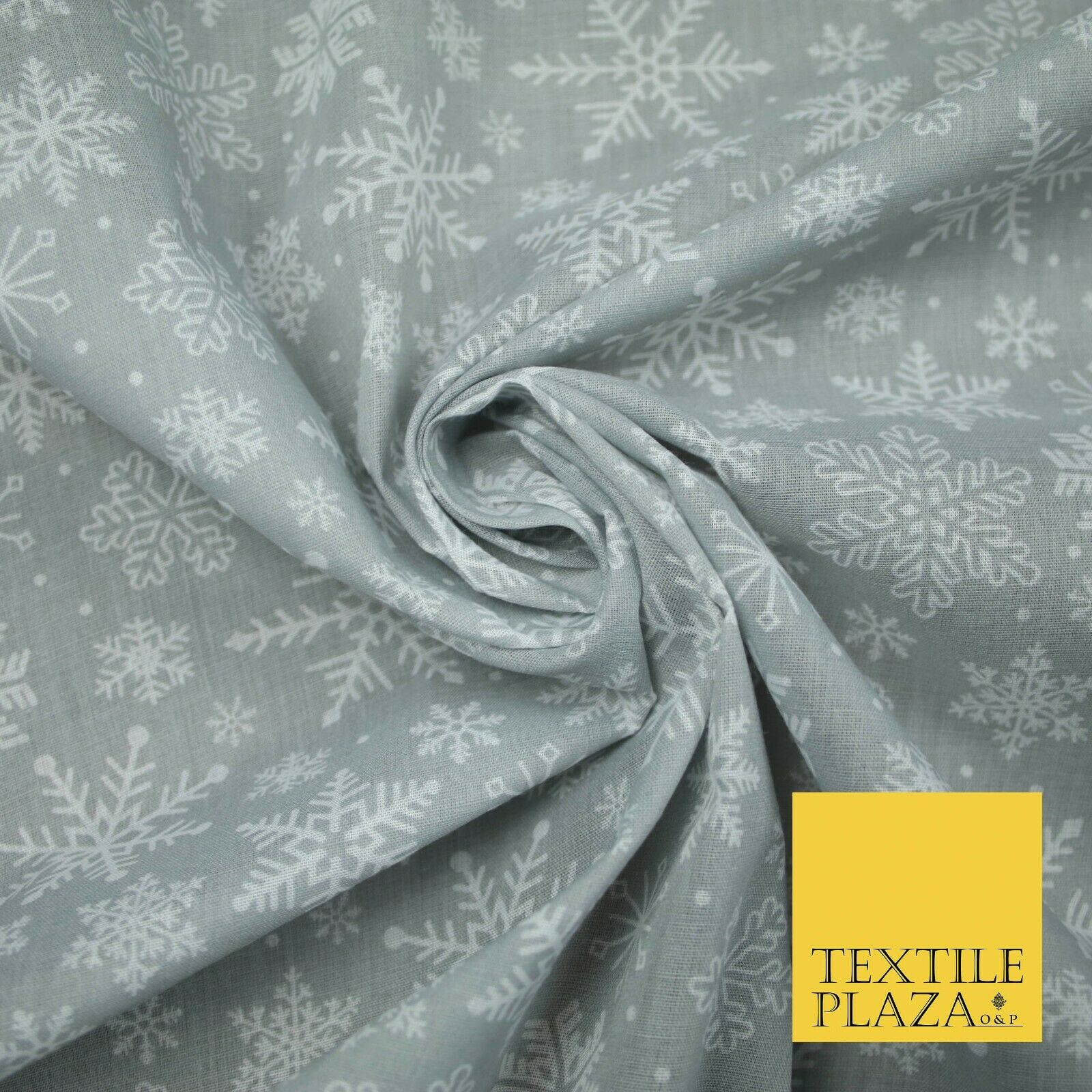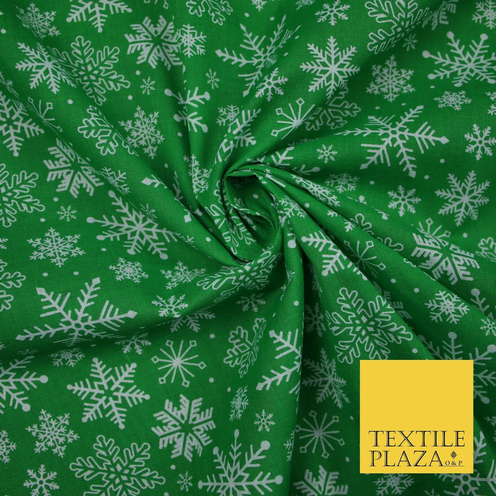Festive White Snowflakes Christmas Printed Poly Cotton Fabric Polycotton 45"