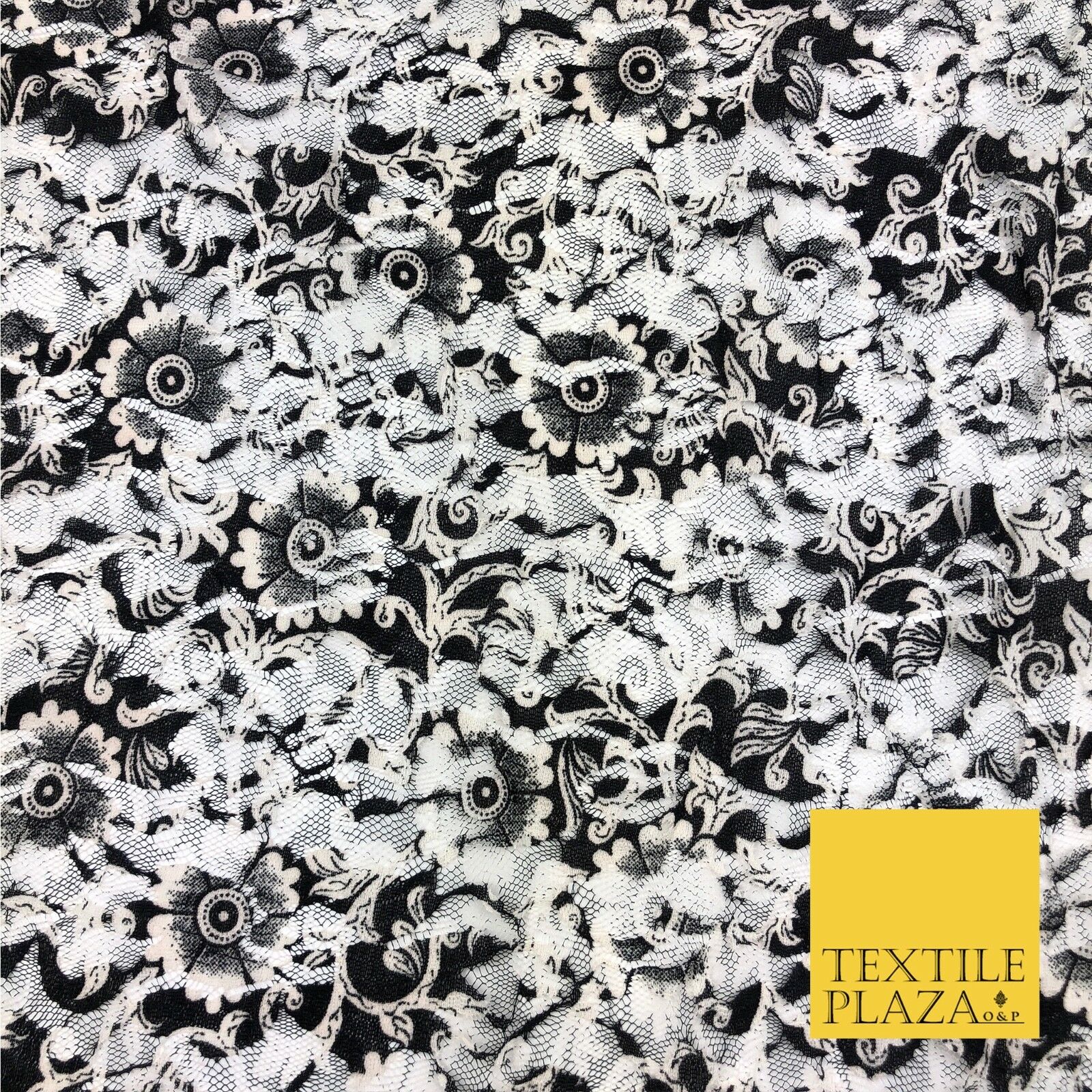 Floral Black White Ivory Net Lace Fabric Trendy Wacky Dress Fashion 45" GE806