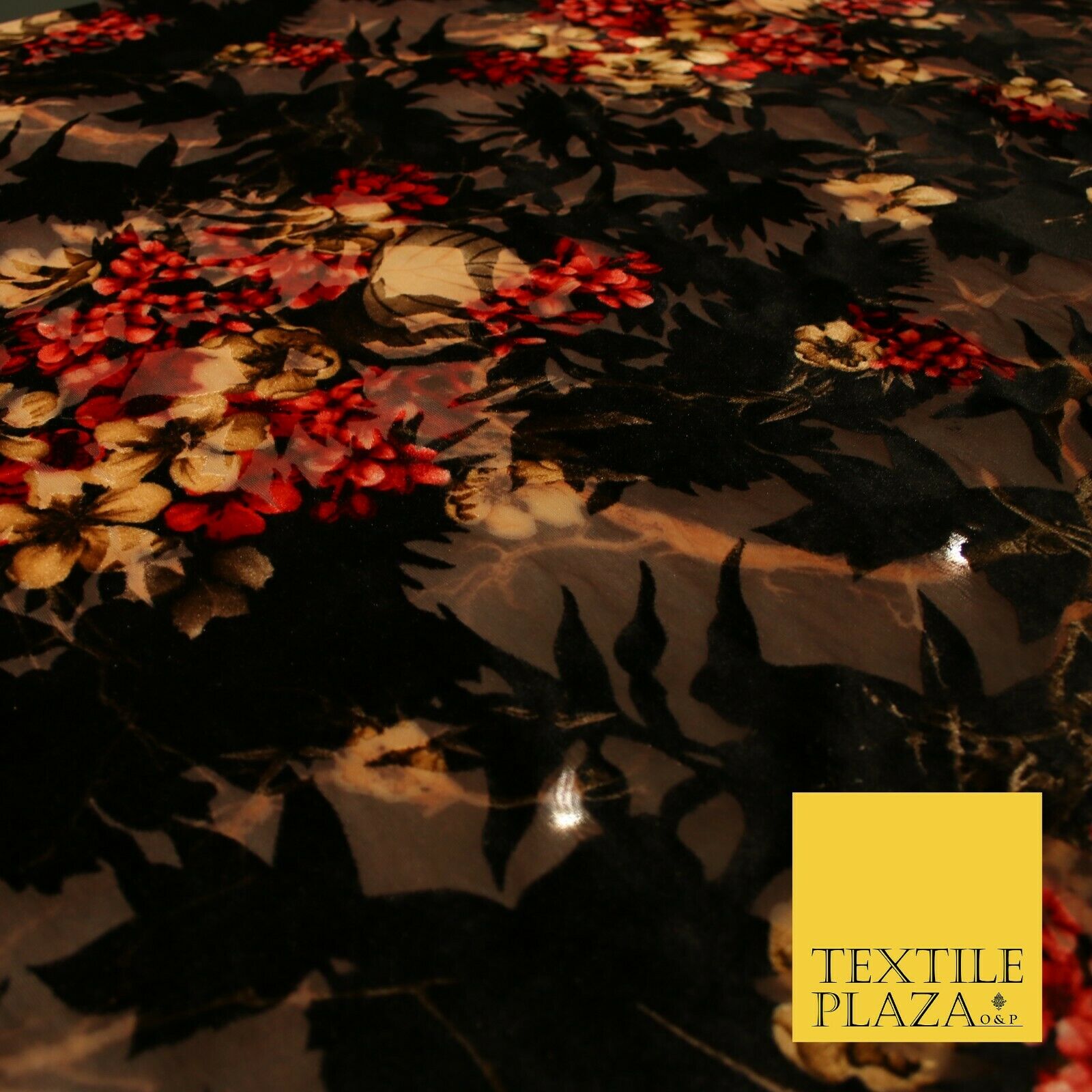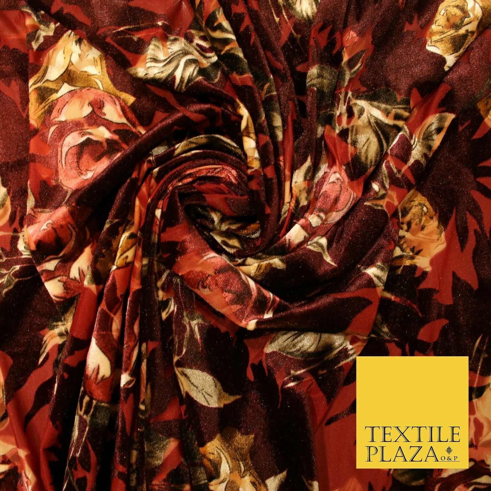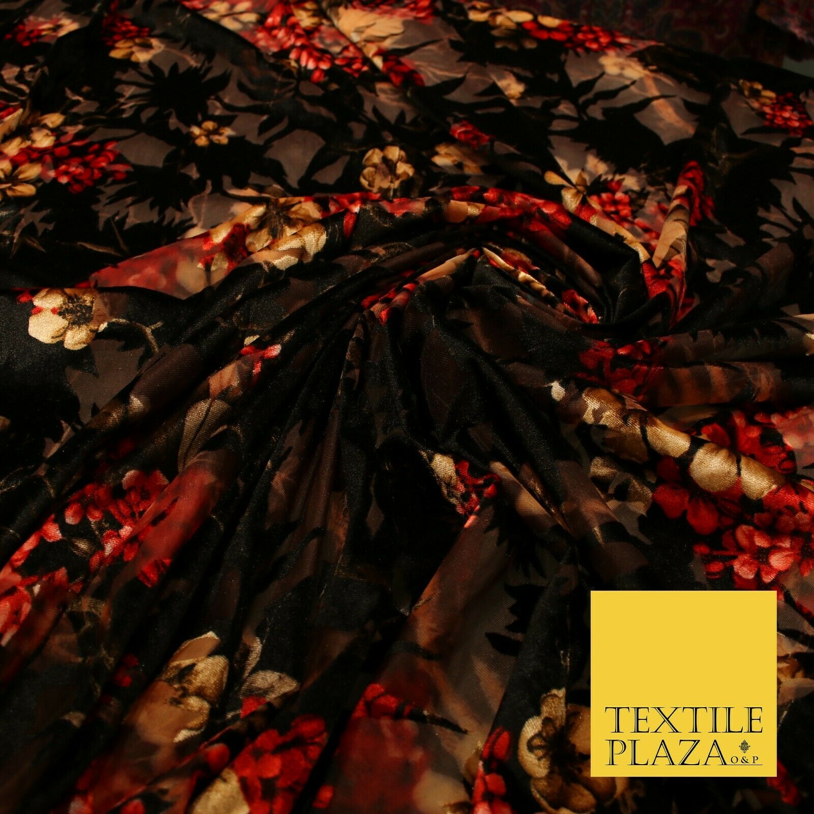 Floral Clusters Artsy Peony Pansy Flower Print Velvet Devore Burnout Net Fabric
