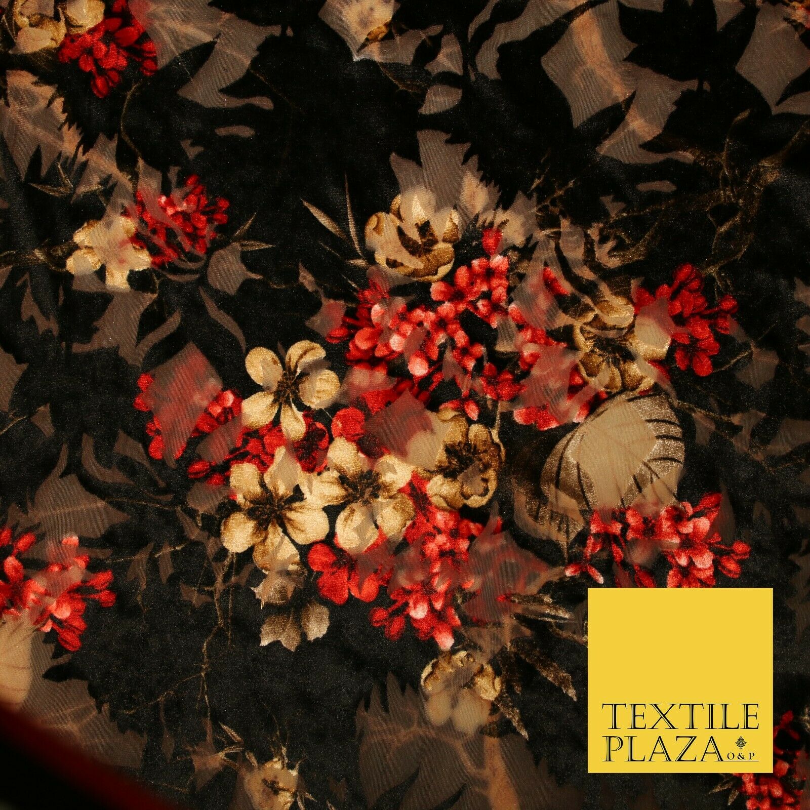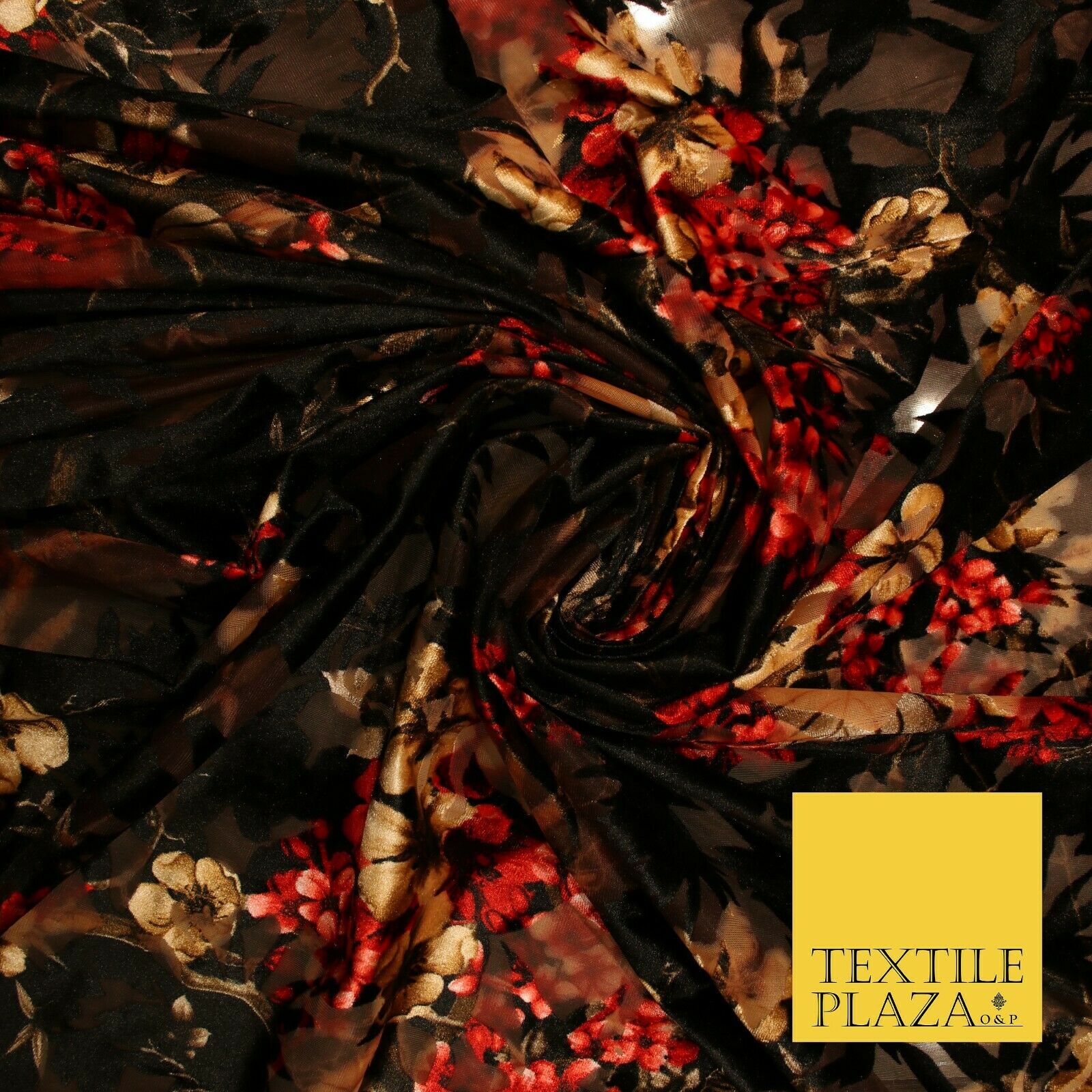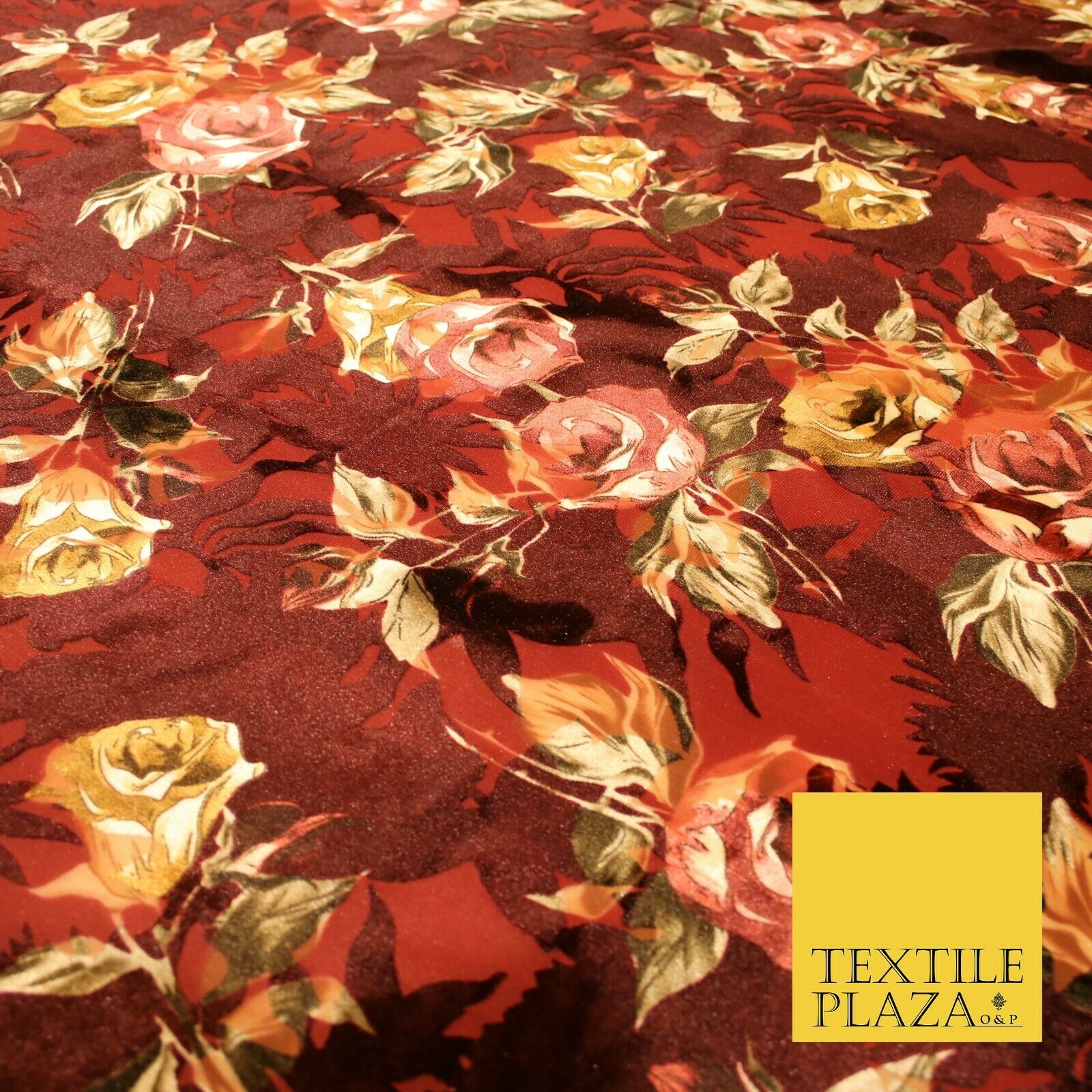 Floral Clusters Artsy Peony Pansy Flower Print Velvet Devore Burnout Net Fabric