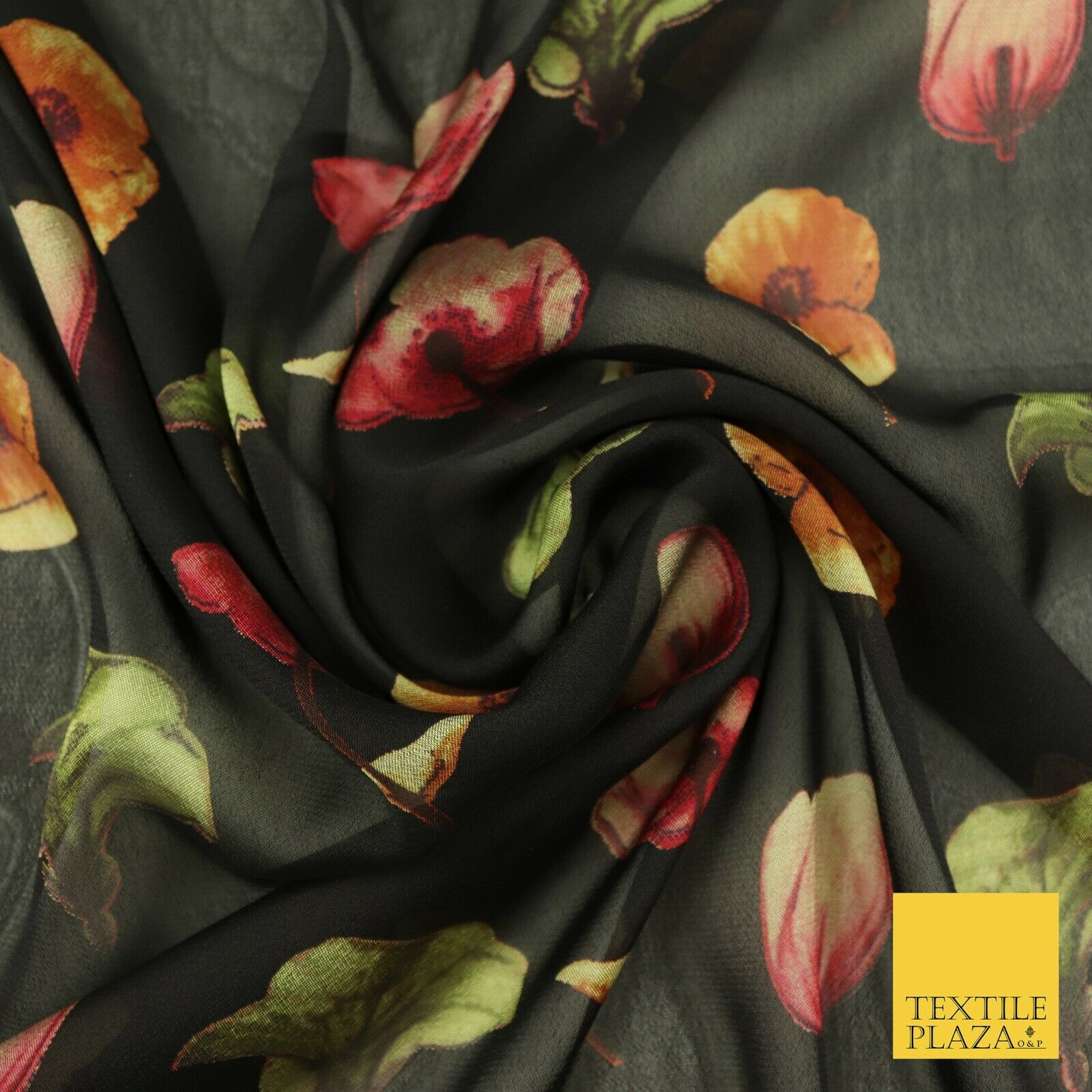 Floral Floating Multicolour Flowers Printed Sheen Soft Georgette Dress Fabric