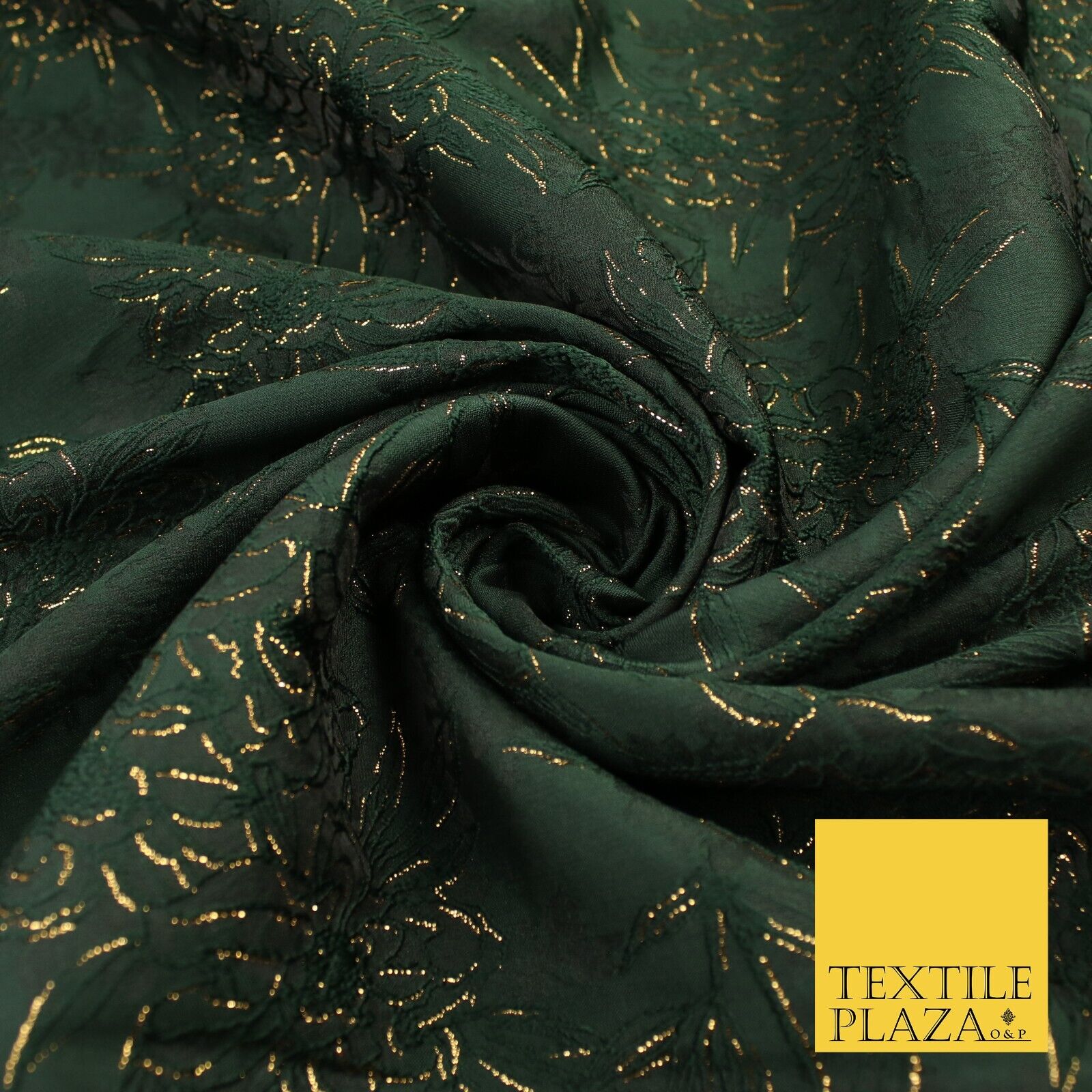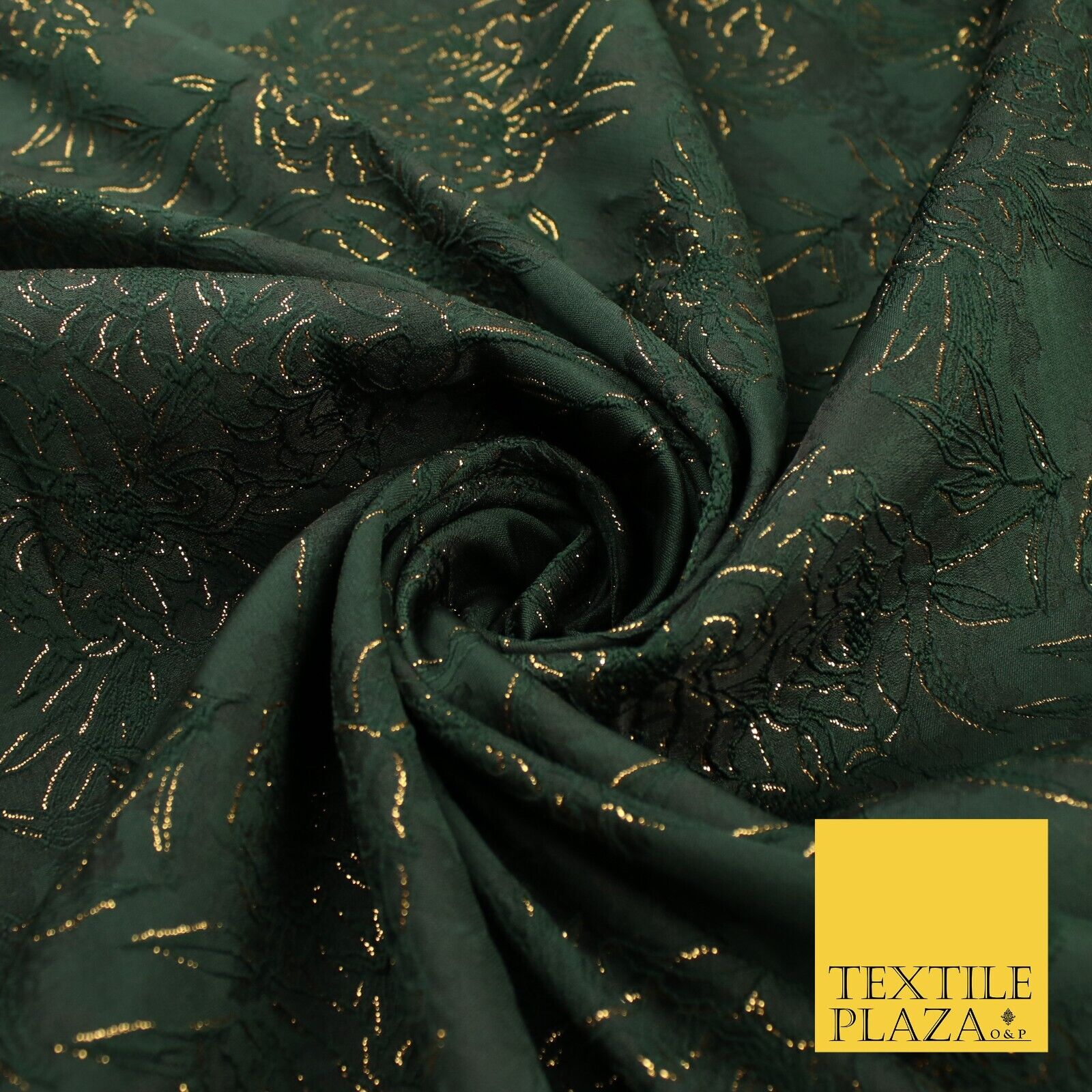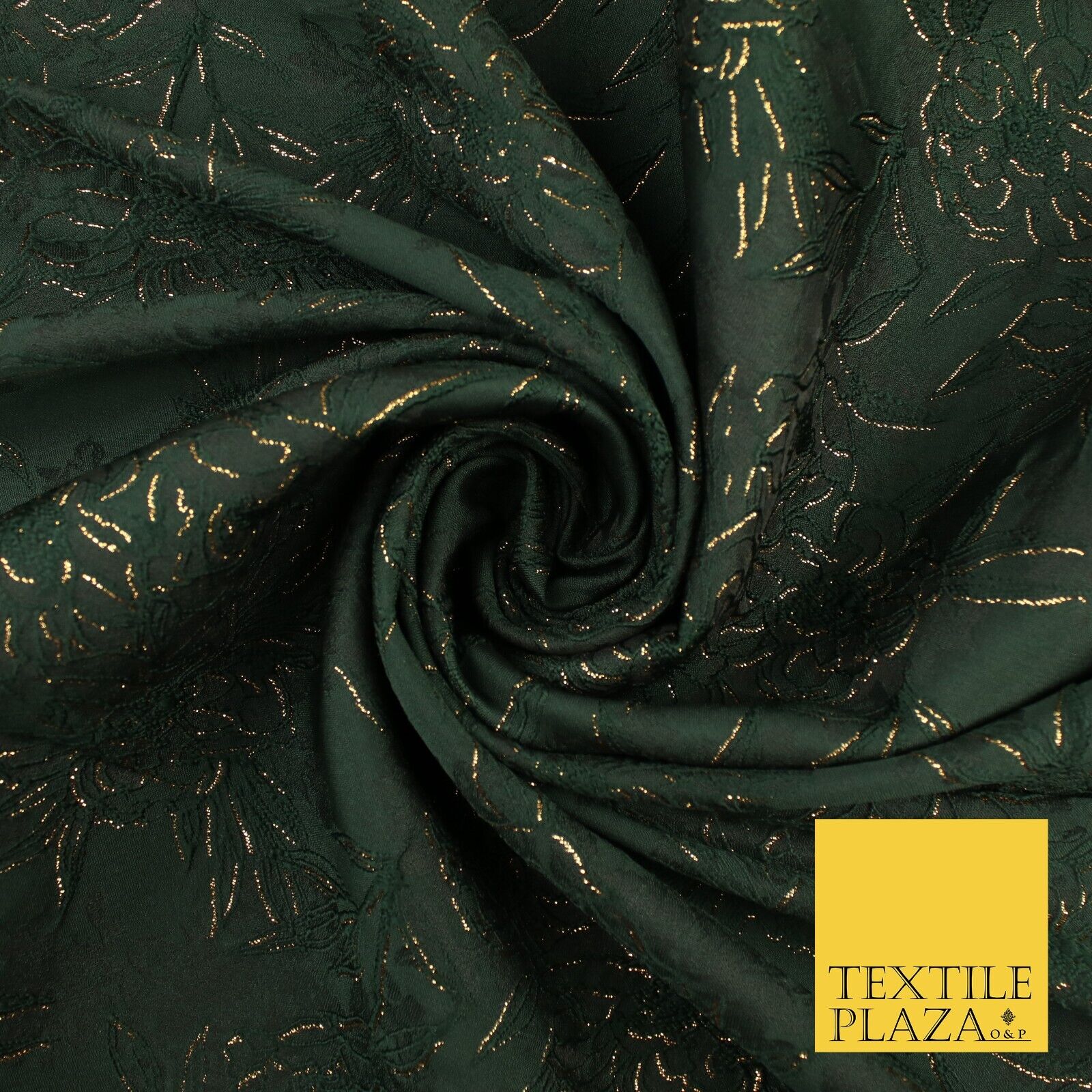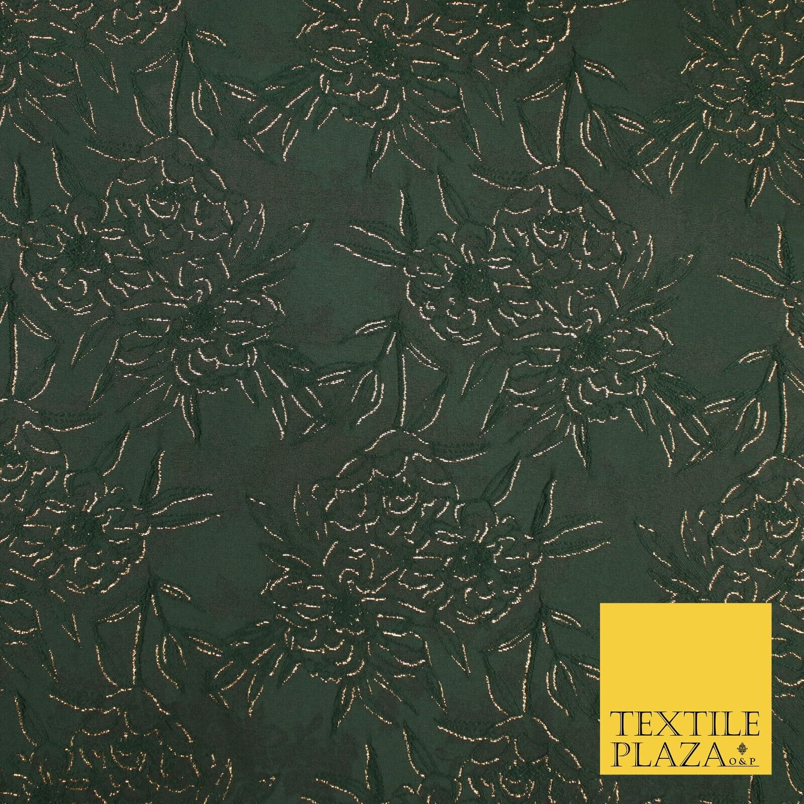 Forest Green Metallic Floral Roses Bloom Textured Brocade Jacquard Fabric 8527