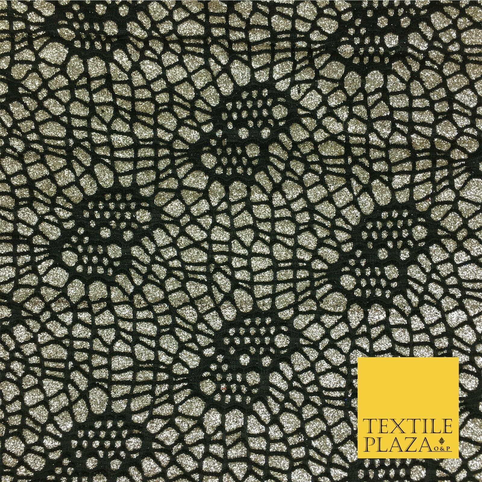 FRENCH GOLD Cobweb Sparkly Glitter Bonded Polyester Lace Fabric 58" Halloween