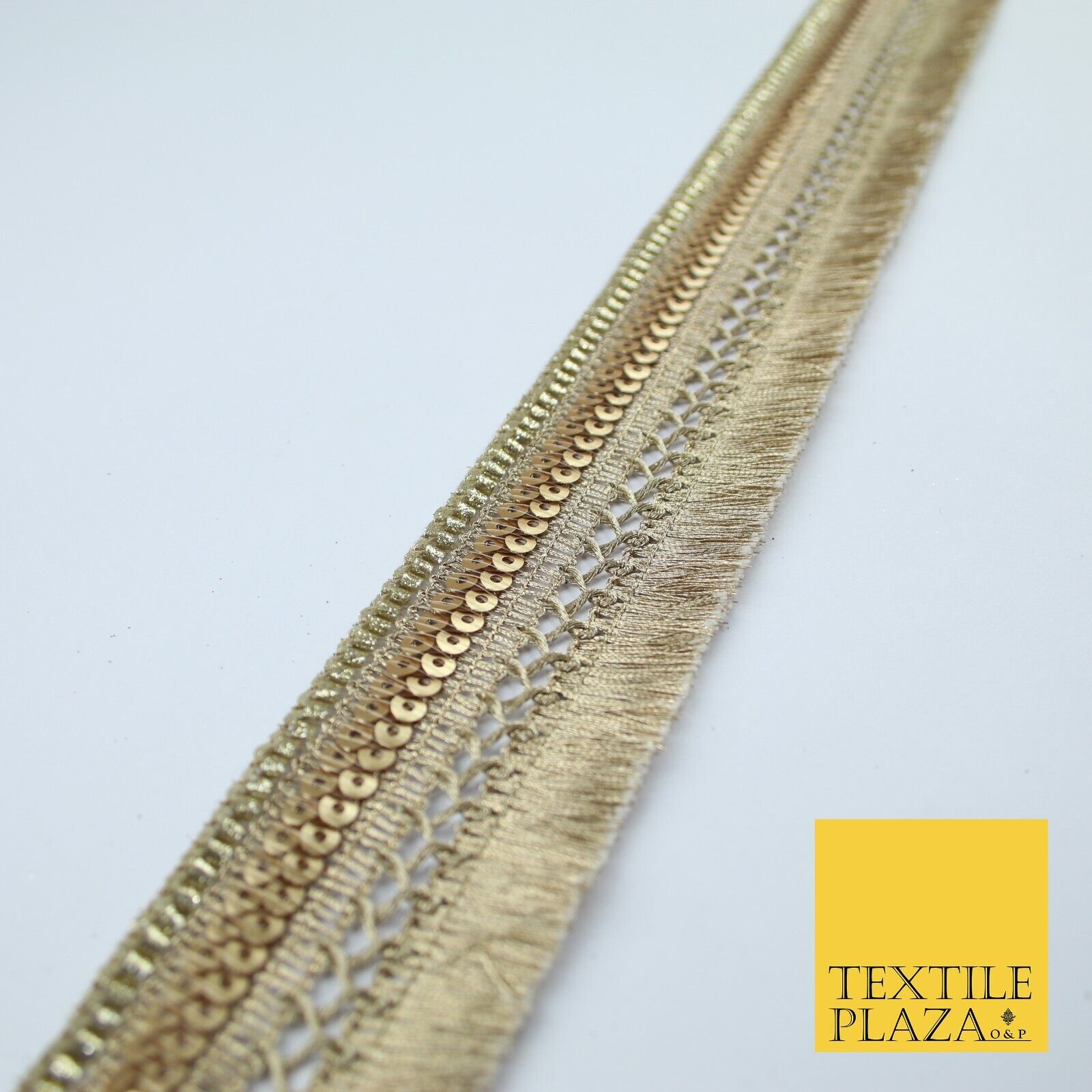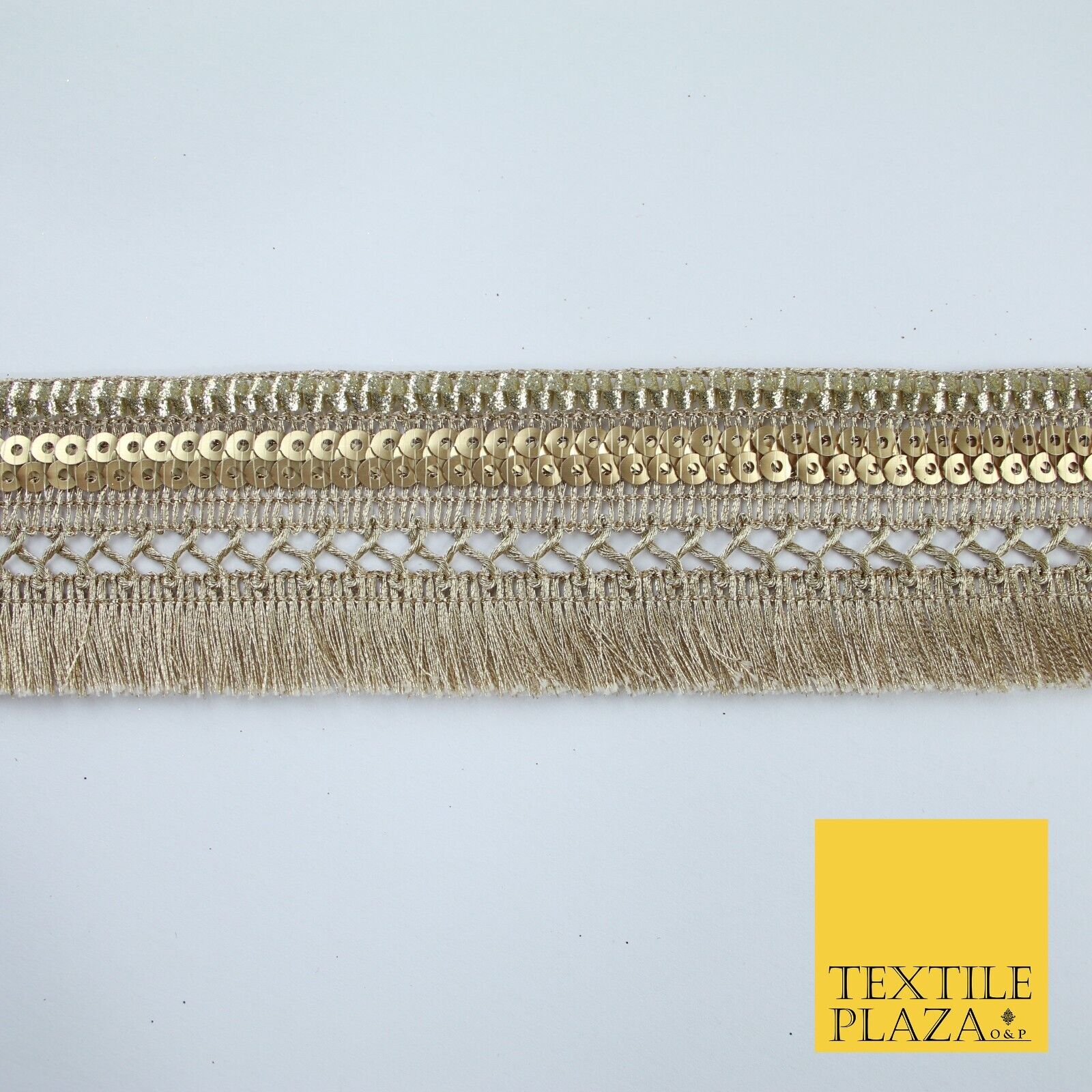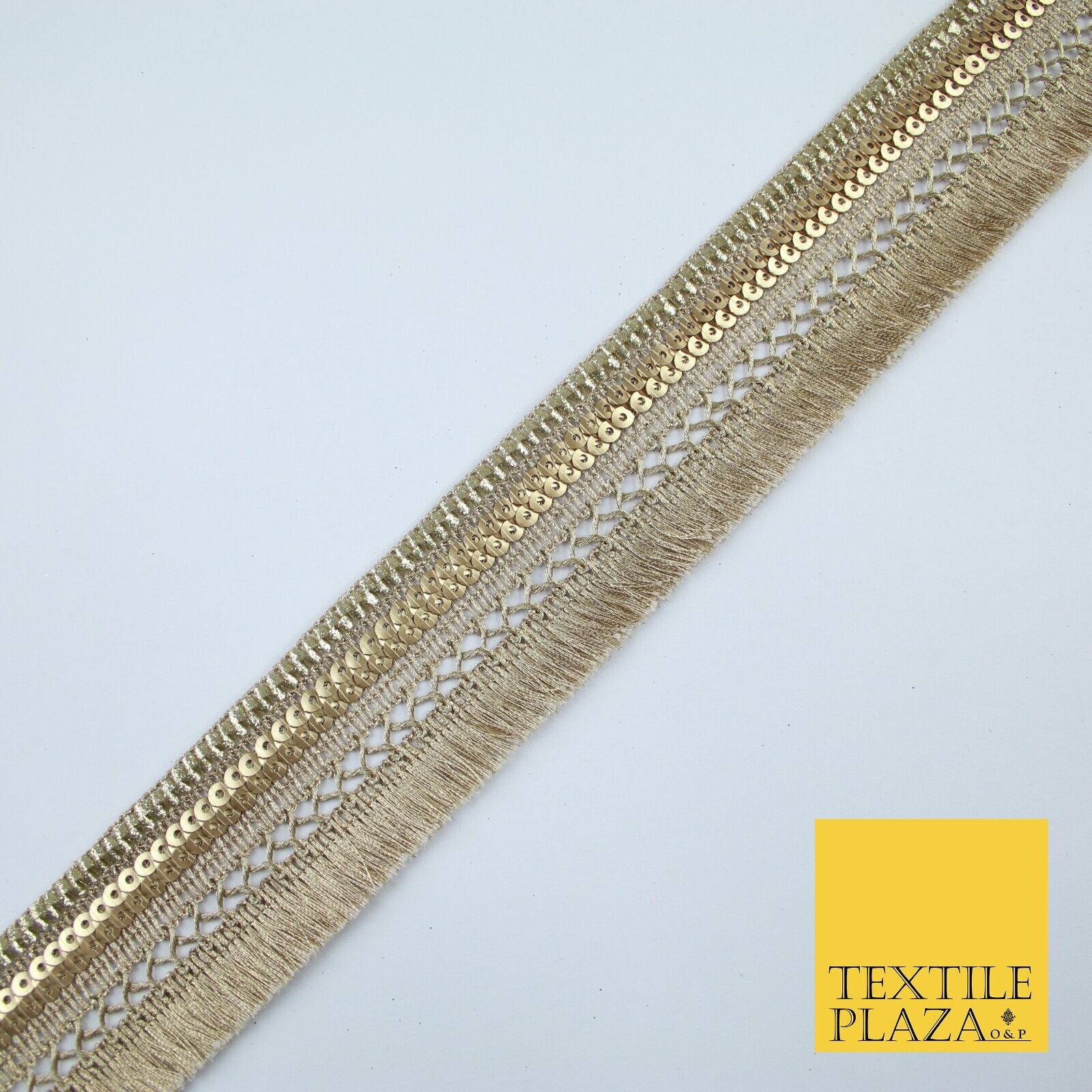 French Gold Multi Design Sequin Fringe Glitter Trim Border Lace - 4cm Wide X665