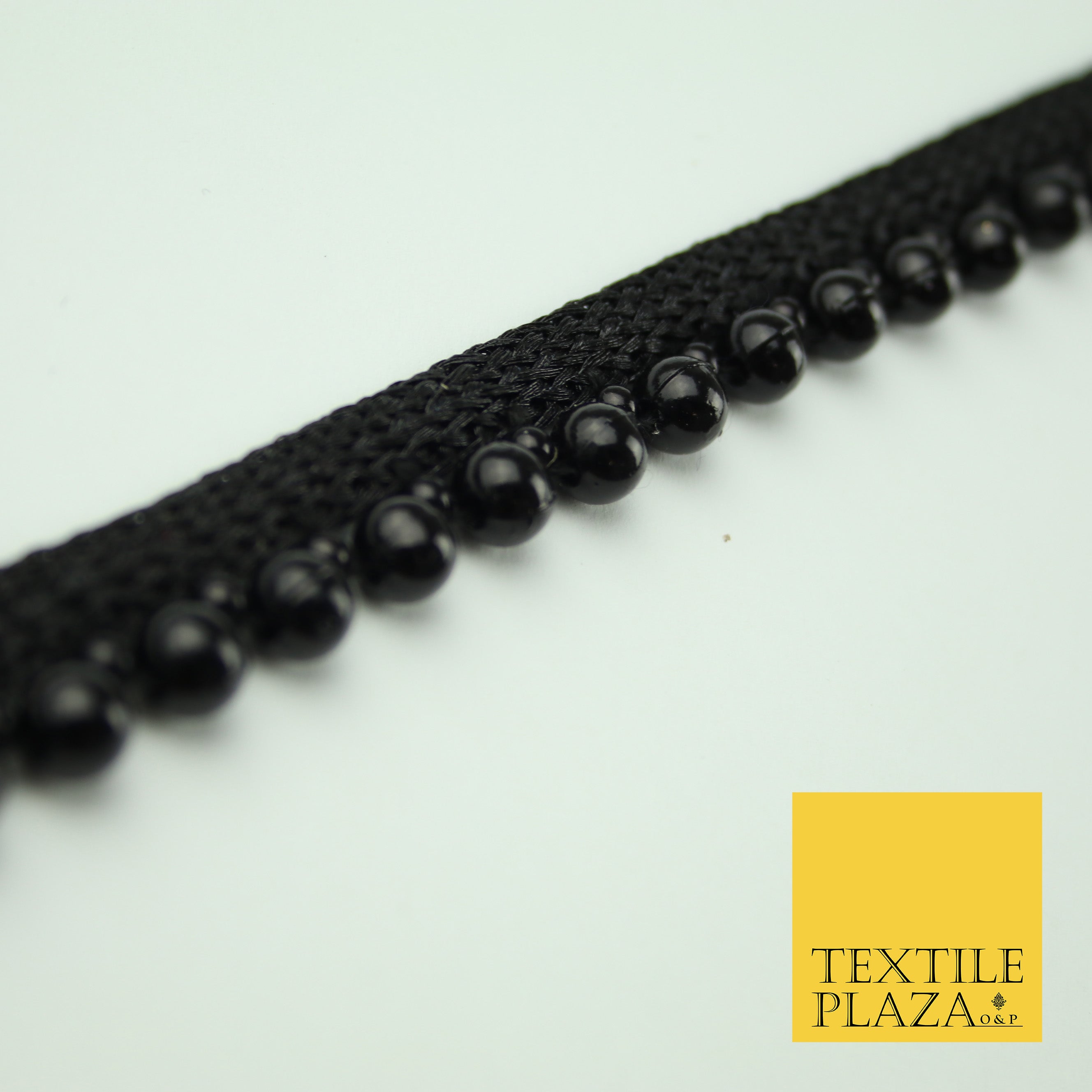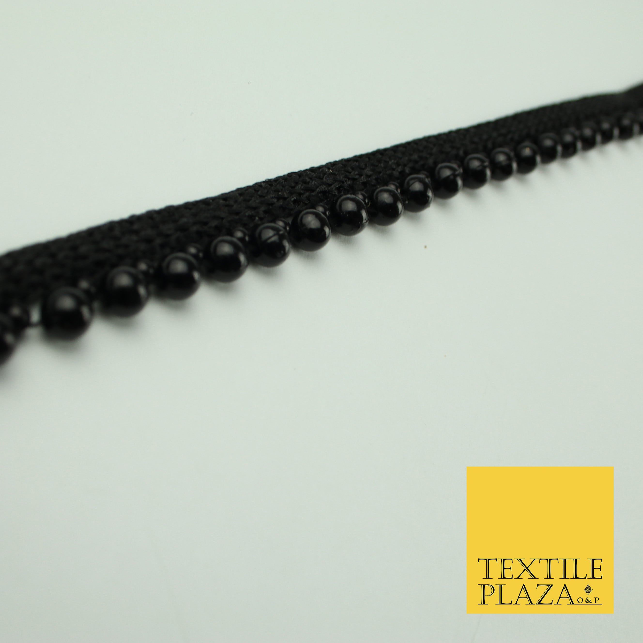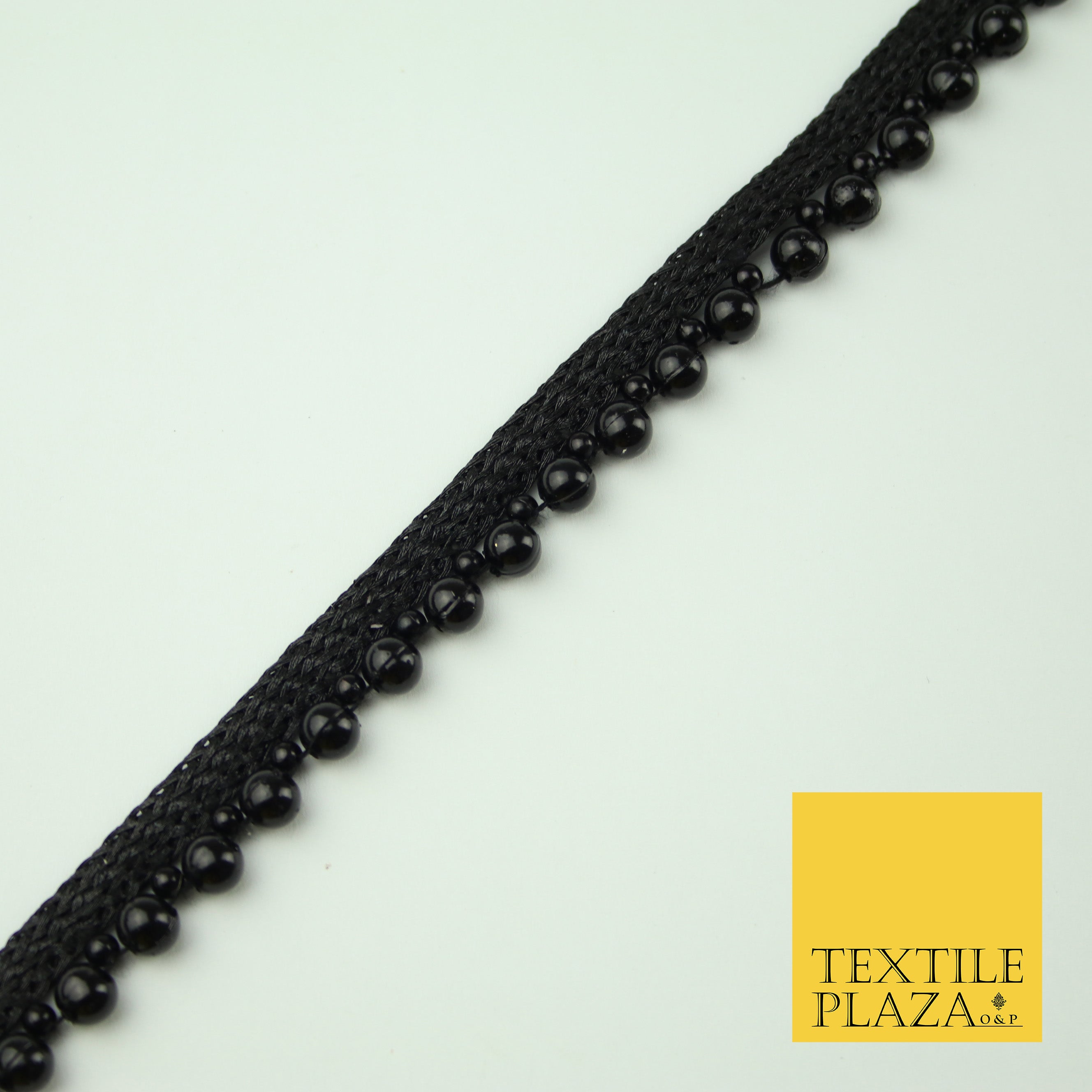 Full Black Pearl Ball Shiny Beaded Ribbon Trim Border Indian Lace X335