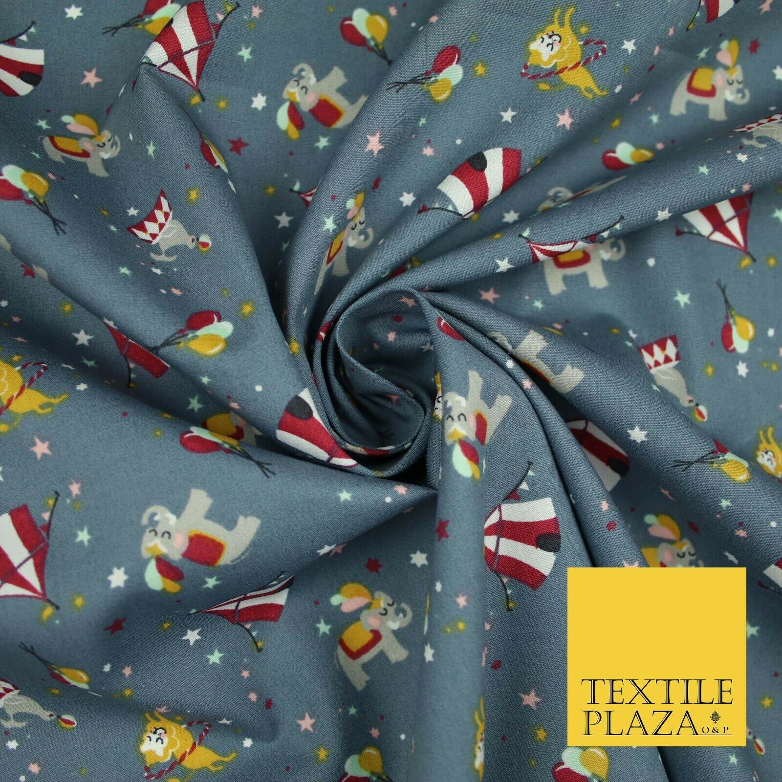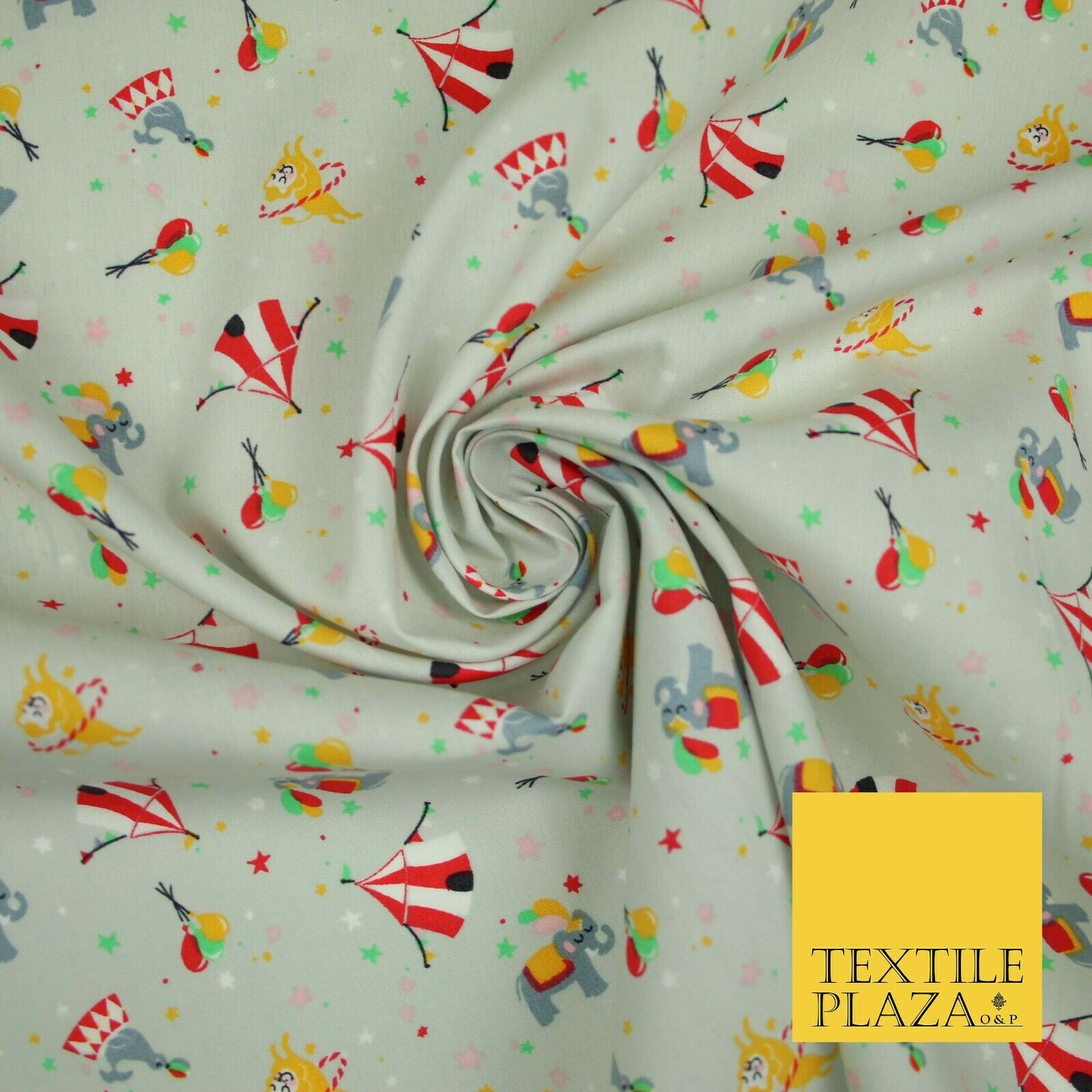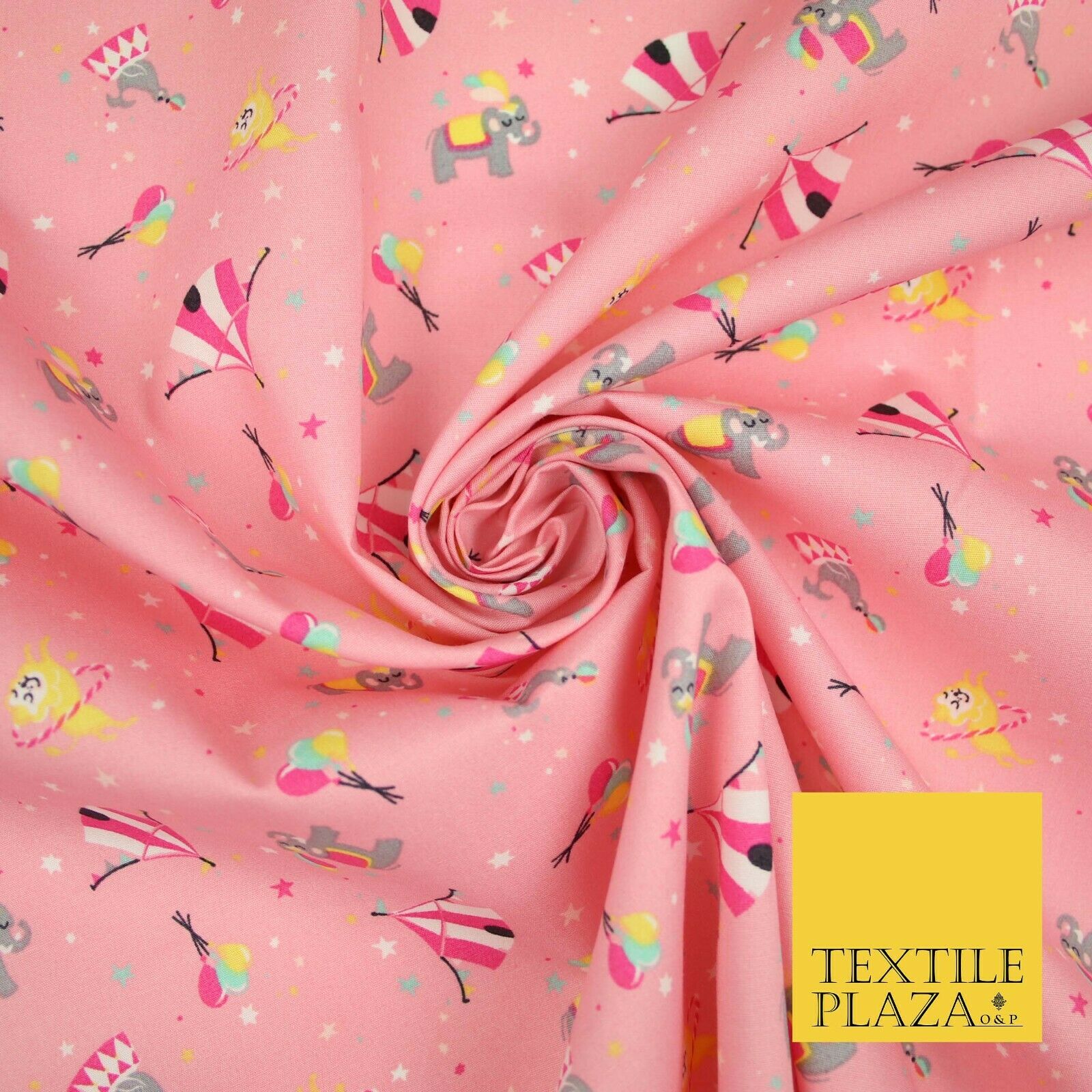 Fun Circus Elephant Balloons Stars 100% Cotton Poplin Print Fabric Face Masks