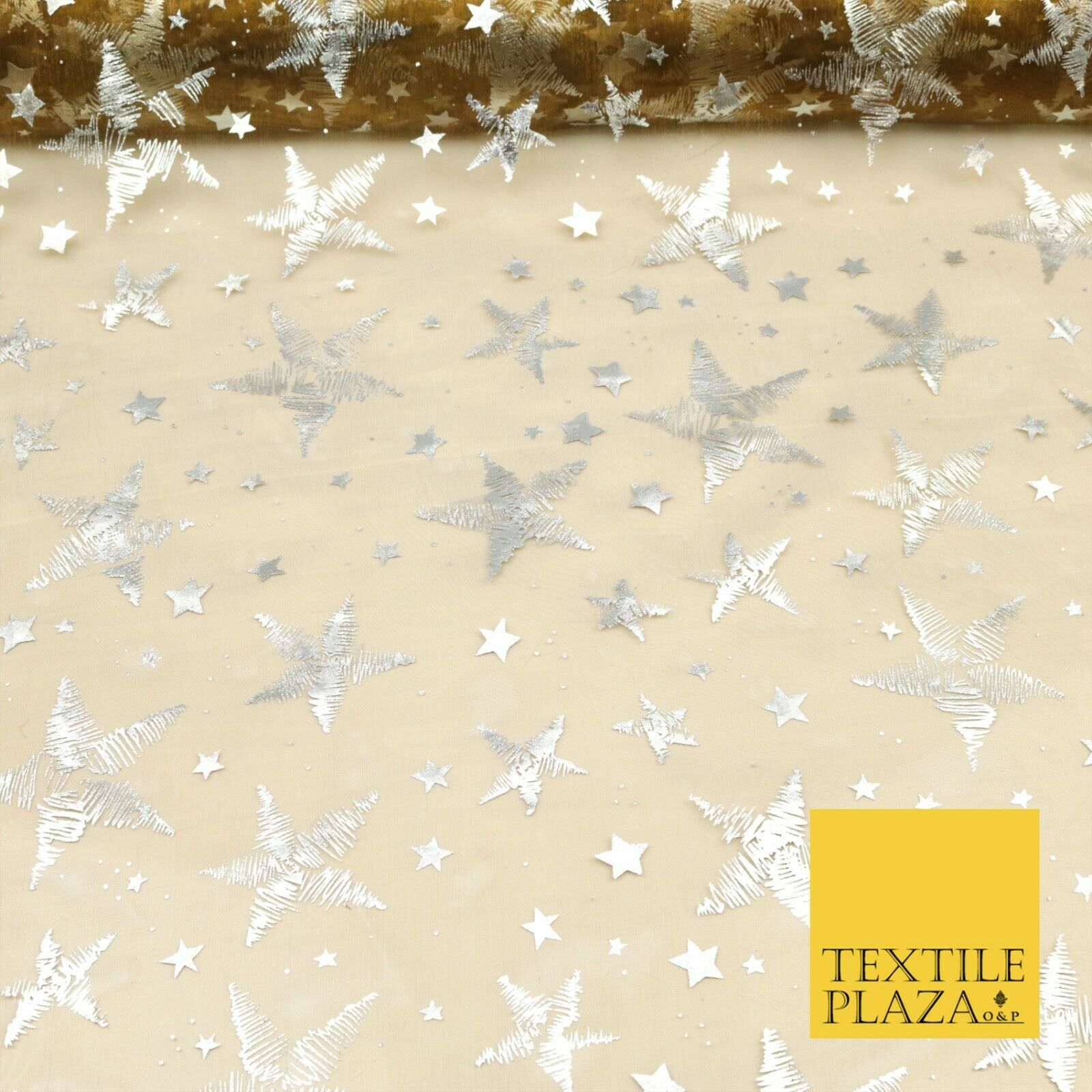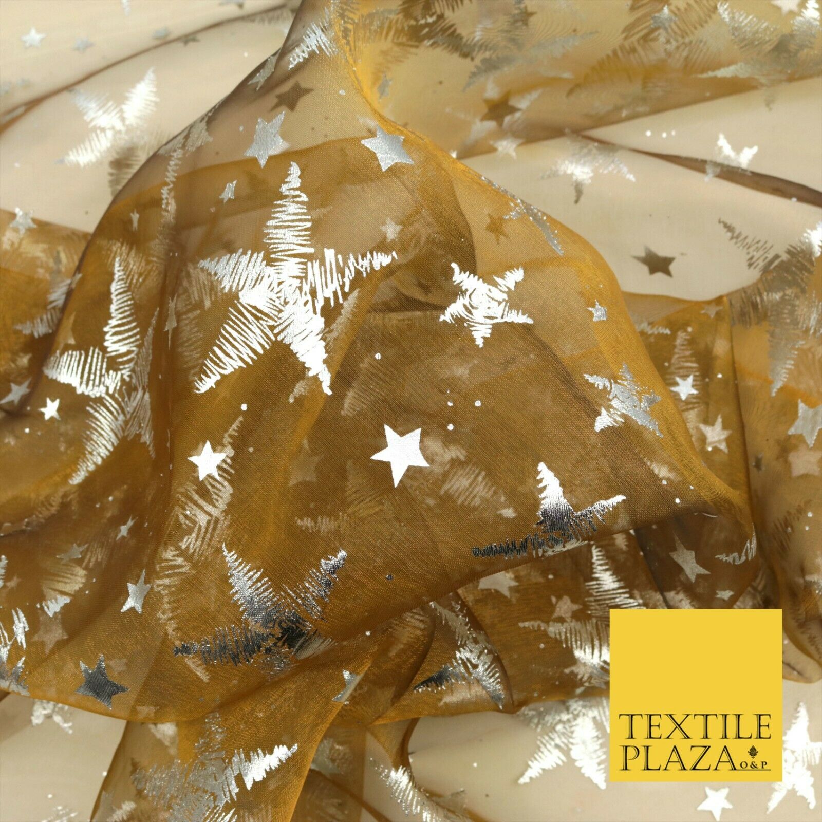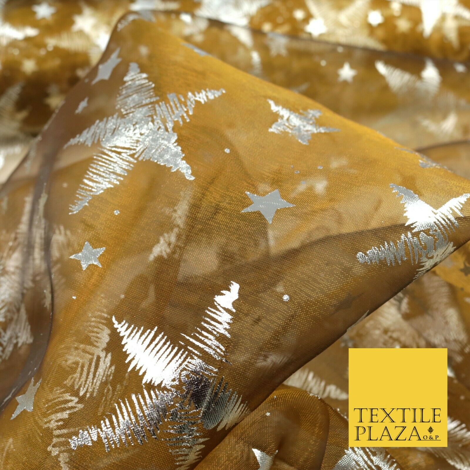 GINGER BRONZE Silver Metallic Foil Stars Organdy Organza Fabric Dress Craft 1543