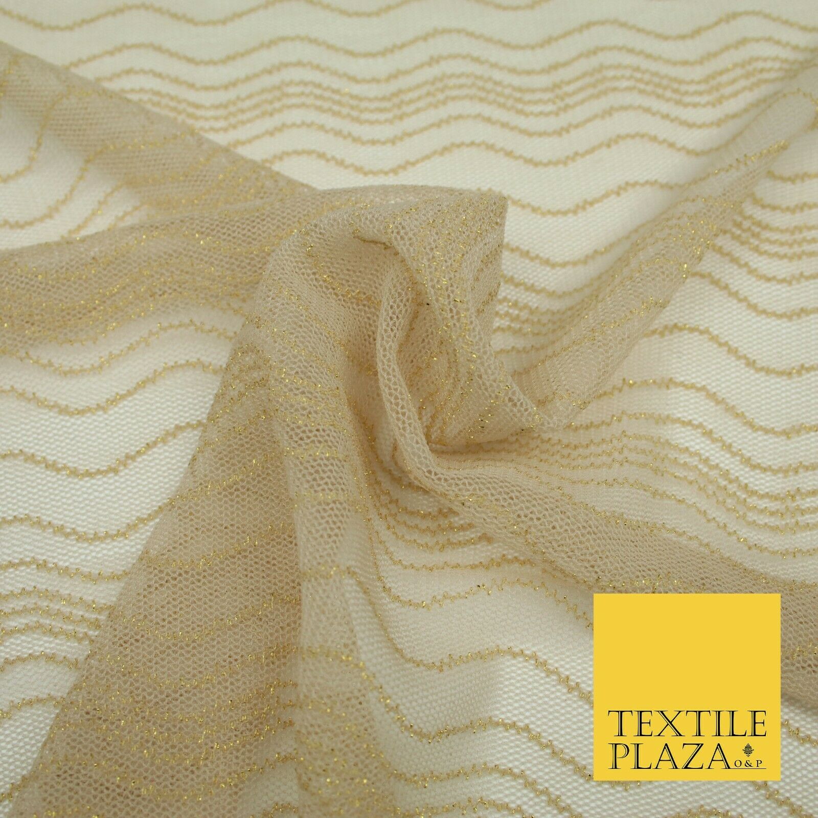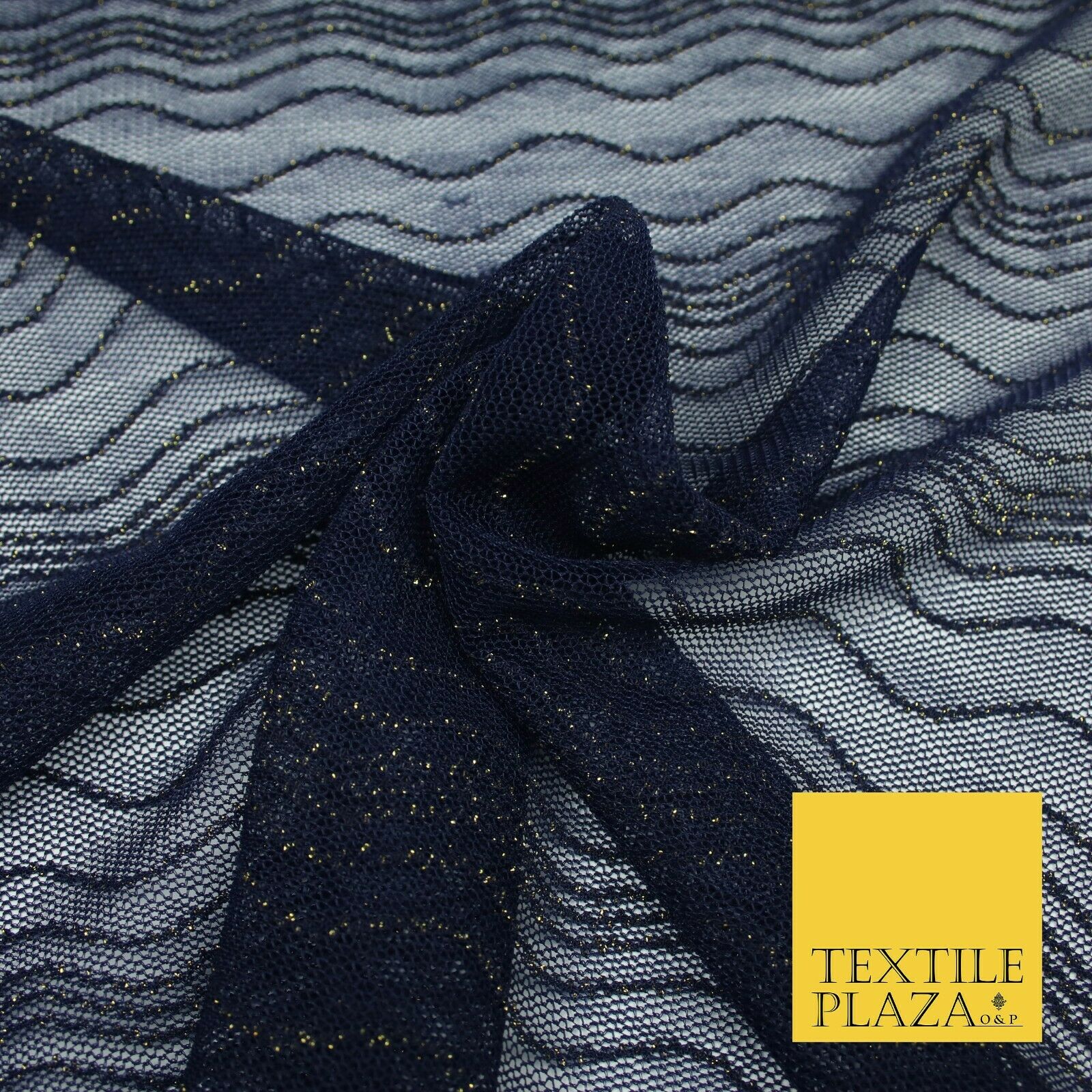 Glitter Shimmer Banded Waves Power Stretch Net Fabric Dress Sparkle Dancewear