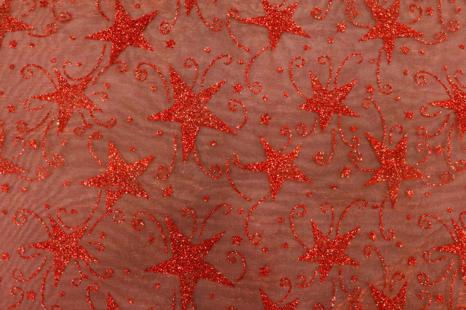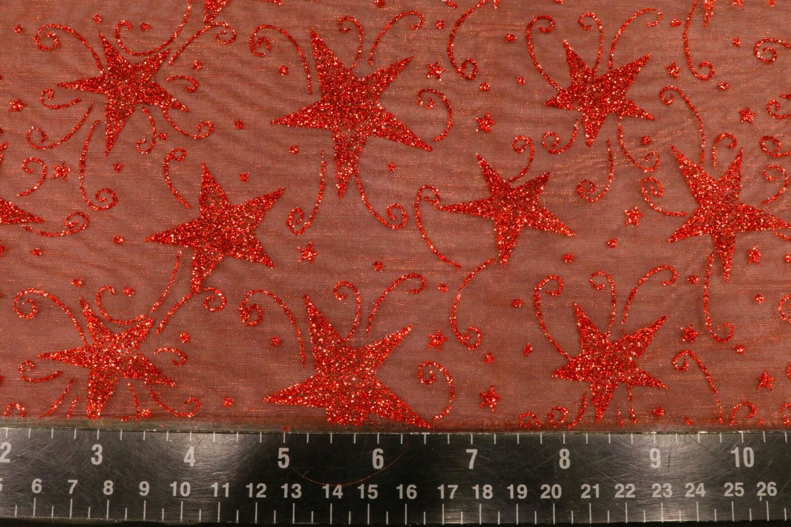 Glitter Star Organdi (Organza) Christmas Fabric 100% Nylon - RED RE50