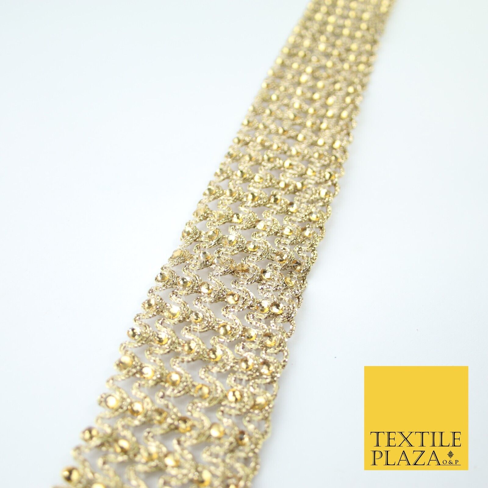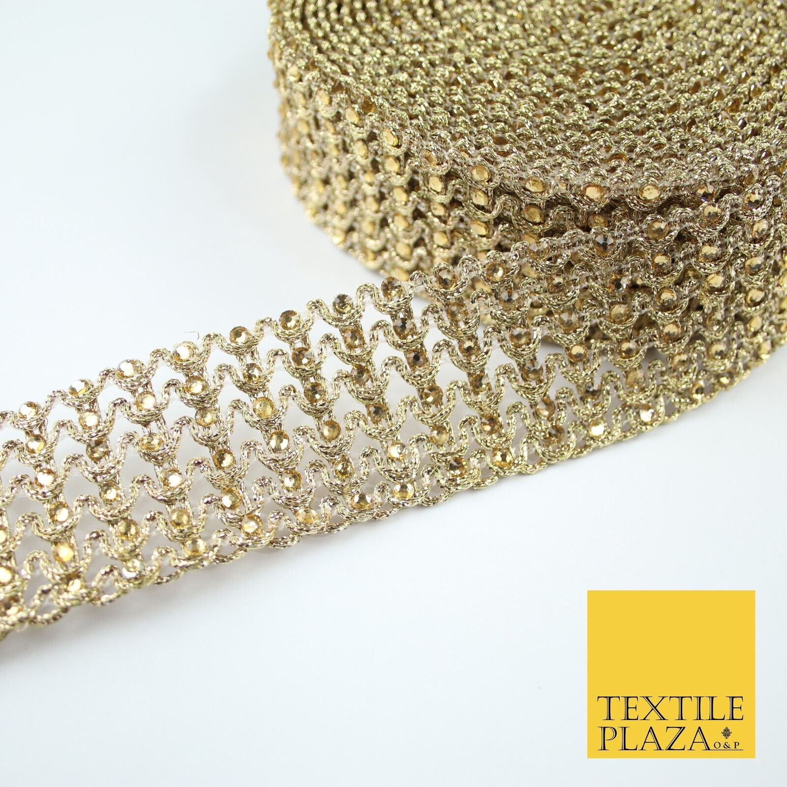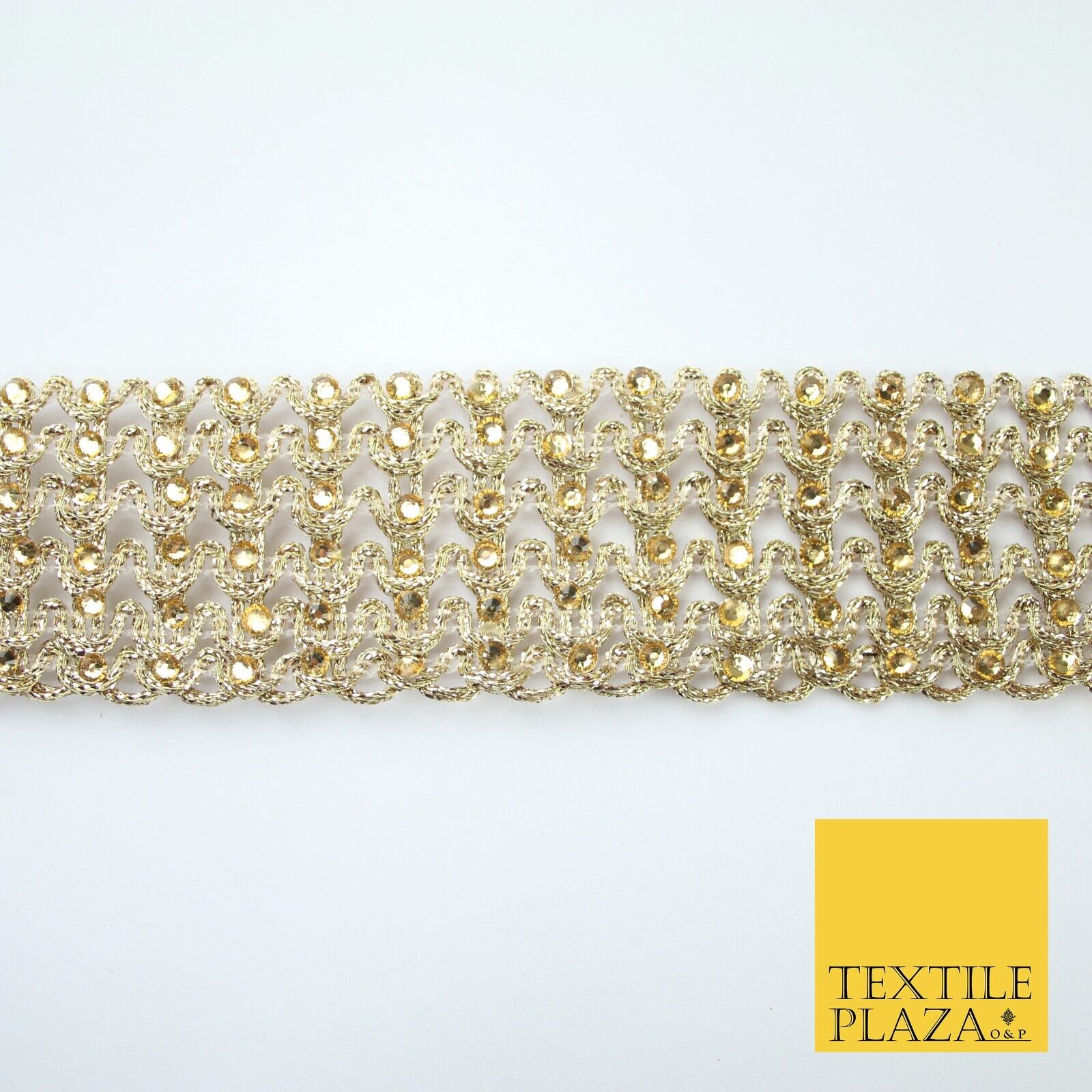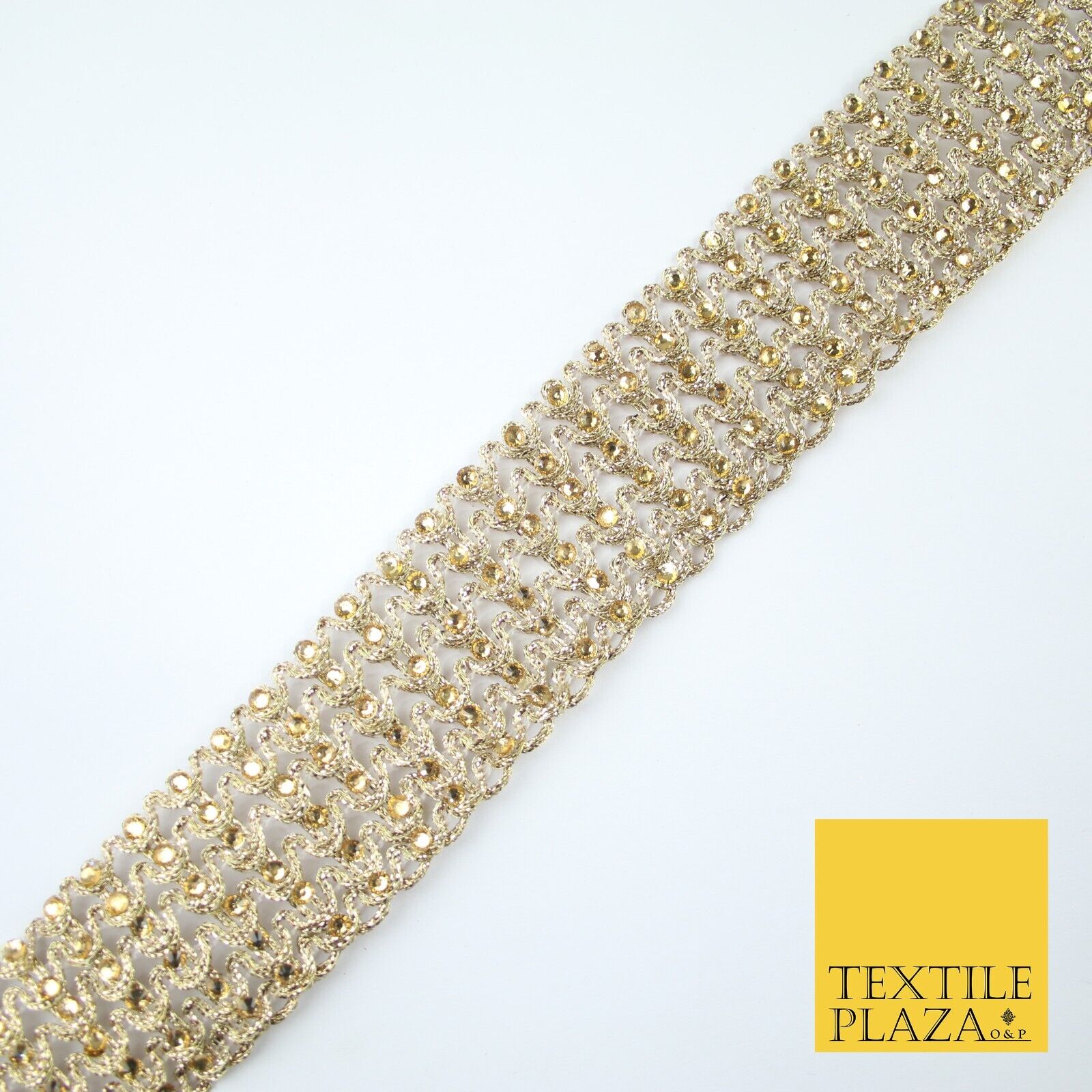 GOLD 6 Row Swag Intense Diamonte Stones Fancy Trim Border Lace - 4cm Wide - X649