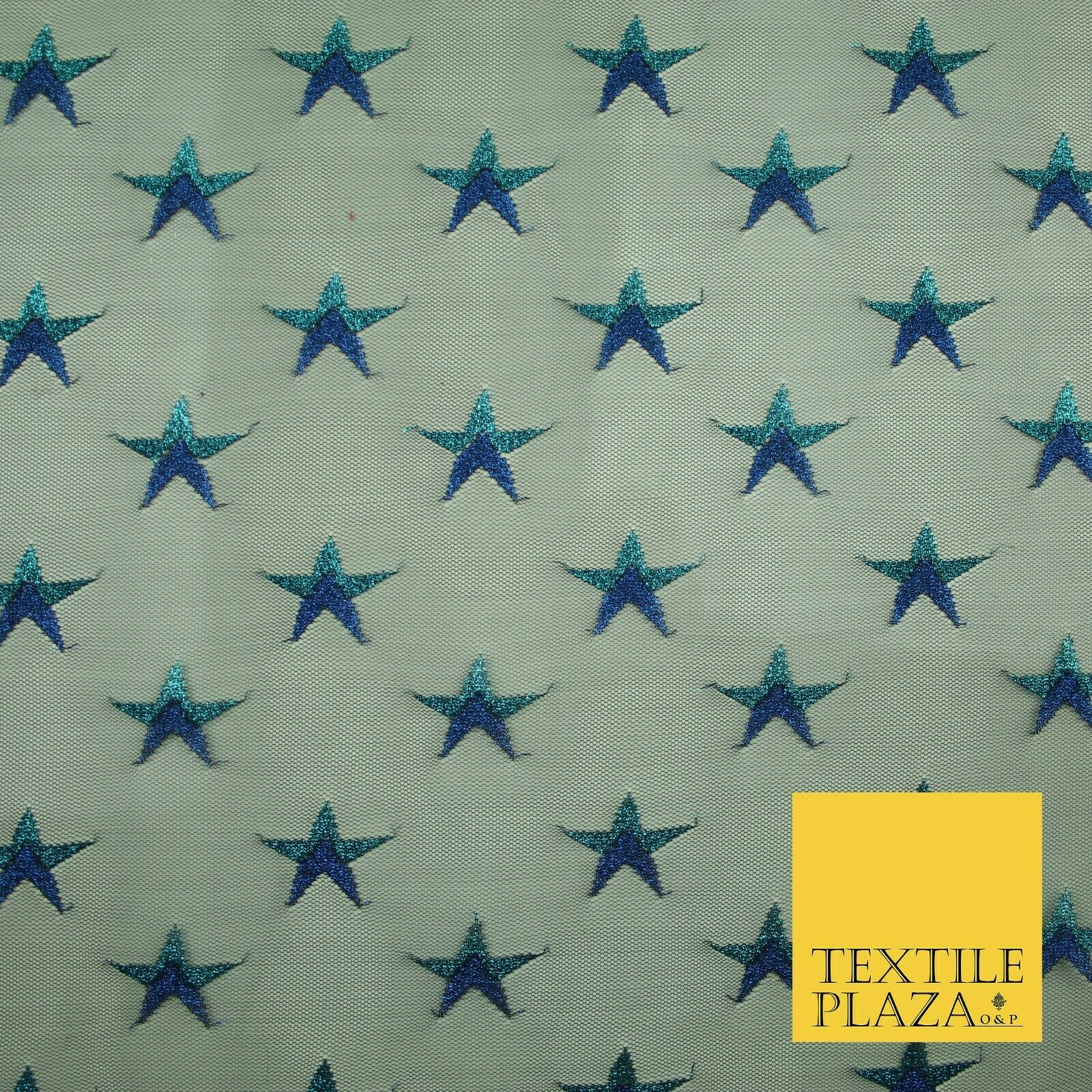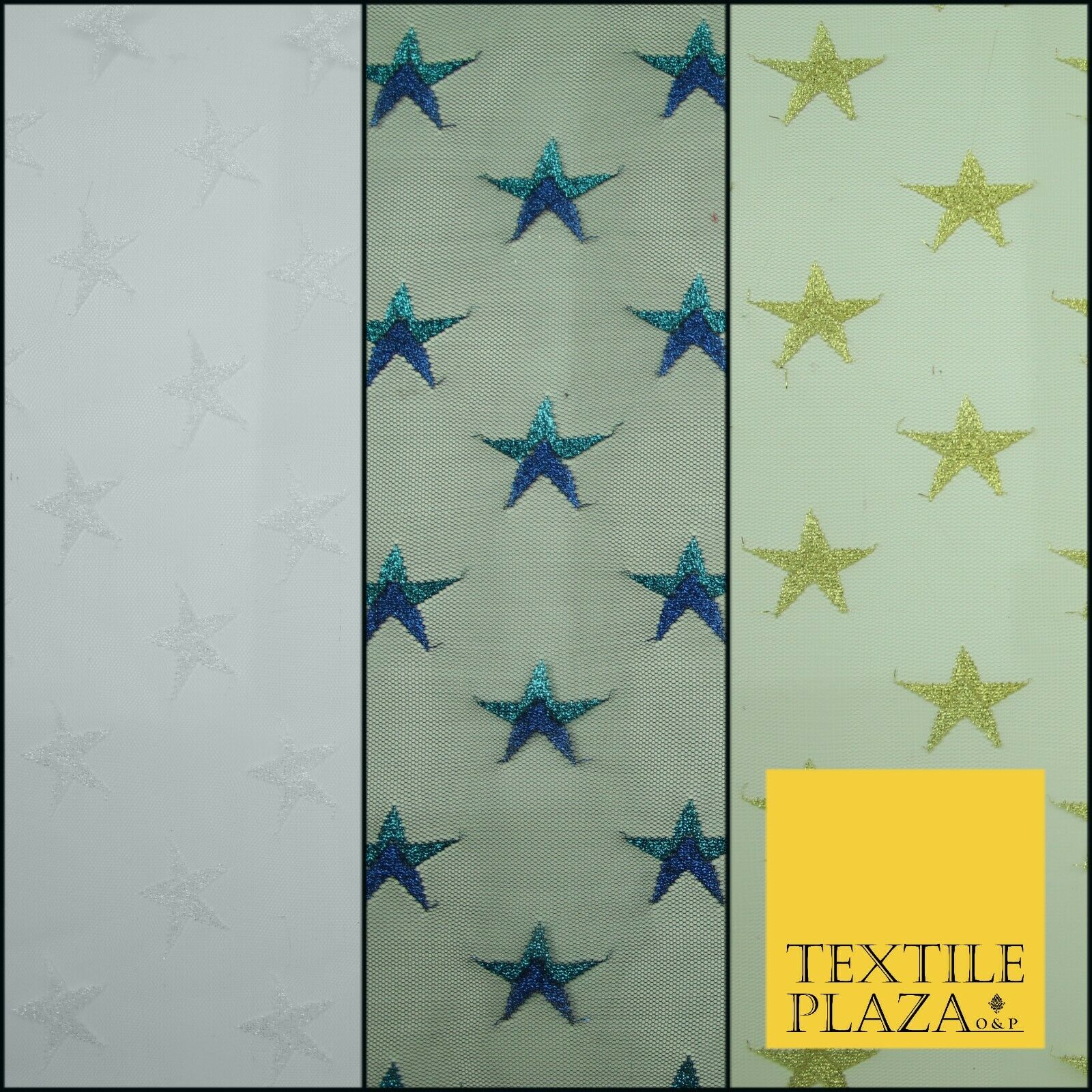 Gold Blue White Metallic 3cm Embroidered Star Mesh Net Fabric Sparkle DressCraft