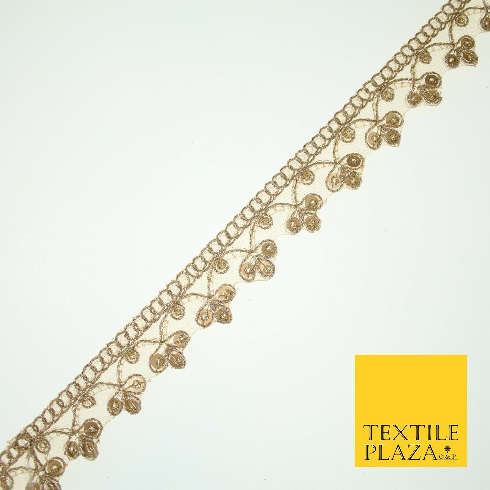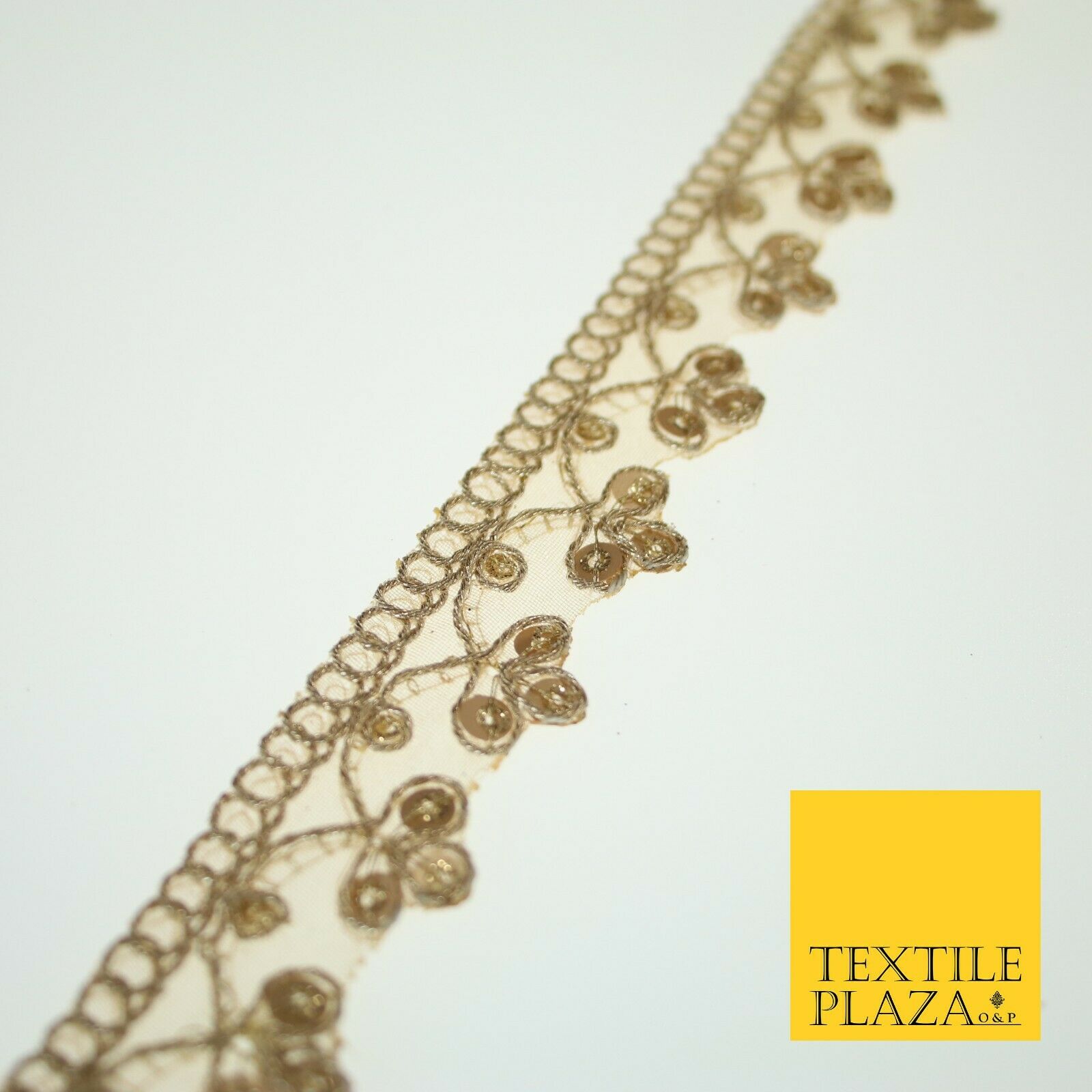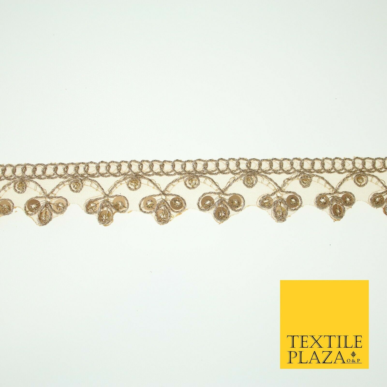 Gold Corded Matt Sequin Trio Ornate Net Trim Border Ribbon Lace 2cm Wide X565