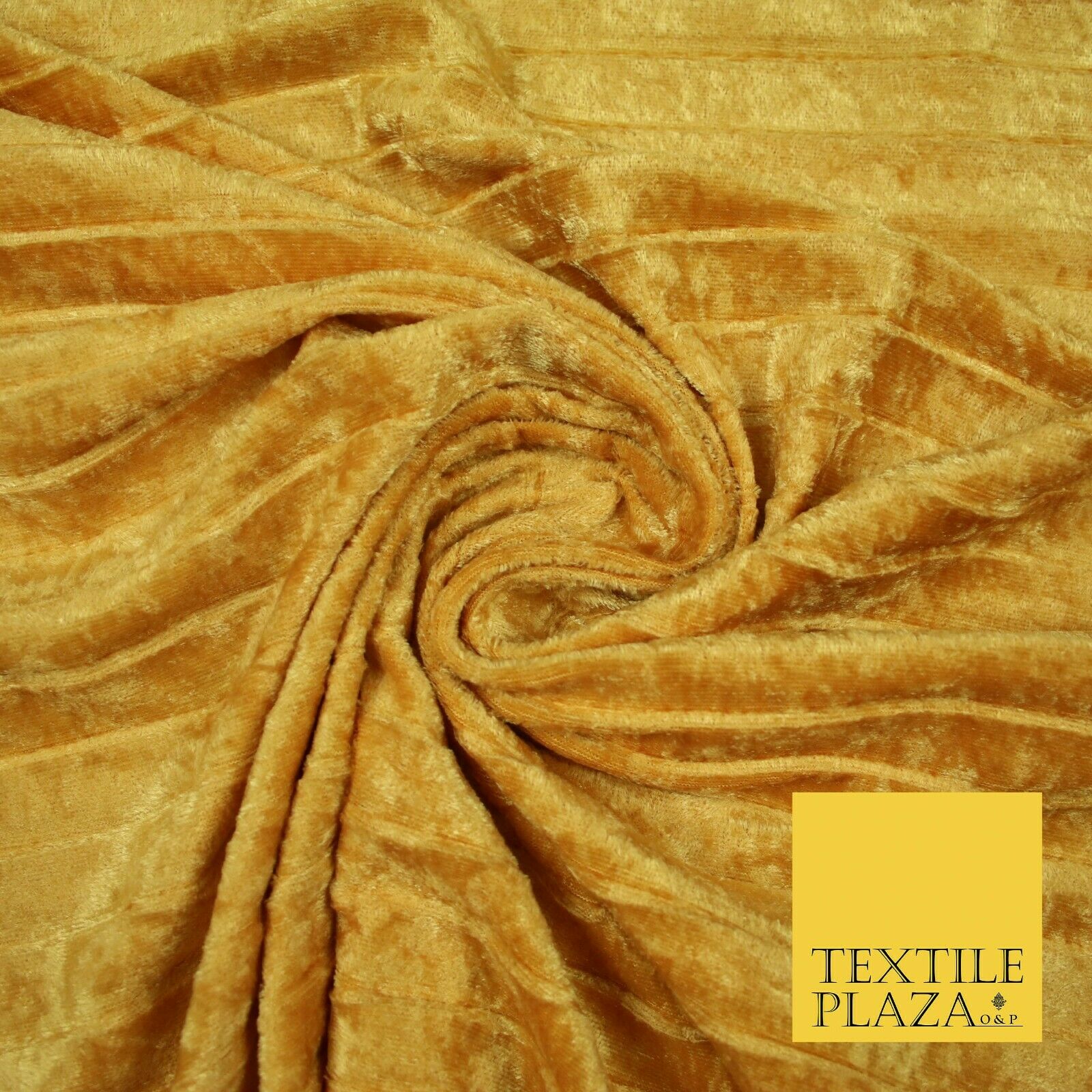 Gold Crushed Pleated Ribbed Stretch 2cm Striped Velvet Fabric Dress Craft 5377