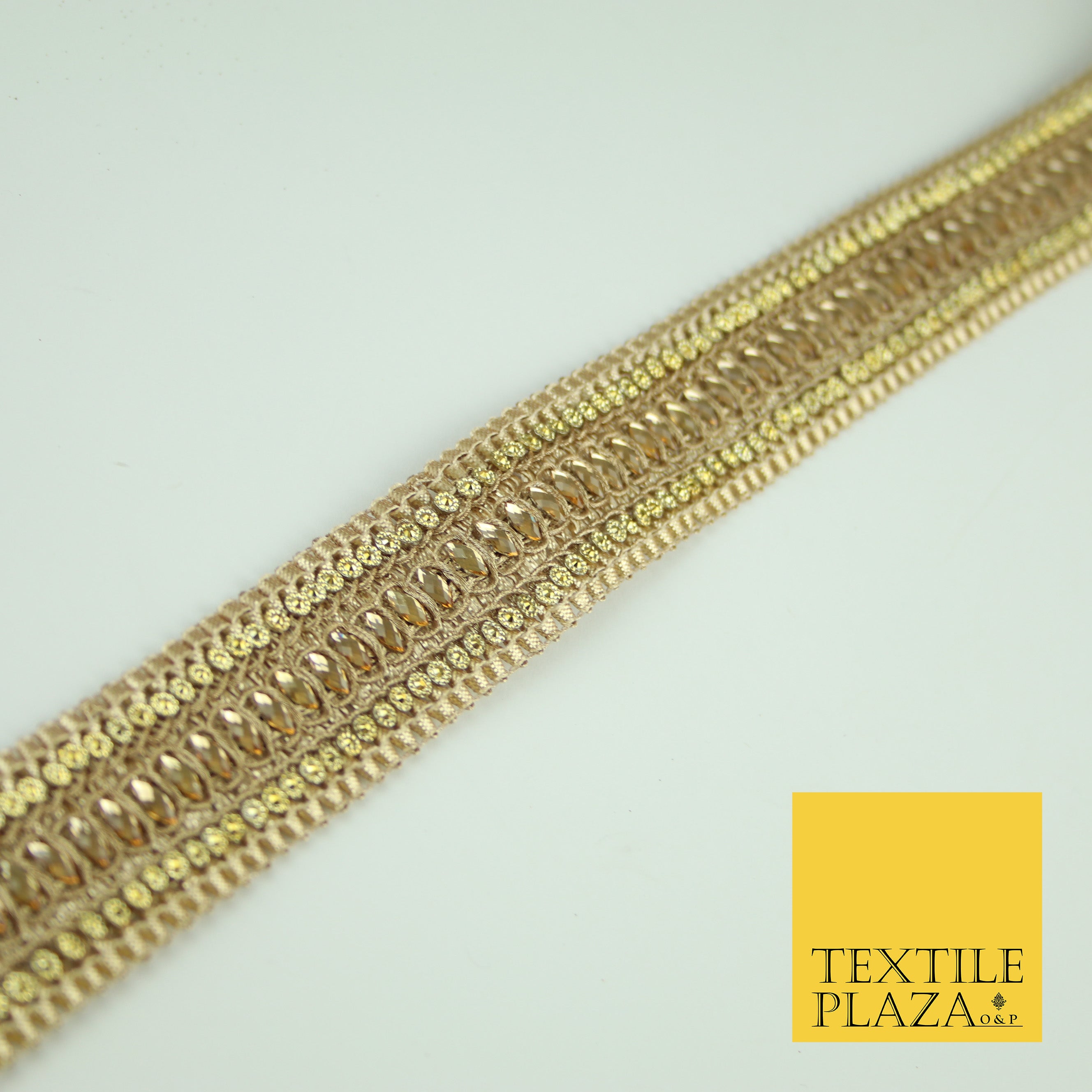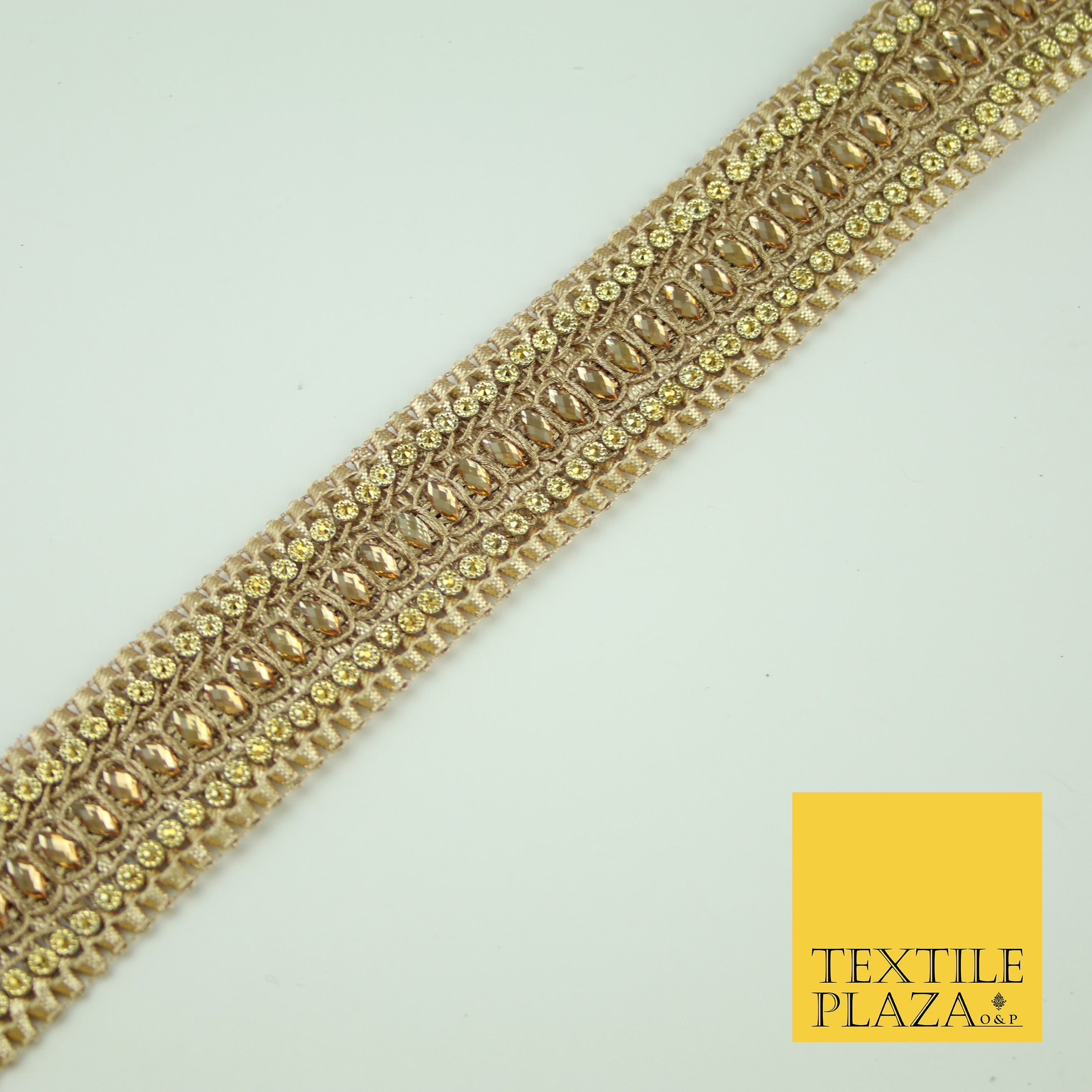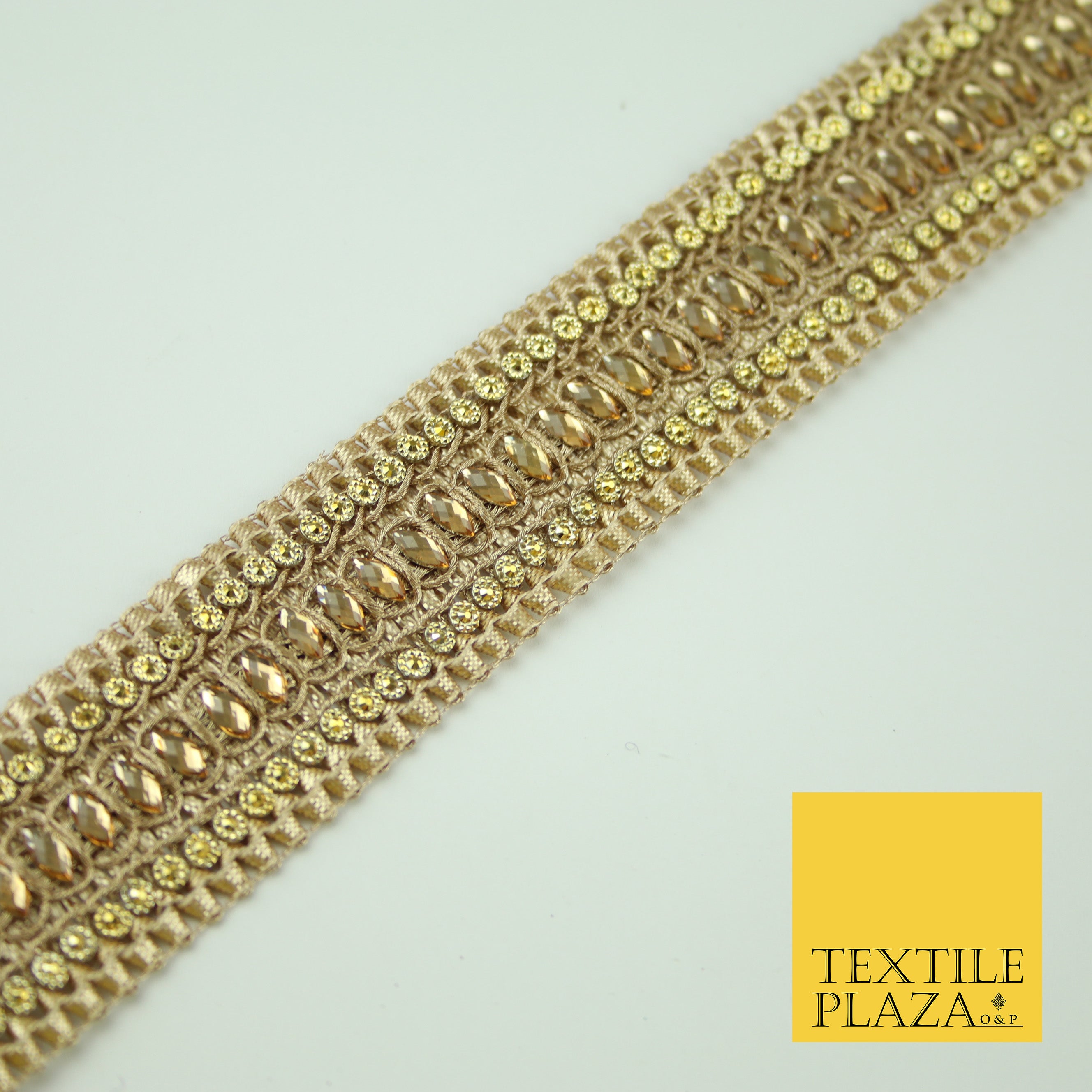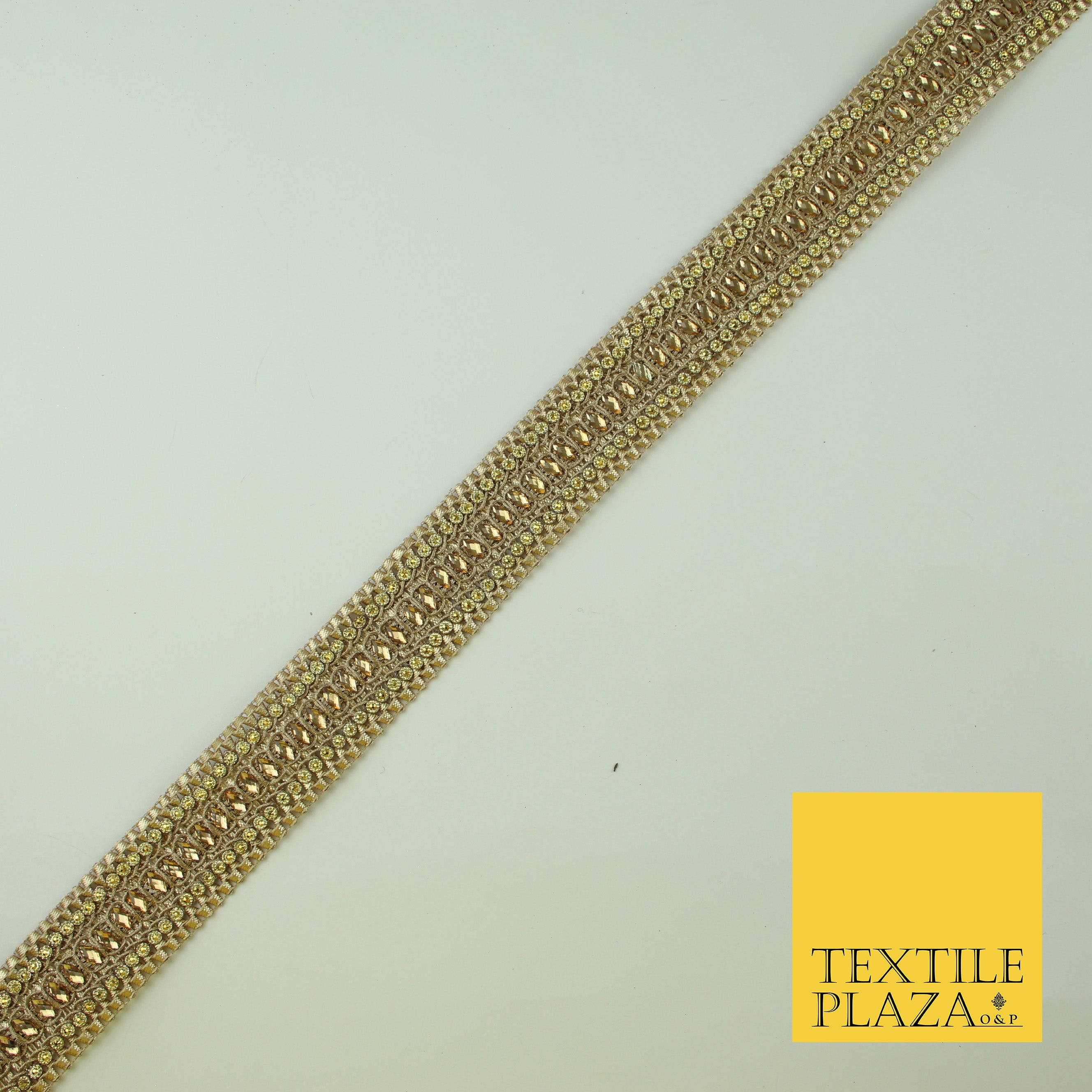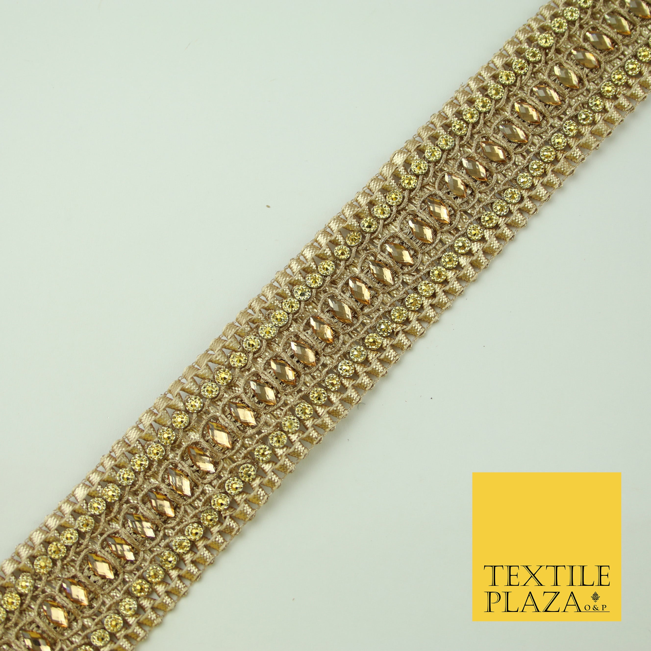 Gold Diamonte Stone Weave Trim Border Gota Patti Zari Ribbon Indian Lace X346