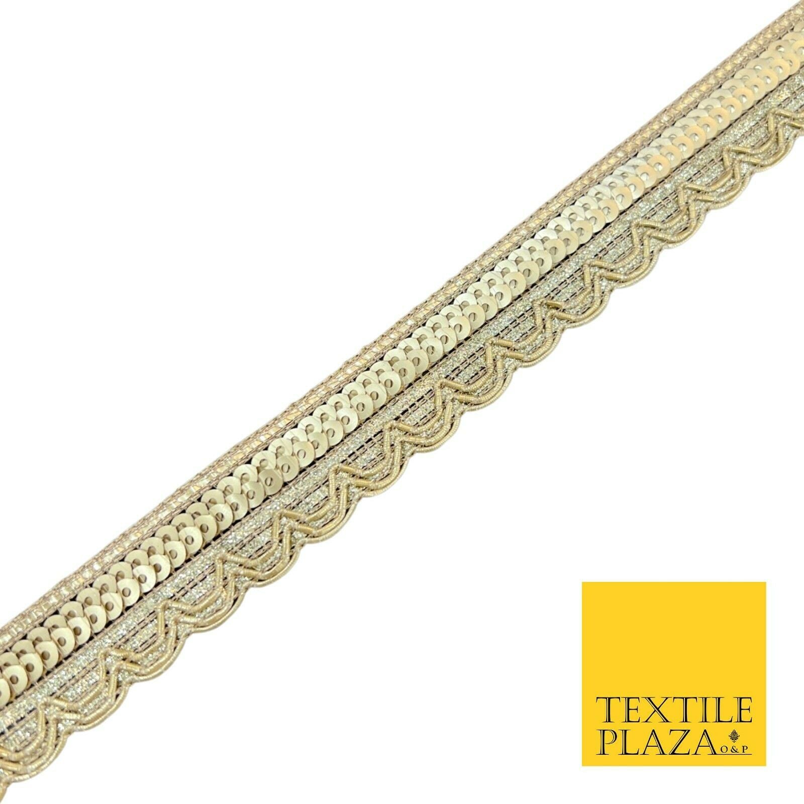 Gold Double Sequin Swag Scalloped Fancy Gota Trim Border Ribbon Lace X546