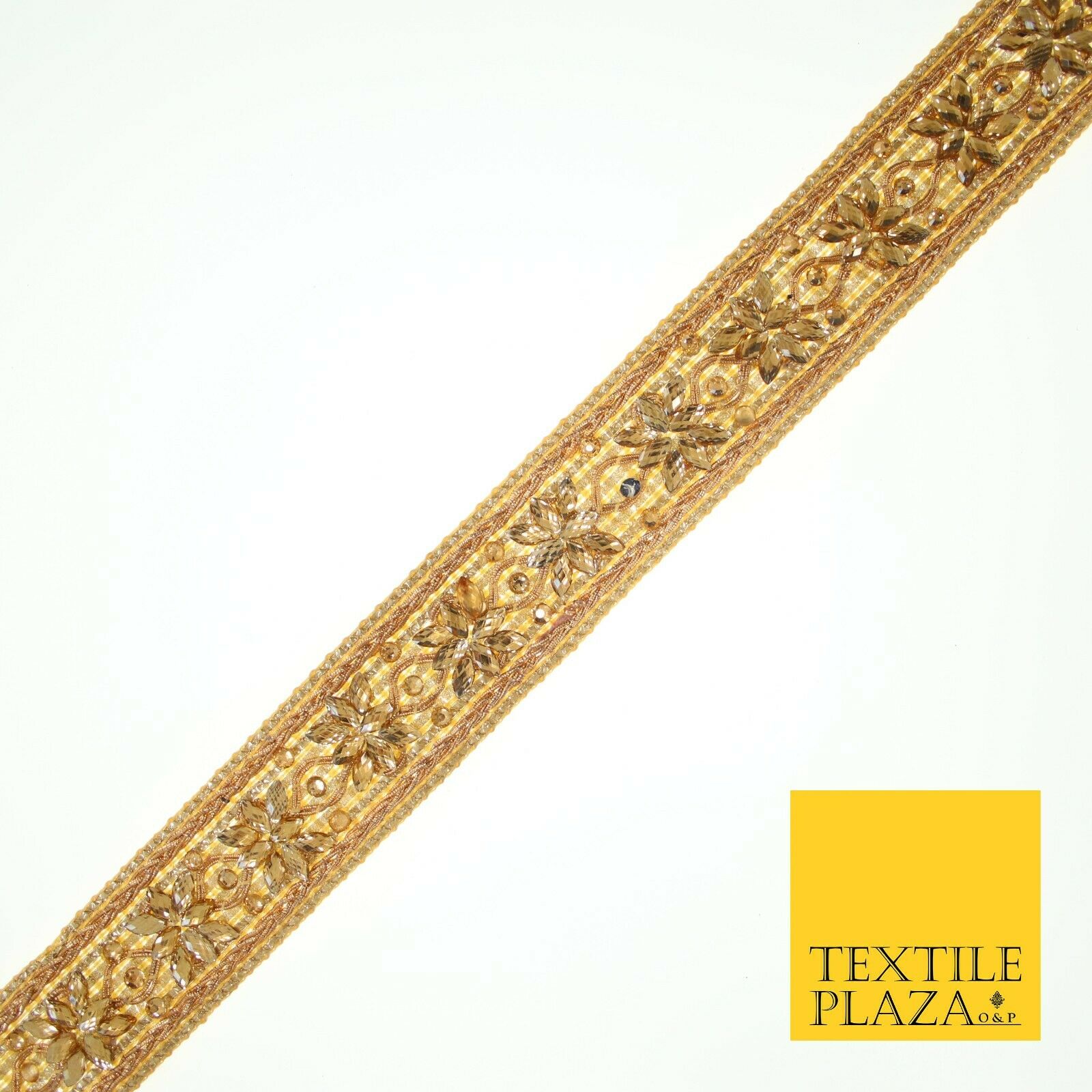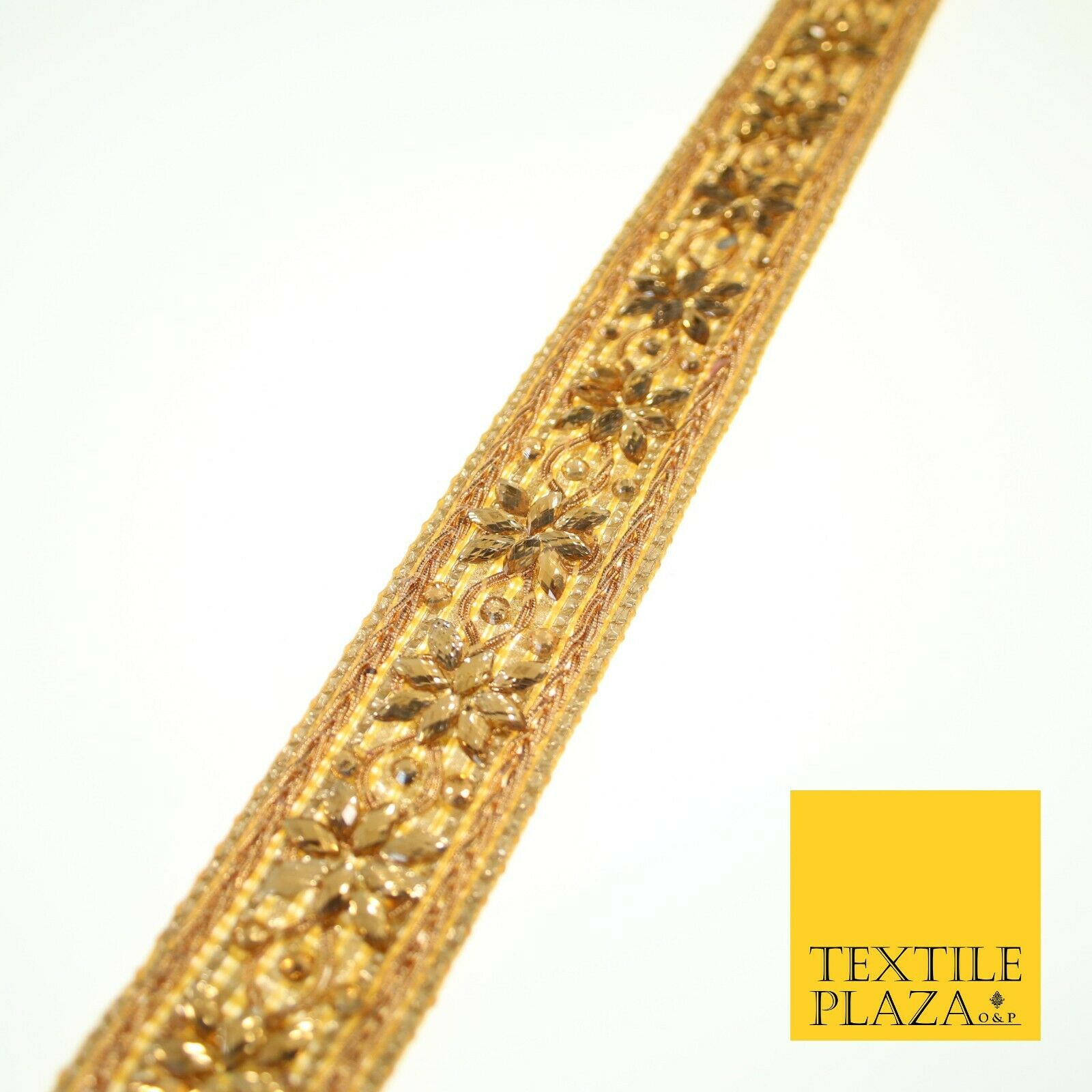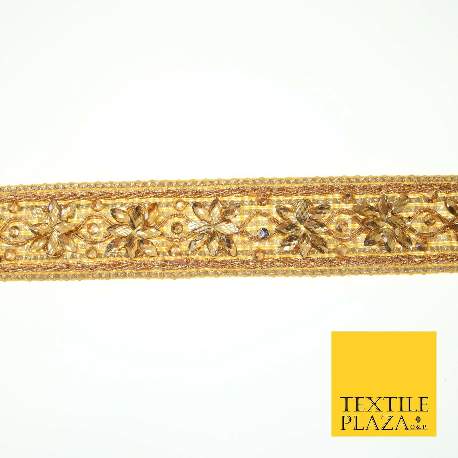 Gold Floral Diamonte Encrusted Fancy Trim Border Ribbon Gota Lace 3cm Wide X559
