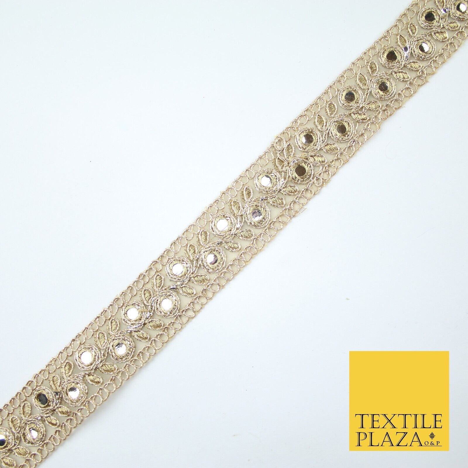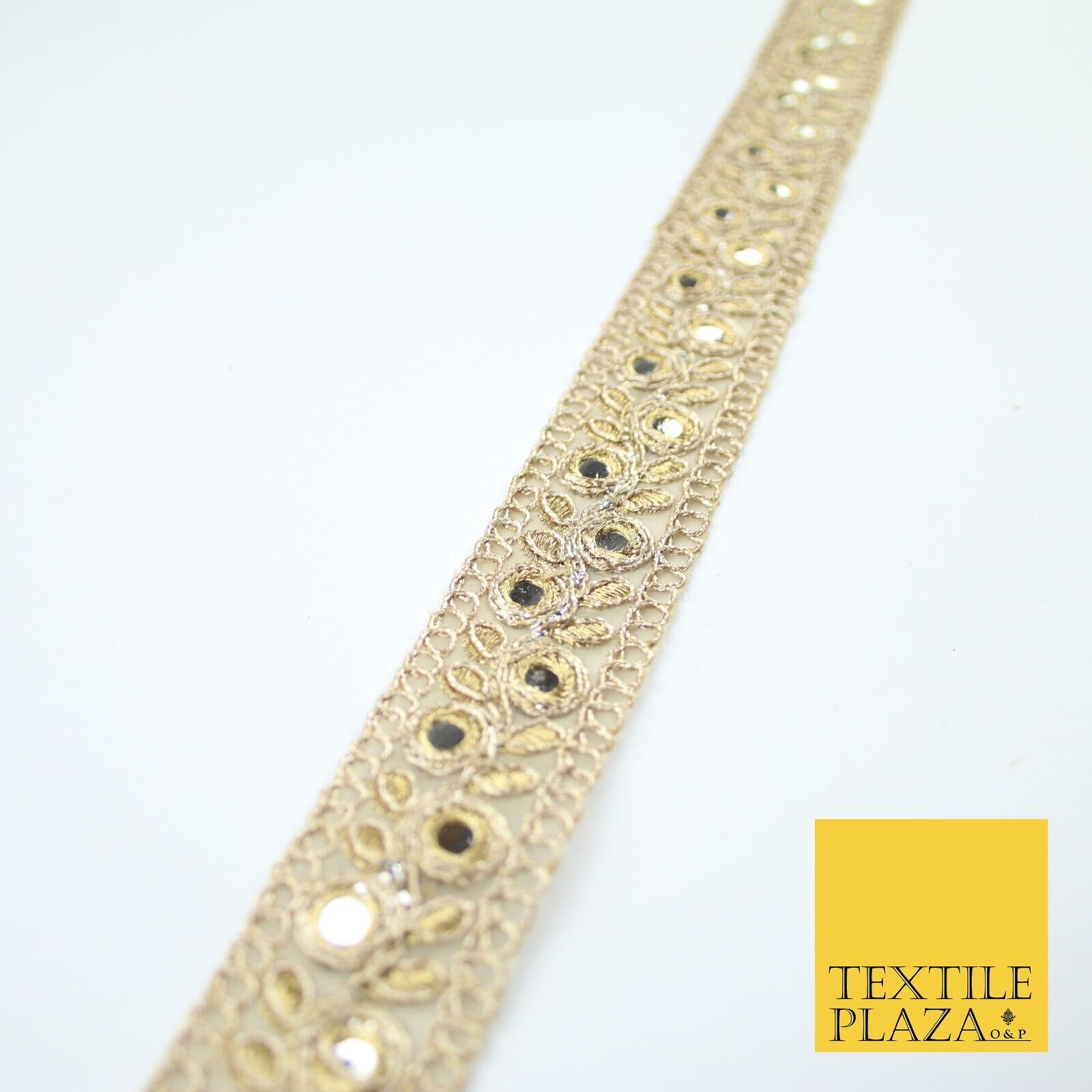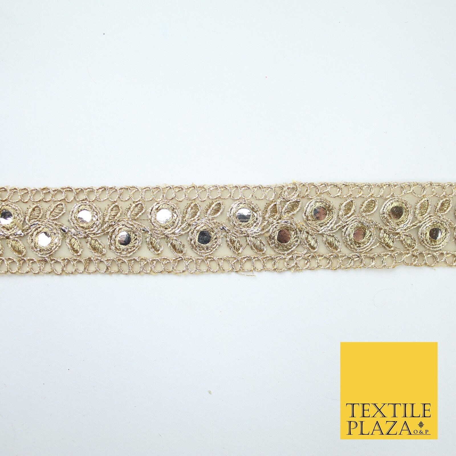 Gold Floral Vine Mirror Effect Zari Net Trim Border Lace - 2.5cm Wide - X618
