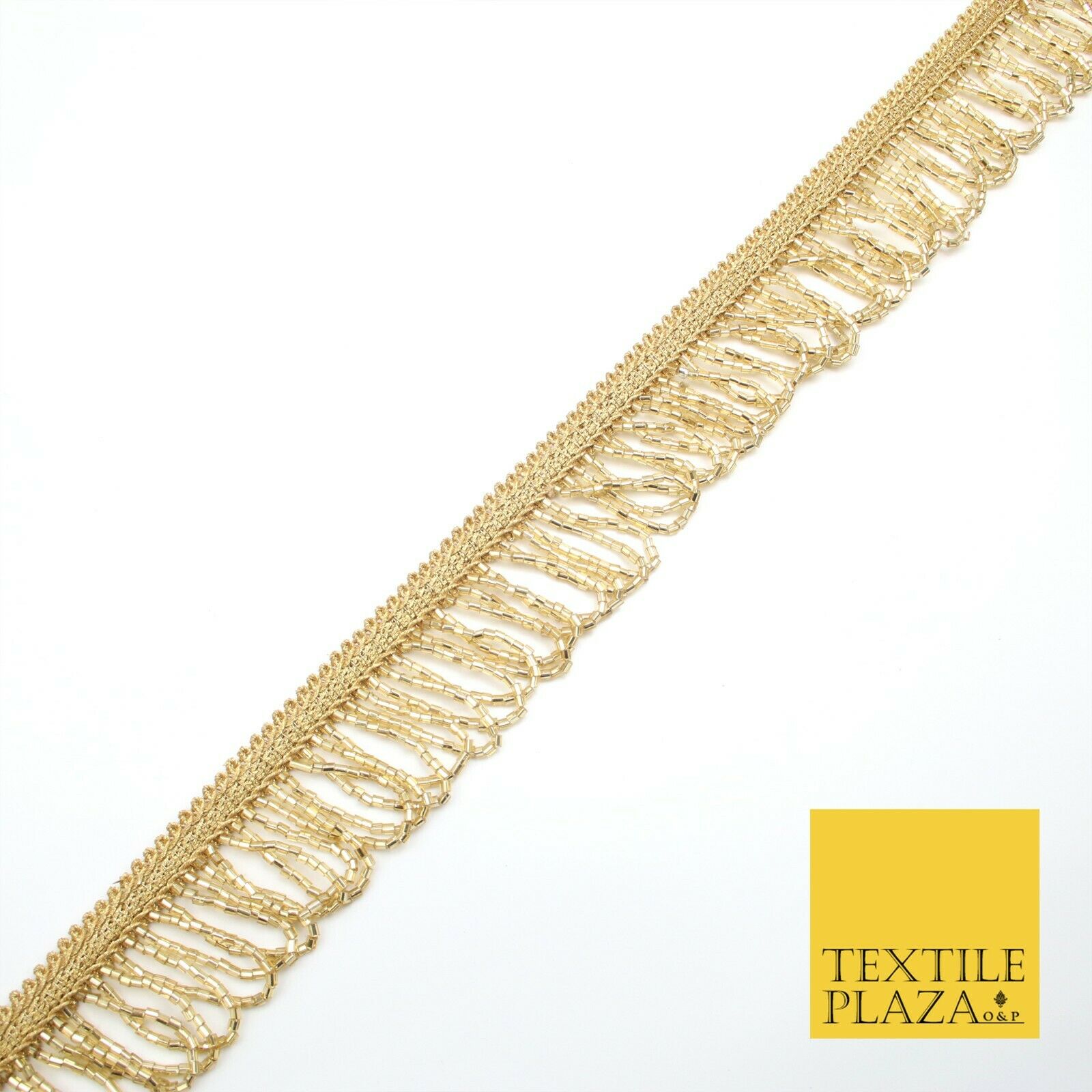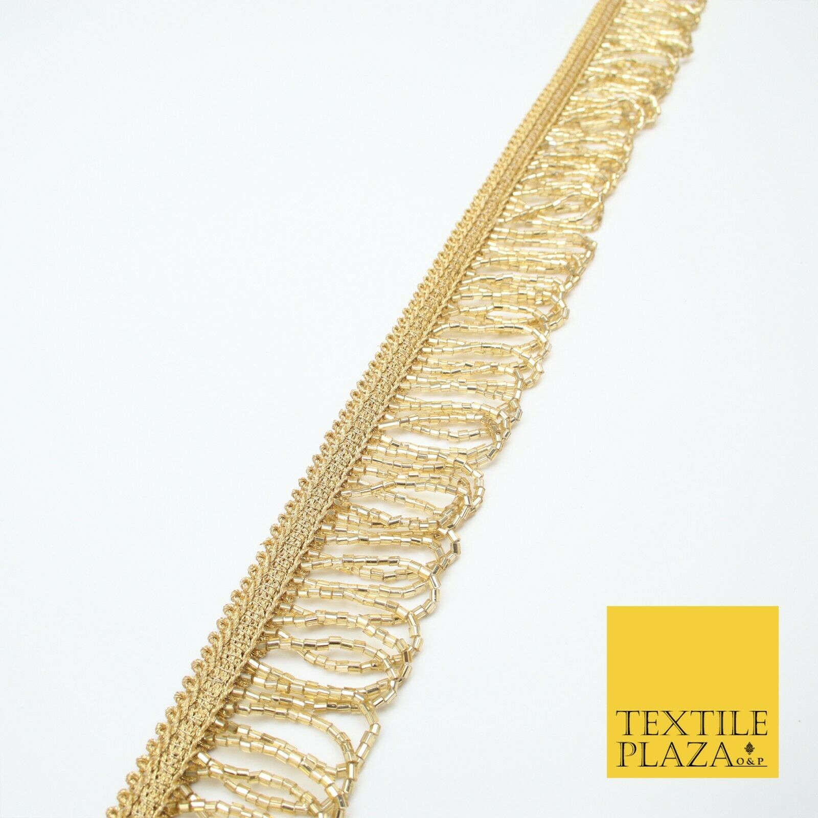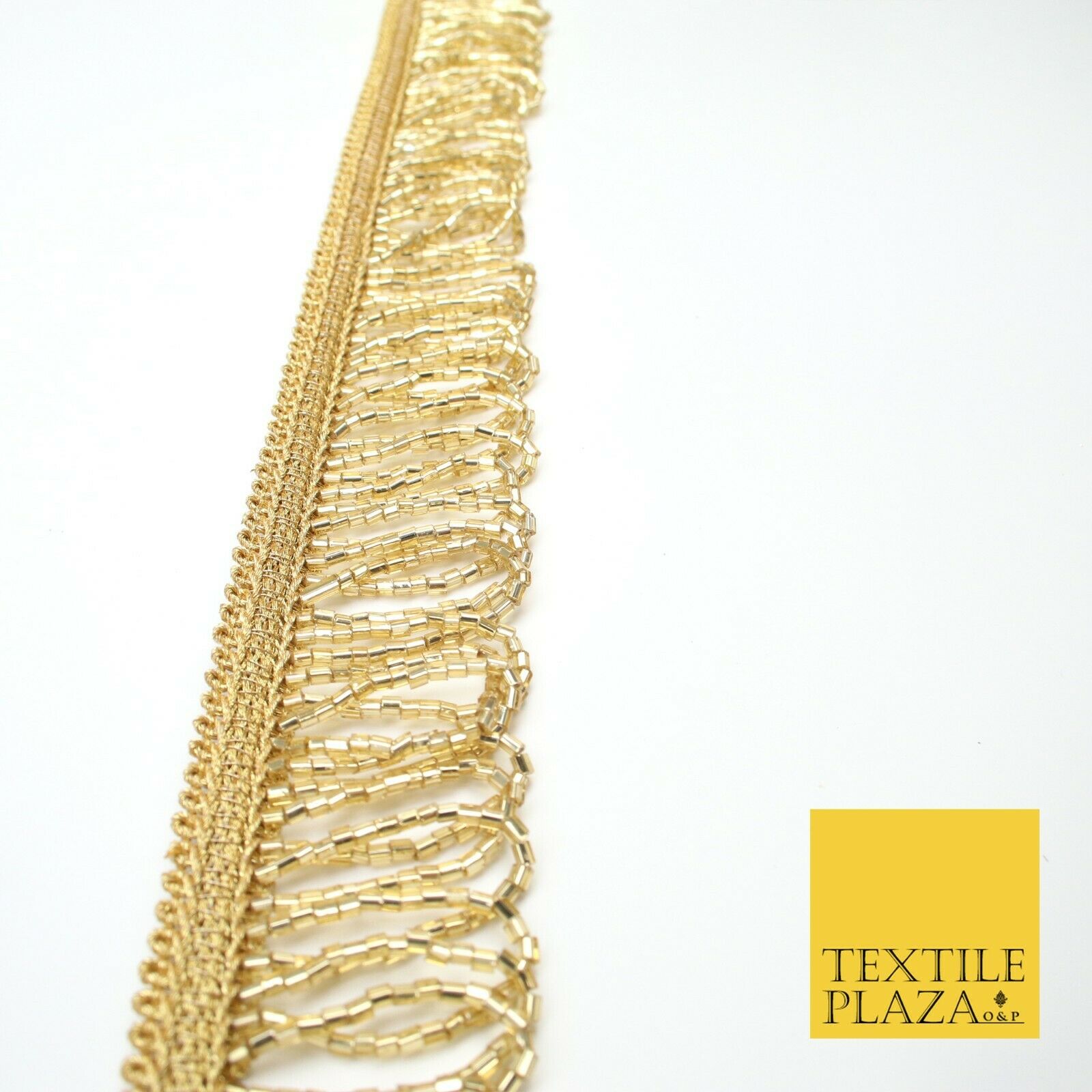 Gold Glass Beaded Deep Swag Tassel Drop Loop Trimming Ribbon Border Lace X319