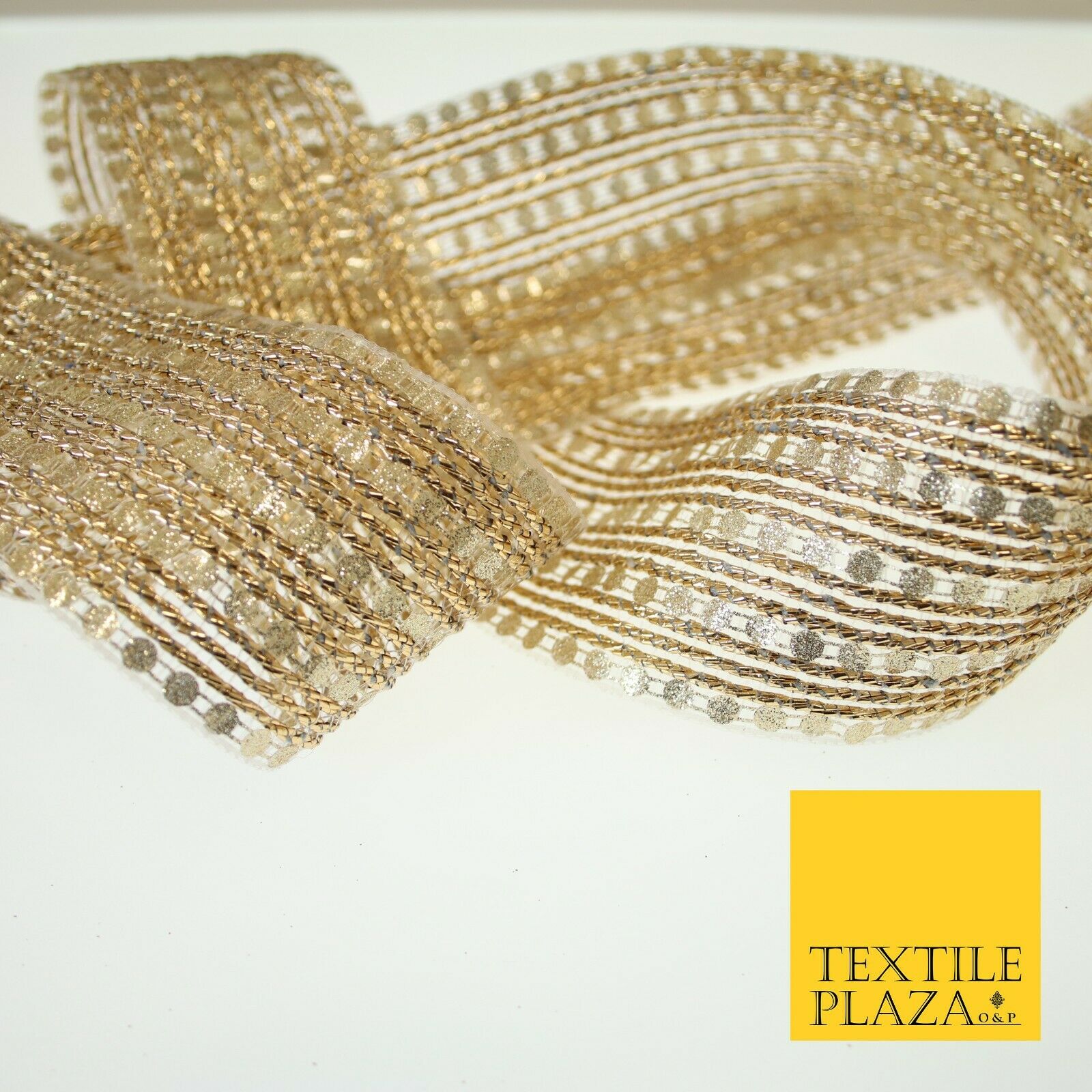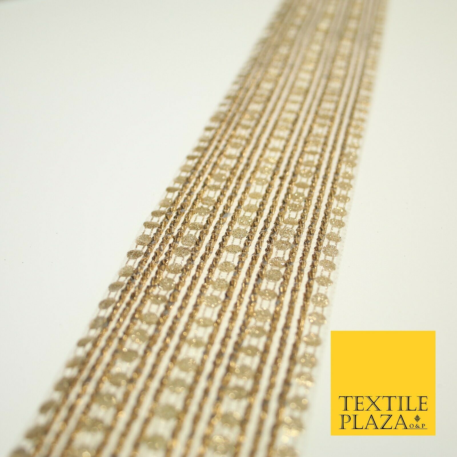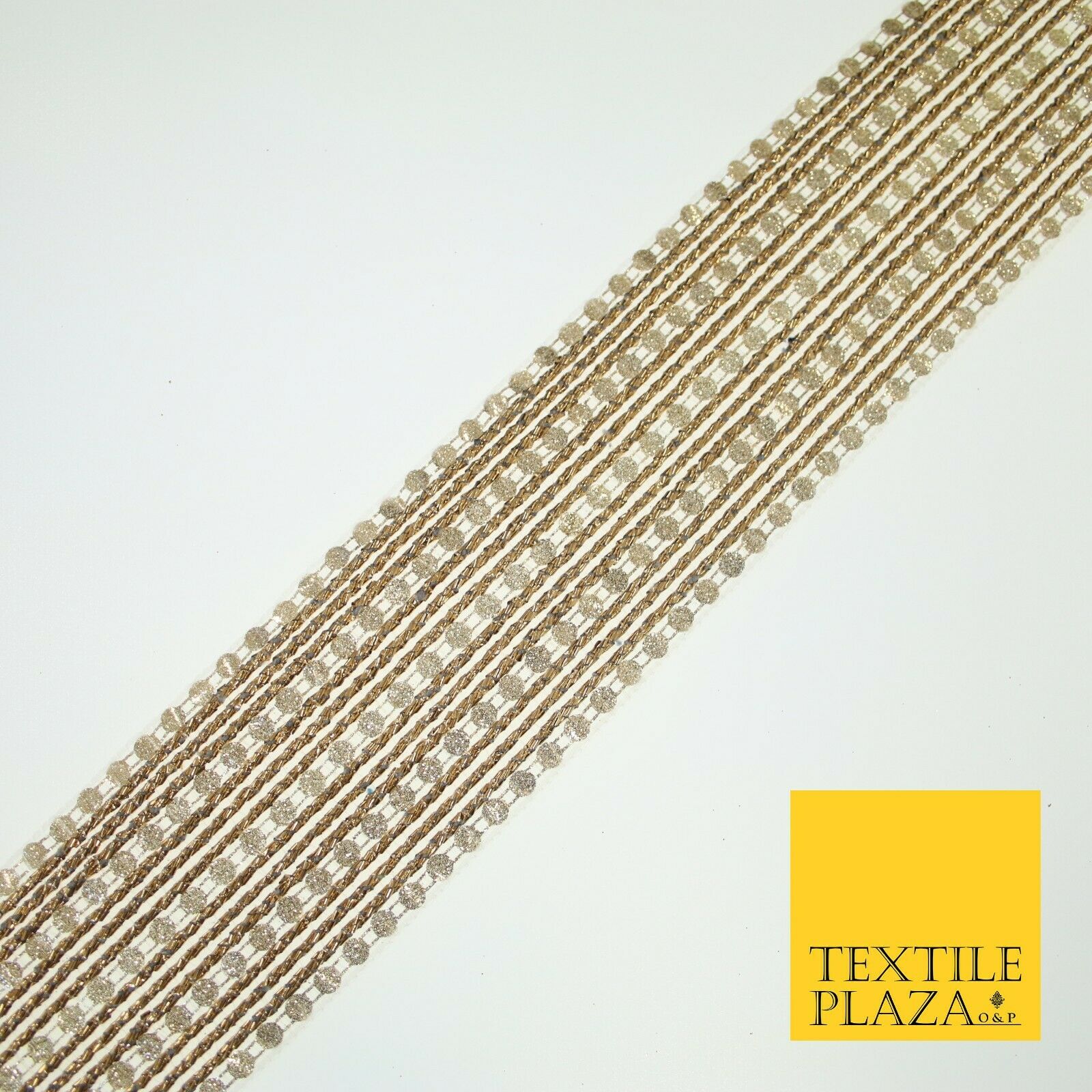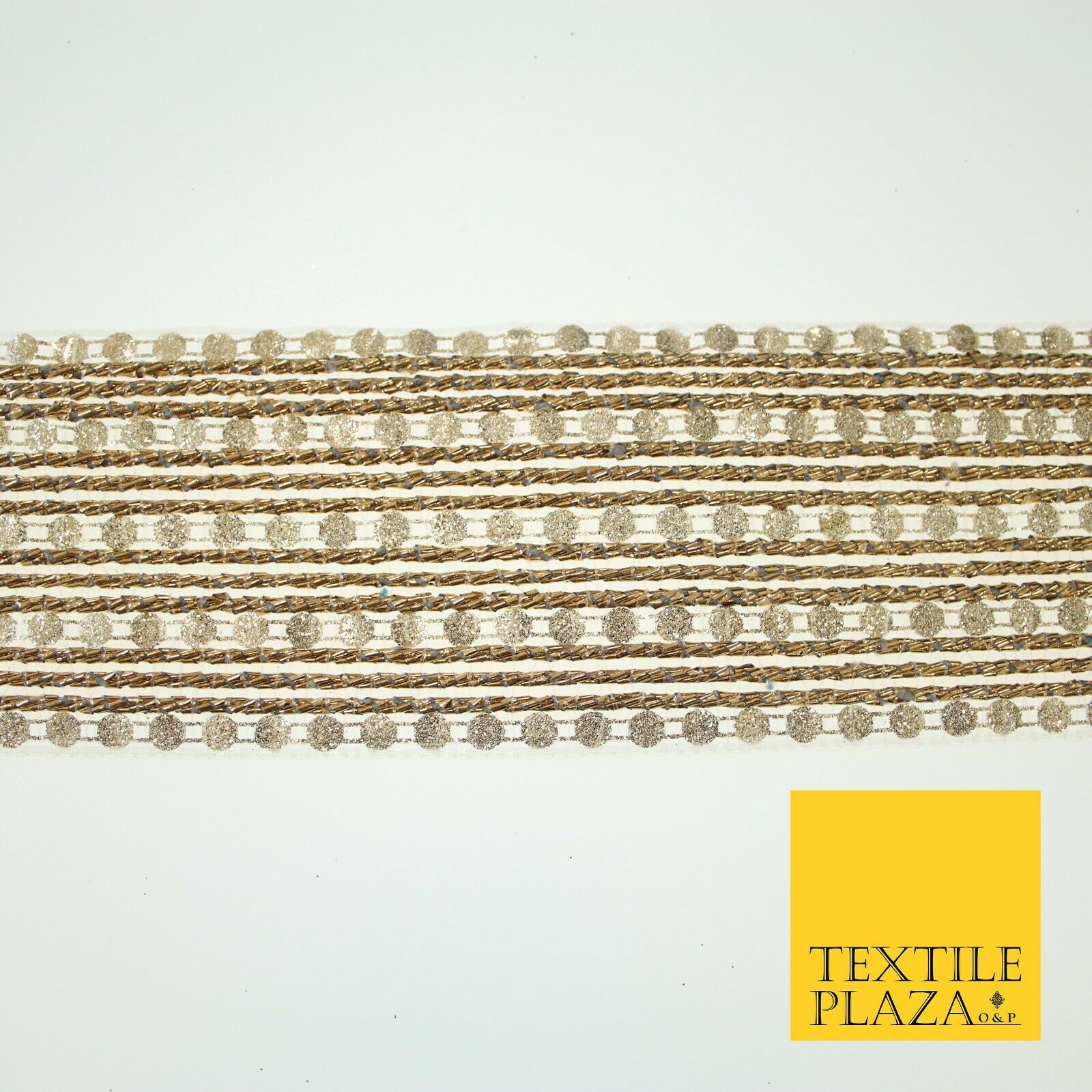 Gold Glitter Circle Sequin Mix Metallic Lines Trim Border Ribbon 5.5cm Wide X597