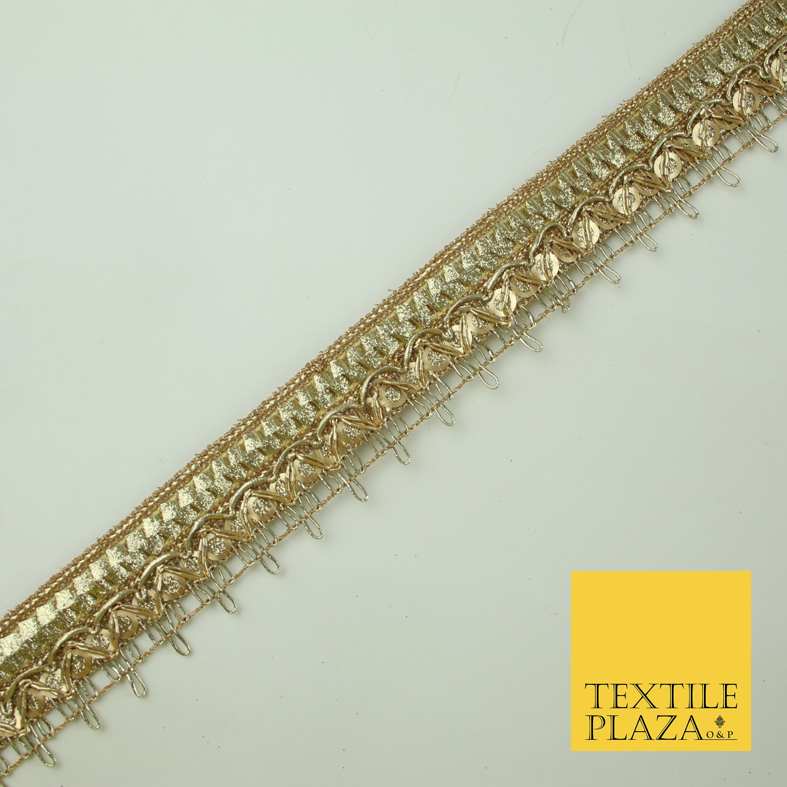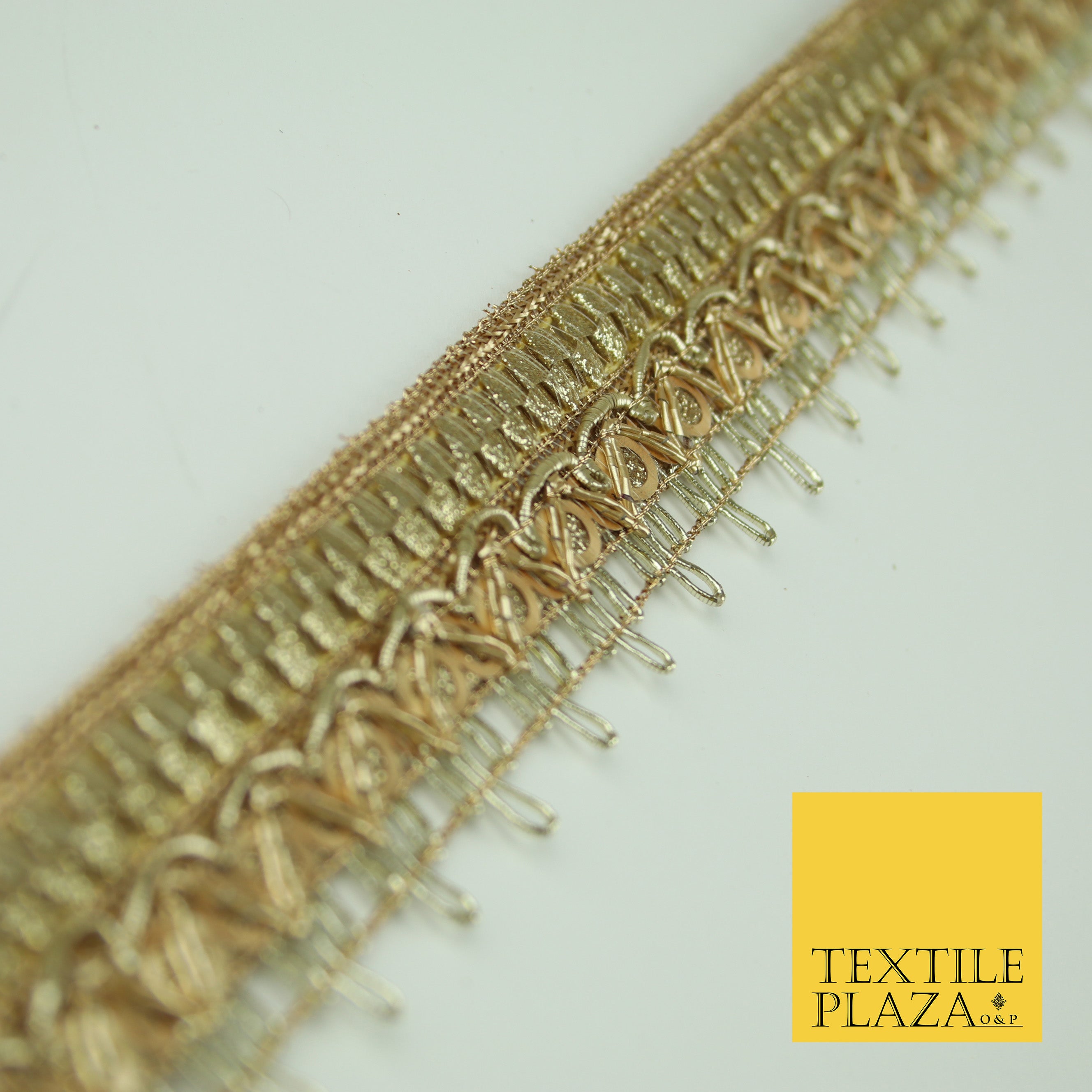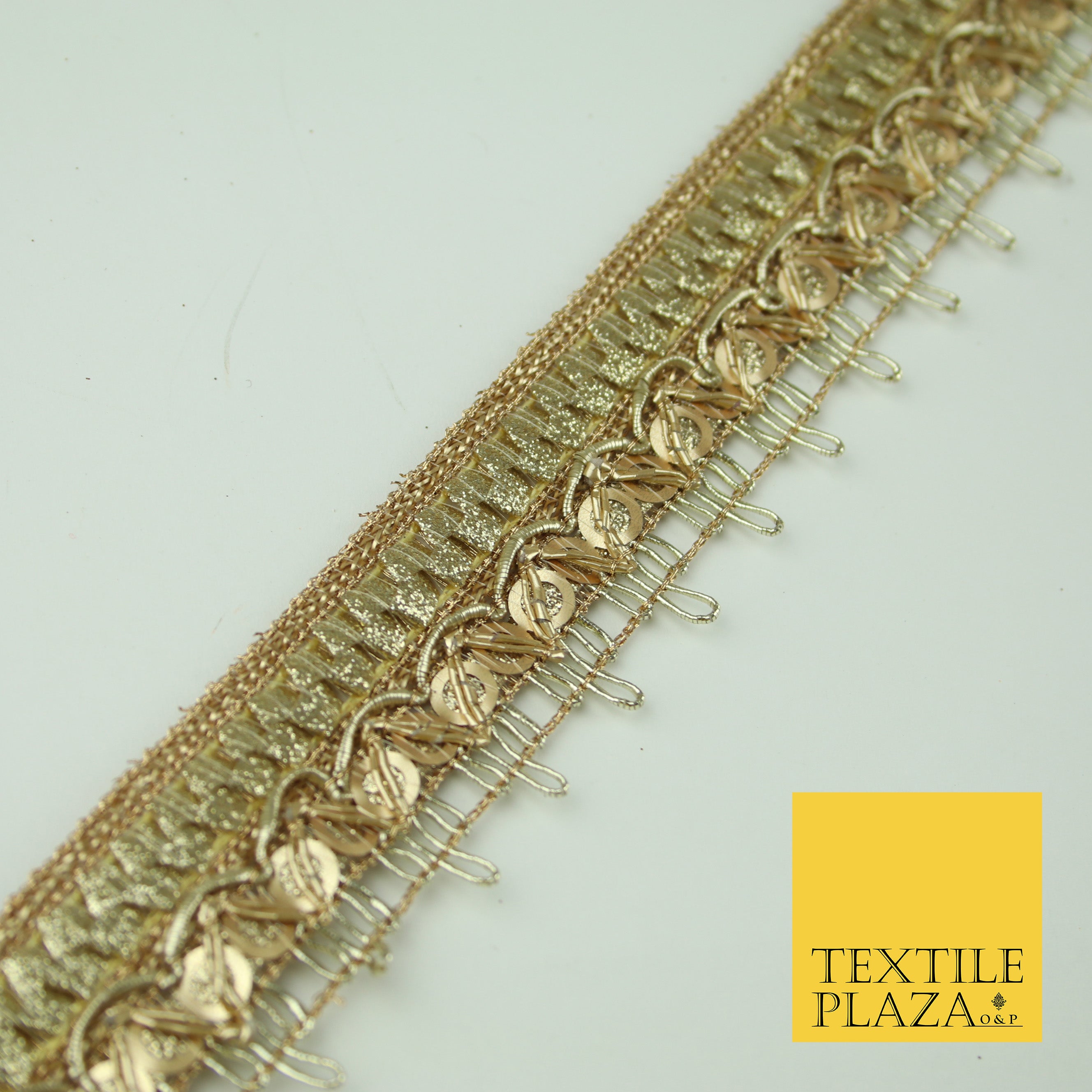 Gold Glitter Zig Zag Circle Sequin Multi Zari Trim Gota Border Ribbon Lace X348