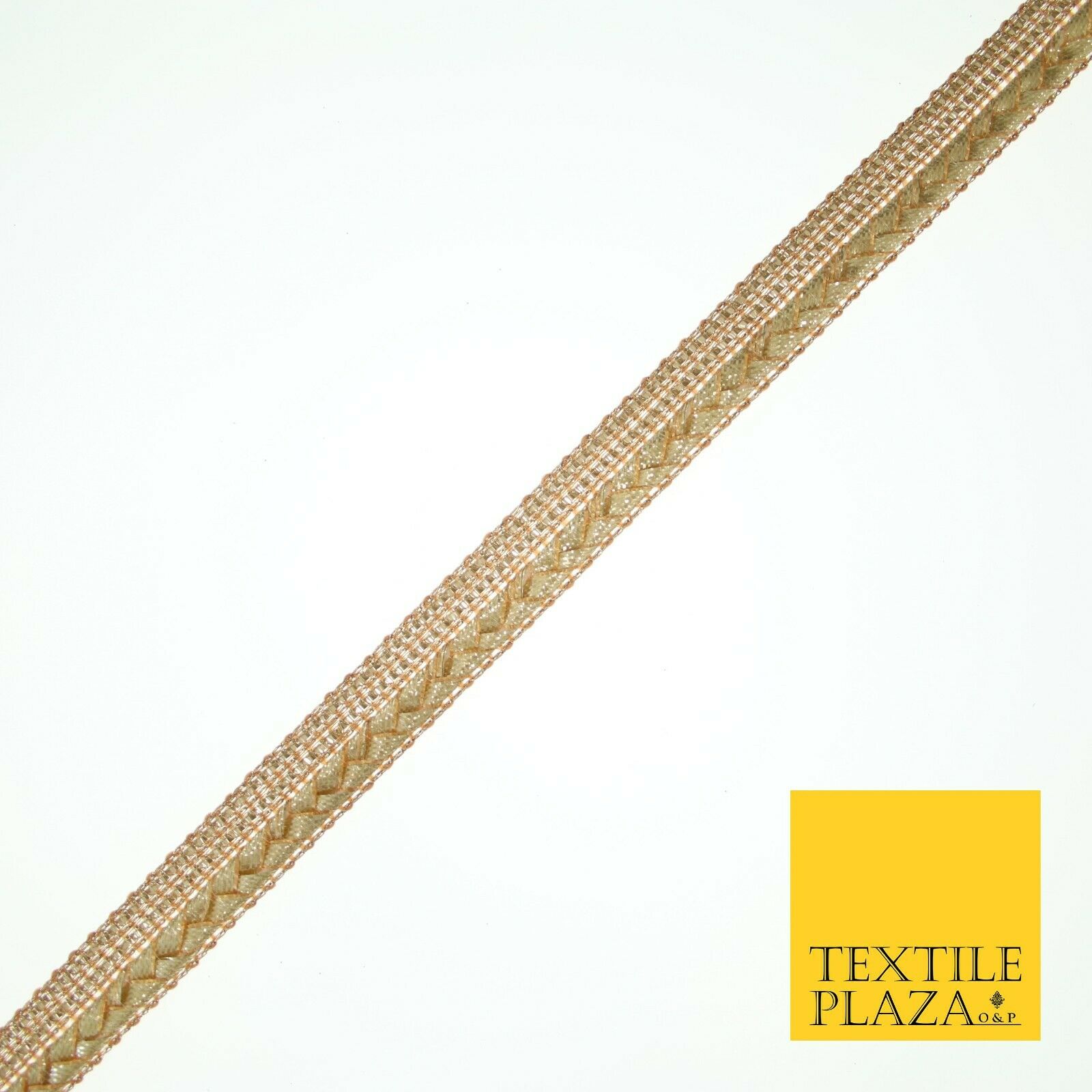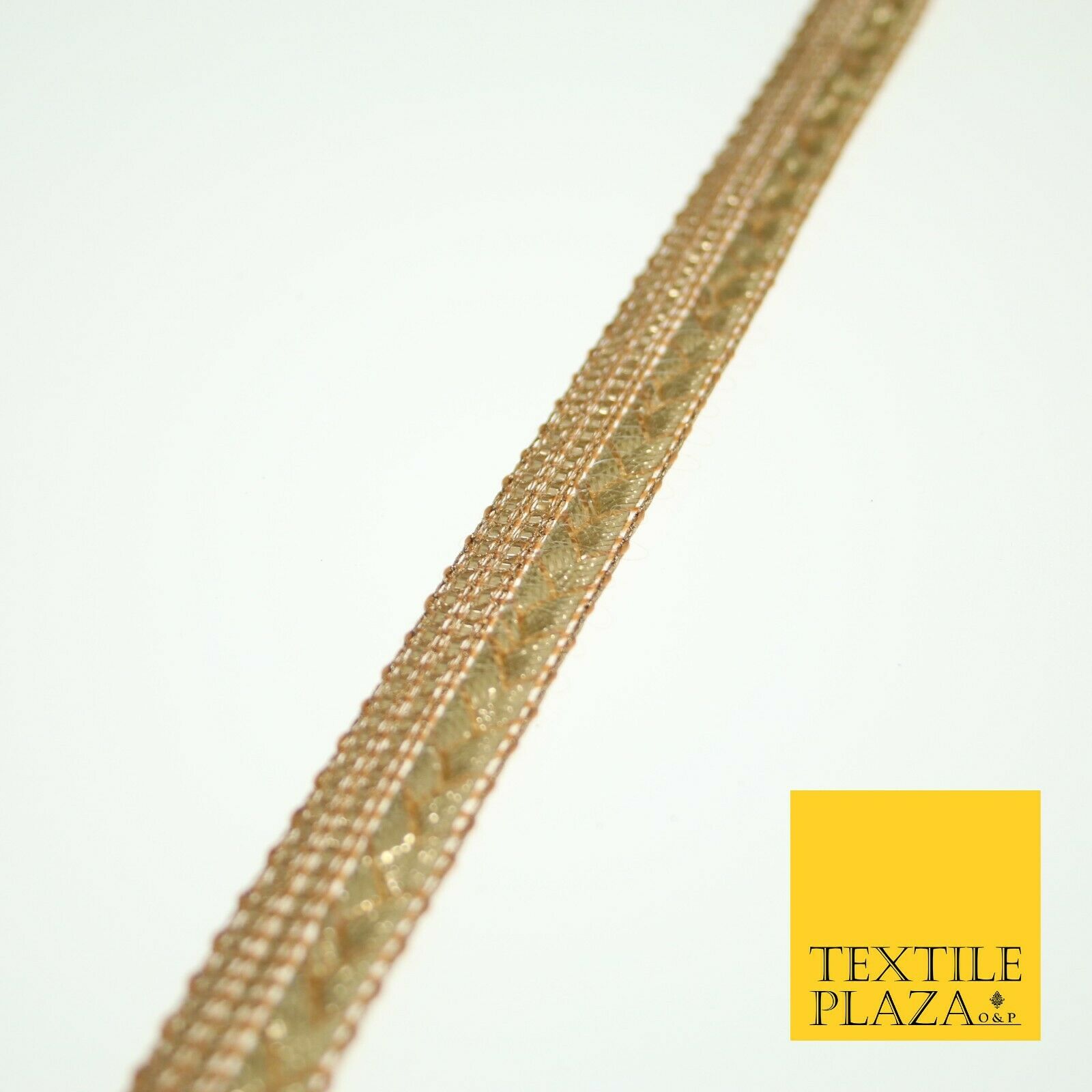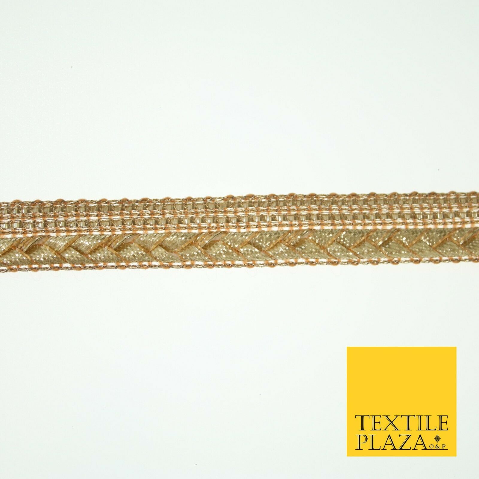 Gold Gota Patti Plait Weave Stripe Fancy Trim Border Ribbon Lace 1.5cm Wide X568